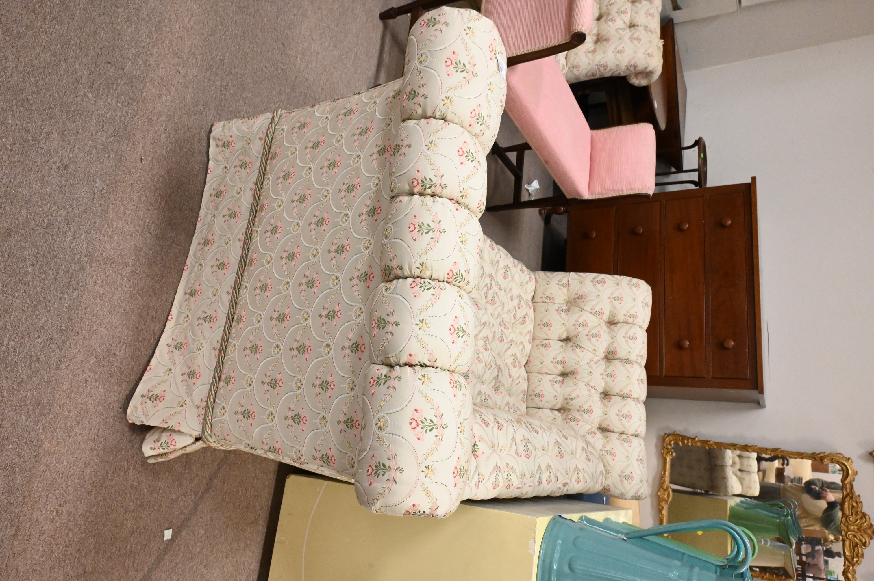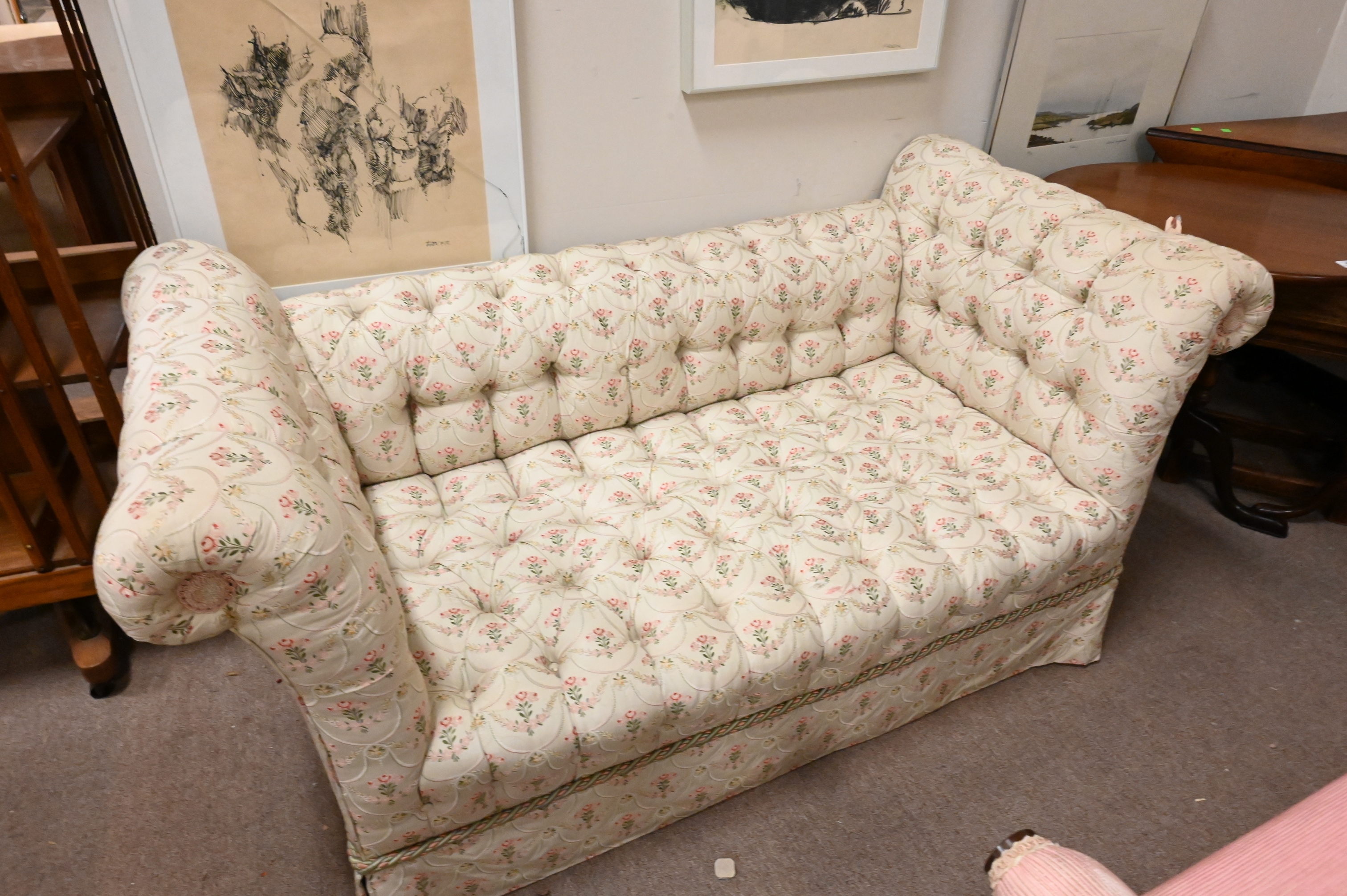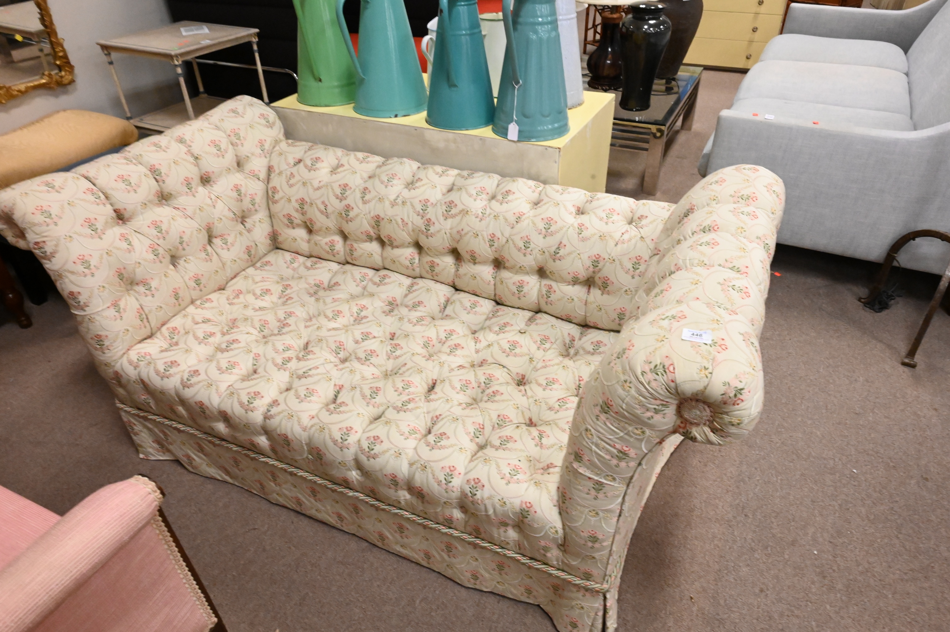 Lot 446: Pair of Tufted and Custom Upholstered Loveseats