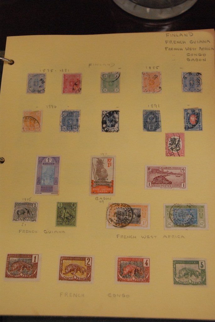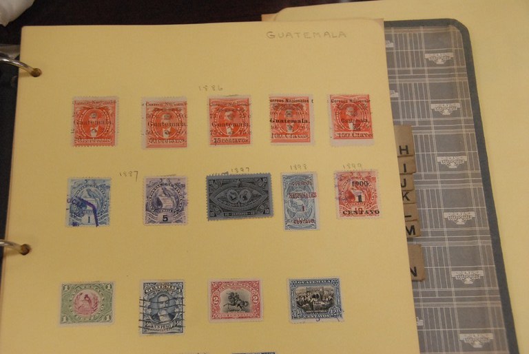 Two stamp albums one with many American stamps Columbian Issue one cent, two cent, three cent, four cent, five cent, six cent, eight cent, ten cent, fifteen cent, thirty cent, and fifty cent.
