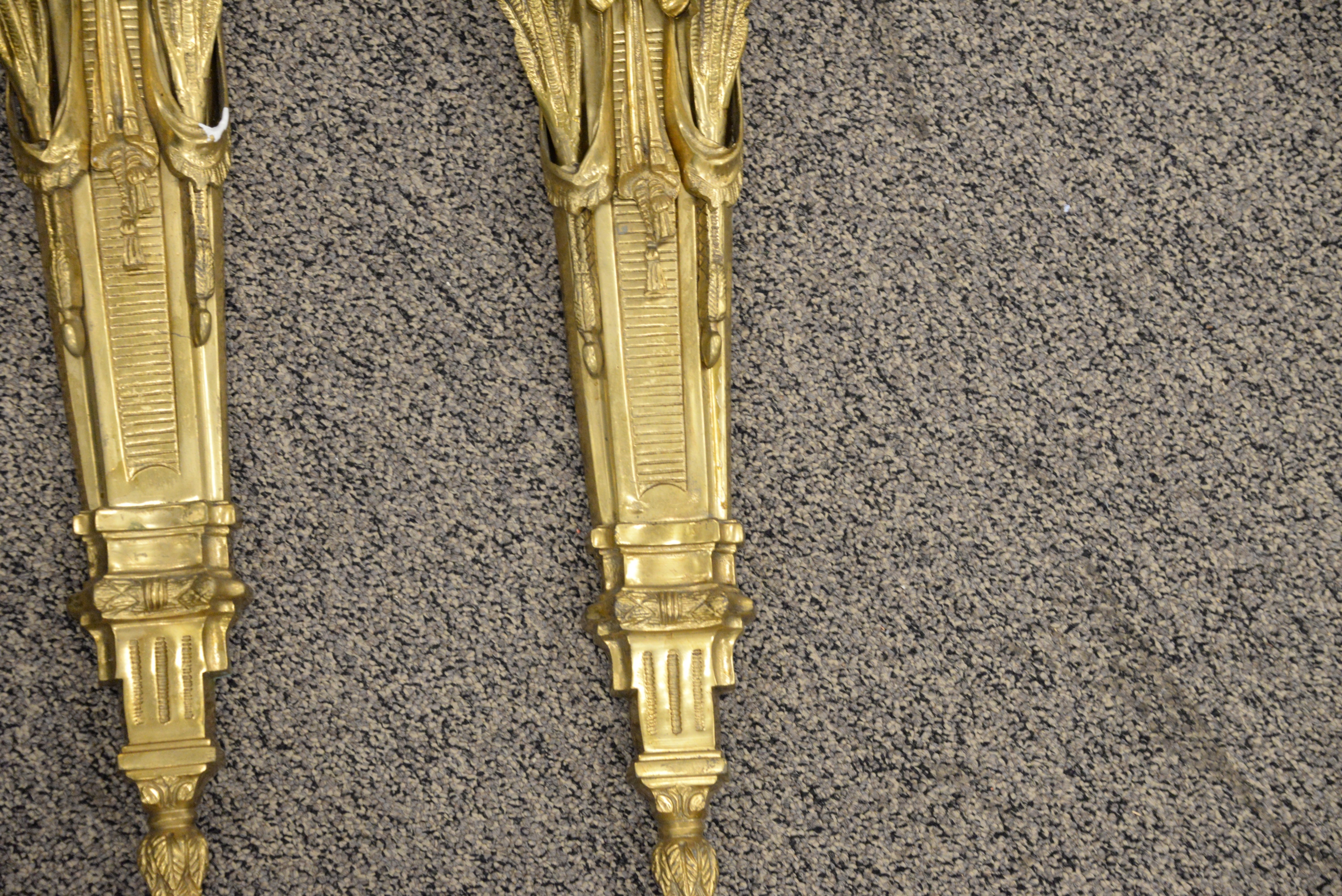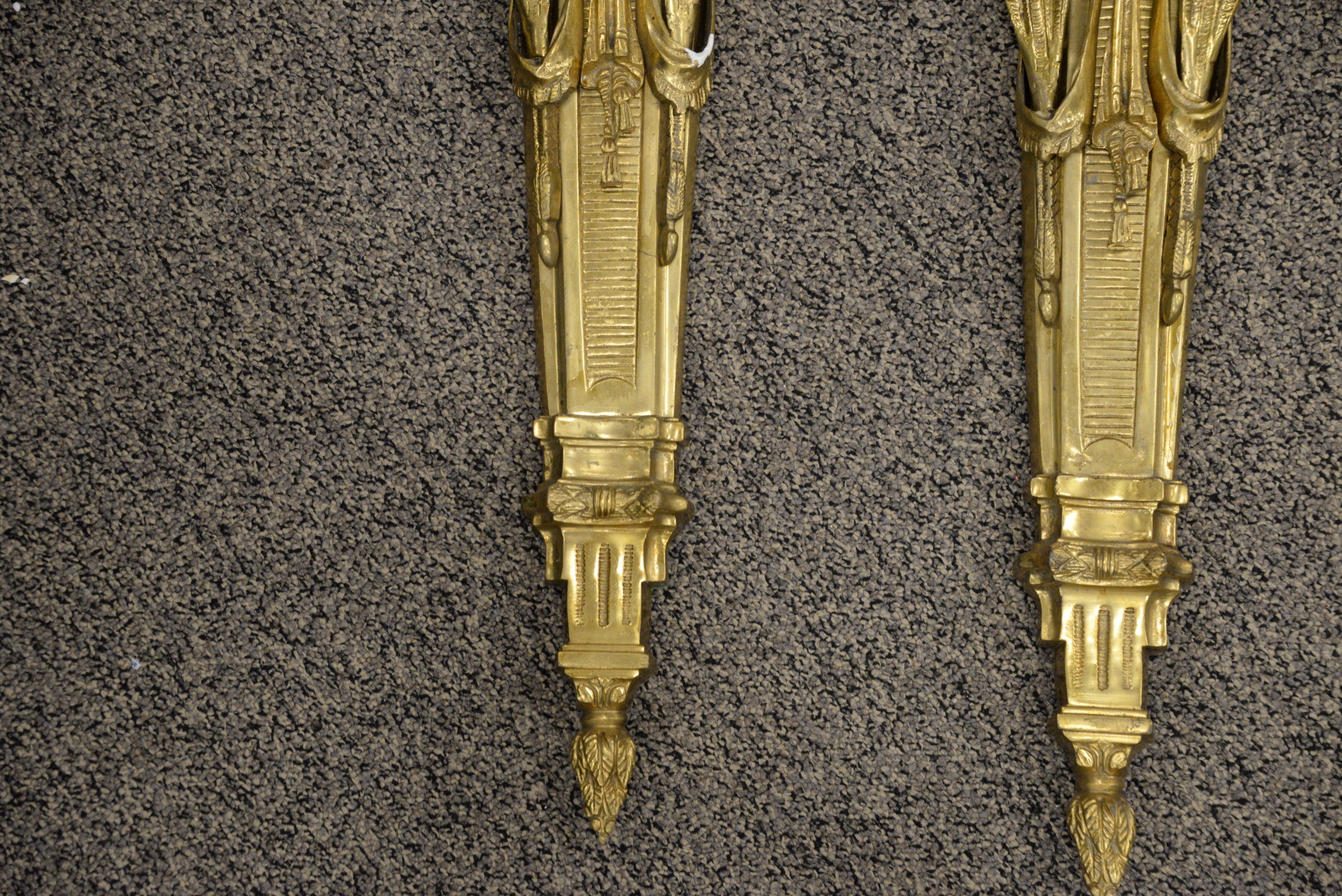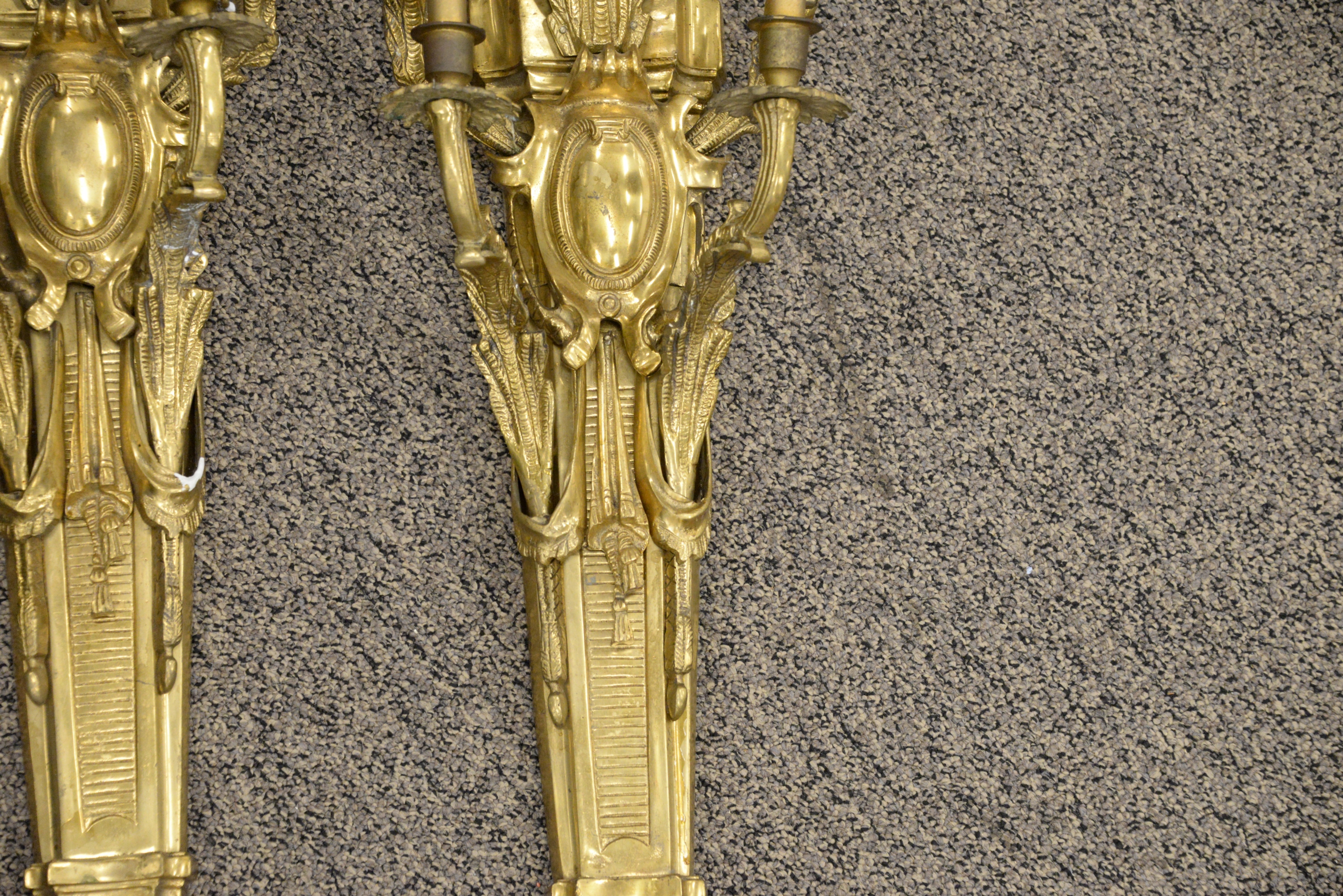 A Pair of Bronze Sconces, having five lights each with ribbons atop of standard, electric, height 39 inches. Provenance: A Private Connecticut Shoreline Collection