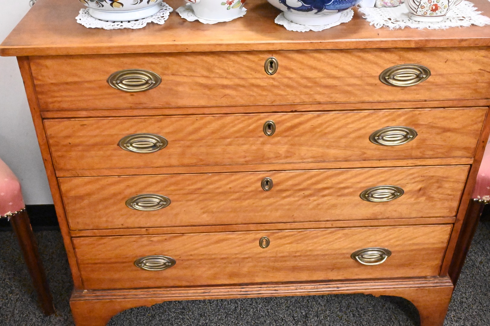 Birch Chippendale Four Drawer Chest, on bracket feet, height 33 1/2 inches, top 19″ x 38 1/2″.