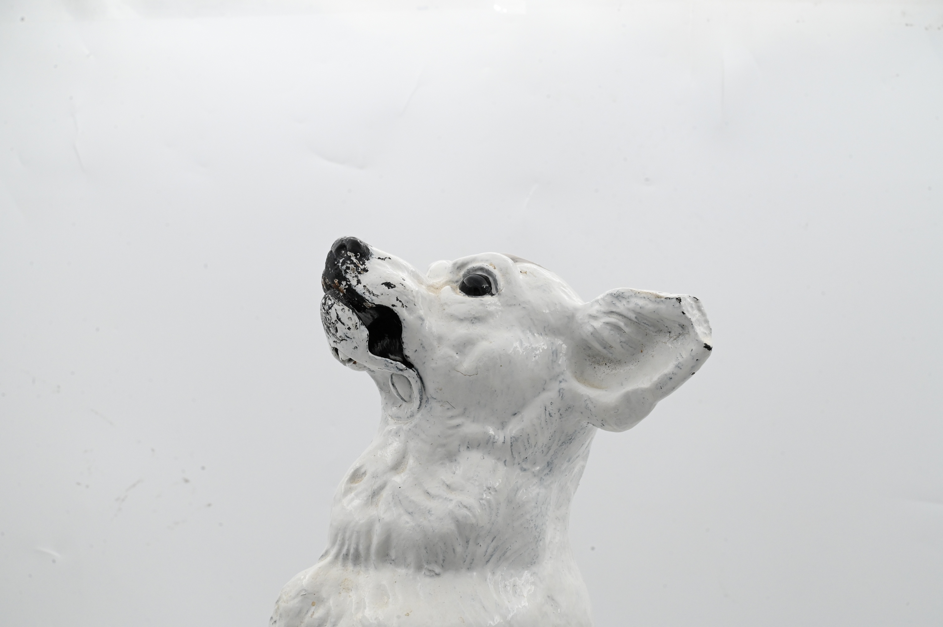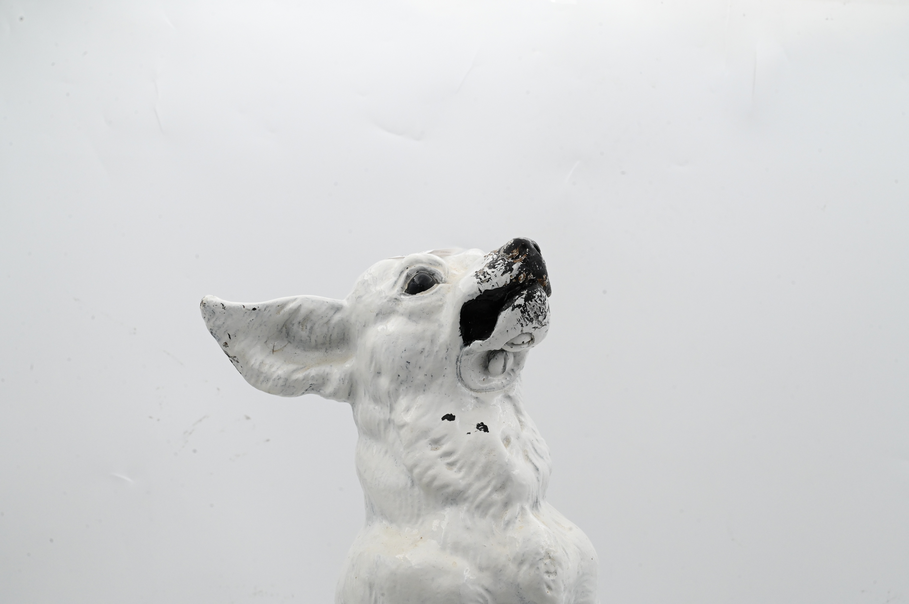 painted heavy iron figure of a dog on hind legs mounted on pedestal base, 19th century, one broken ear