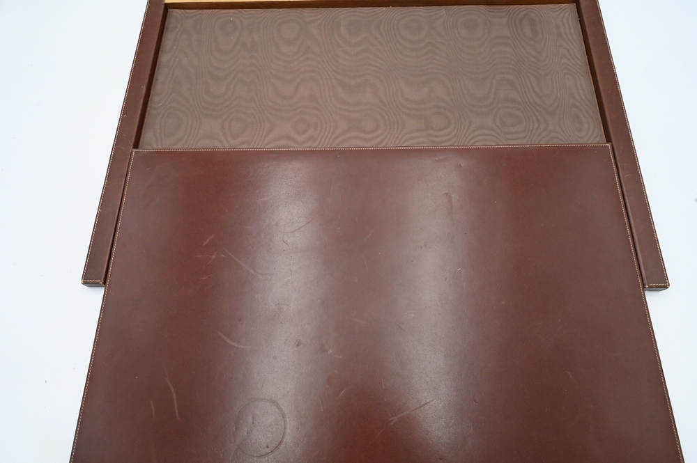 Lot 447: Gucci Leather Desk Blotter Set, brown leather marked Gucci on bottom, 17 1/4″ x 23″.
