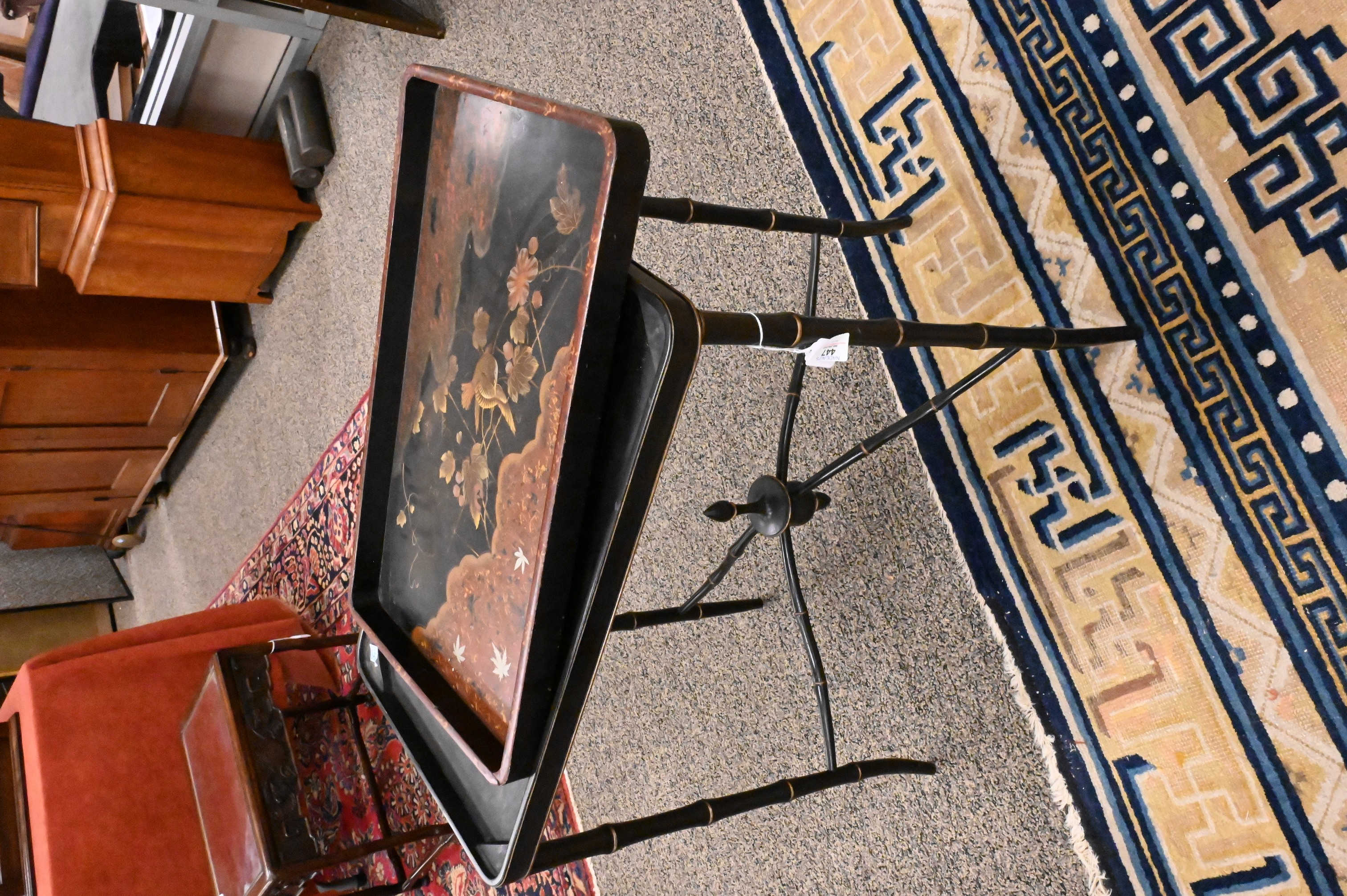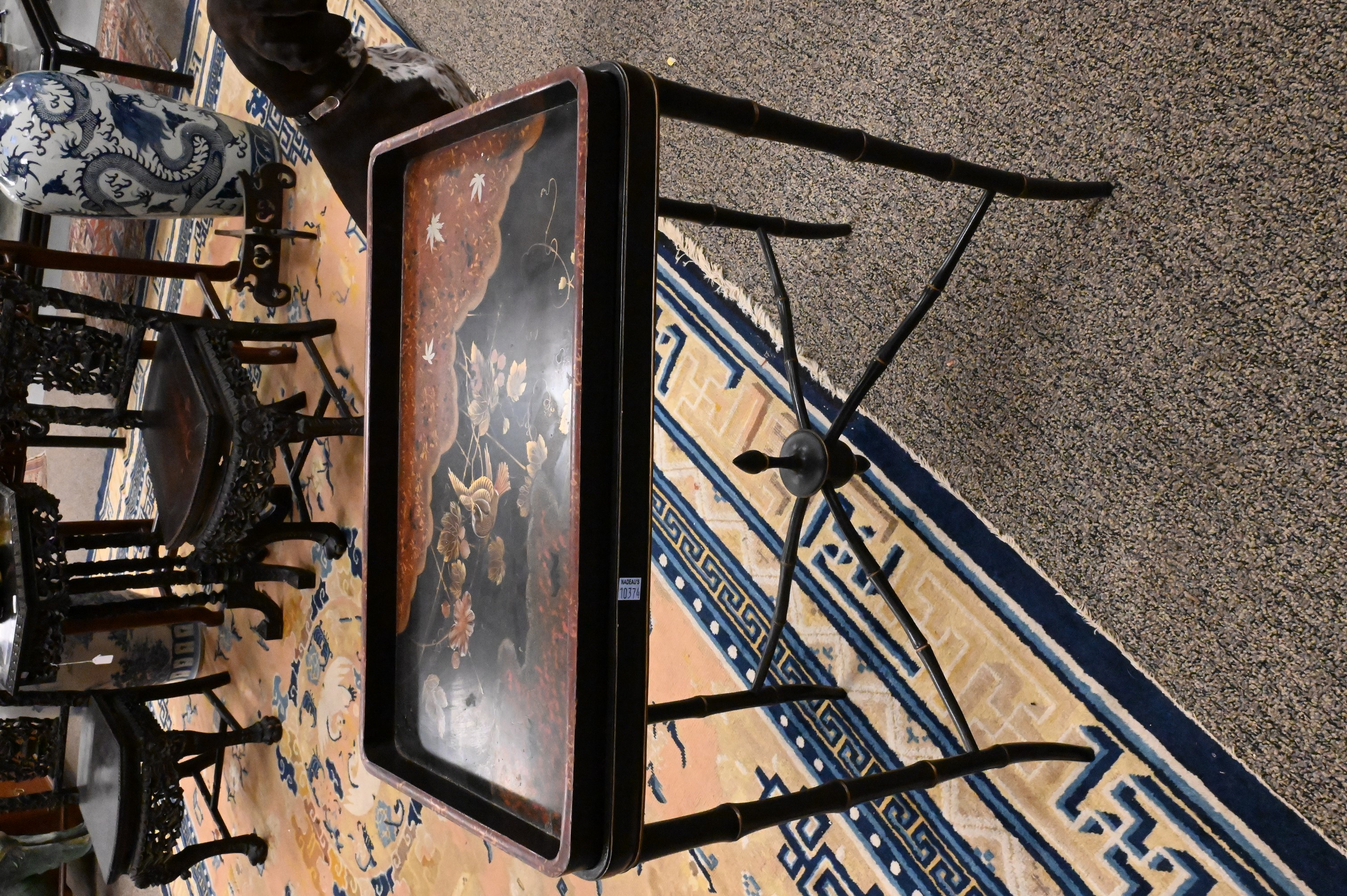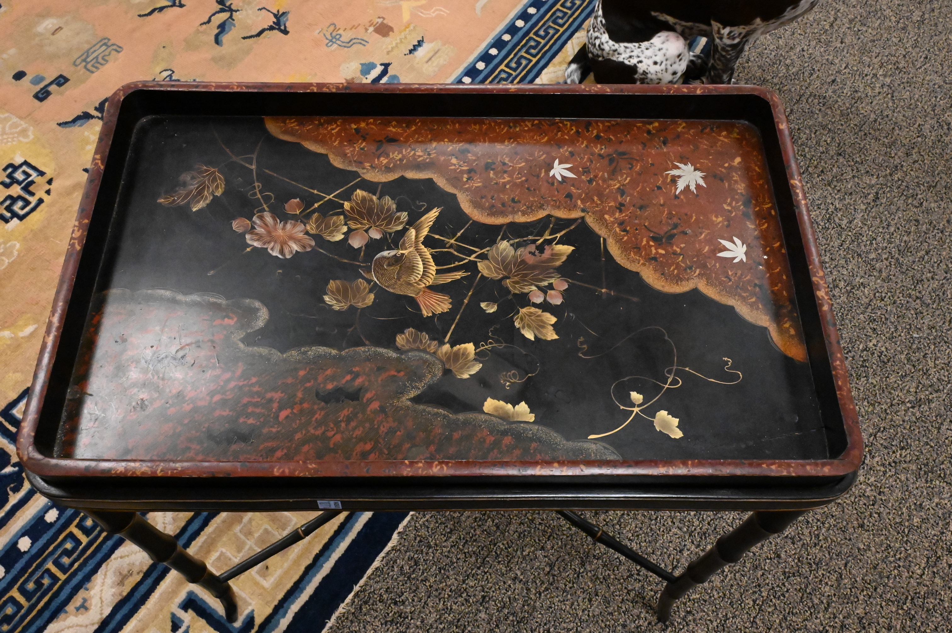 Lot 447: Japanese Chinoiserie Decorated Tray on Faux Bamboo Stand