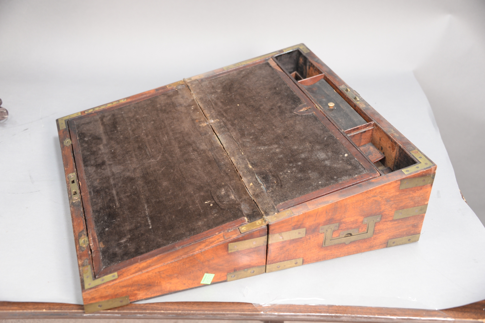 Mahogany brass bound lap desk. ht. 7 3/4in., wd. 21in., dp. 10 3/4in.