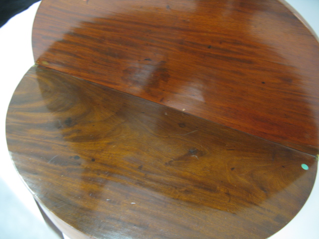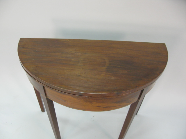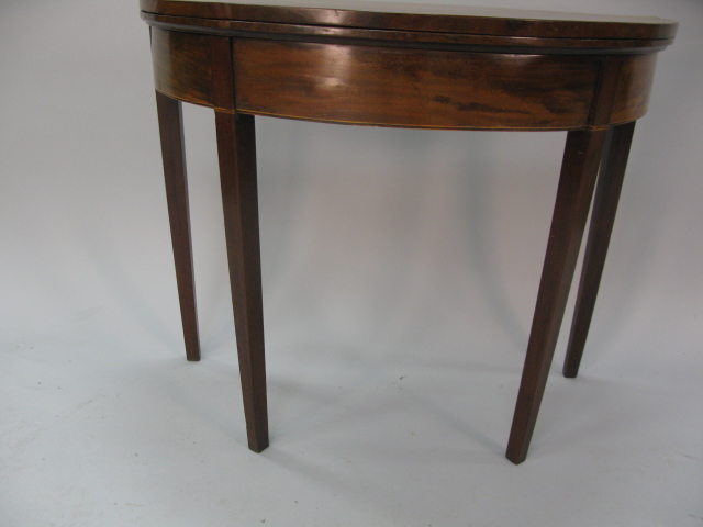 Mahogany demilune Federal game table on square tapered legs.
