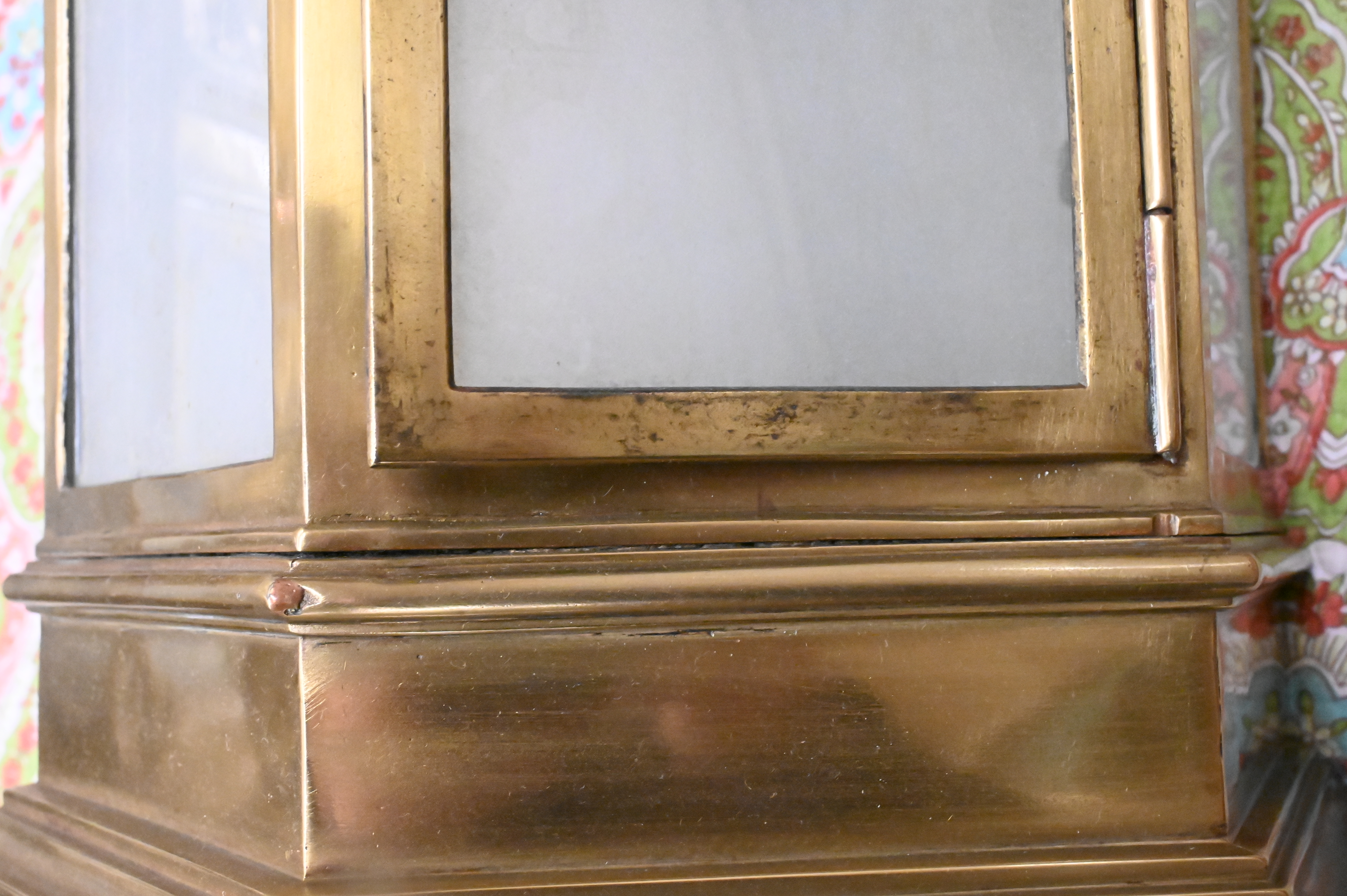 each octagonal side body with glass panes supported on foliate and scroll base from single bracket support