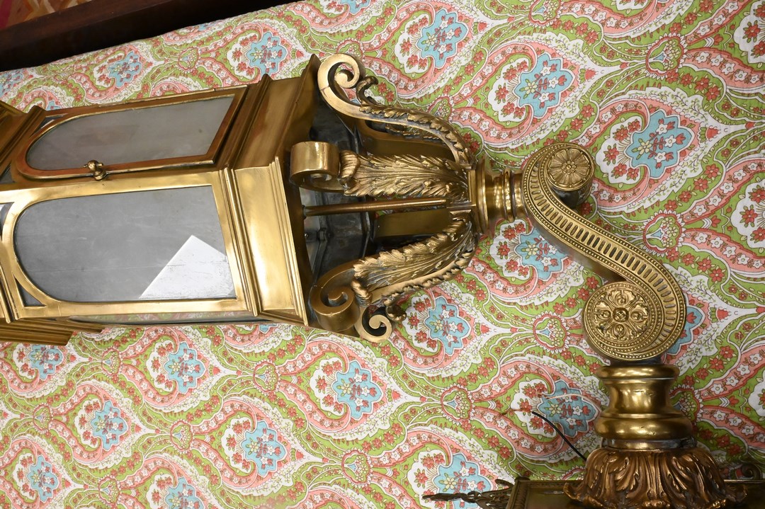 Lot 447: Pair of Monumental Brass and Bronze Turkish Wall Mounted Lanterns