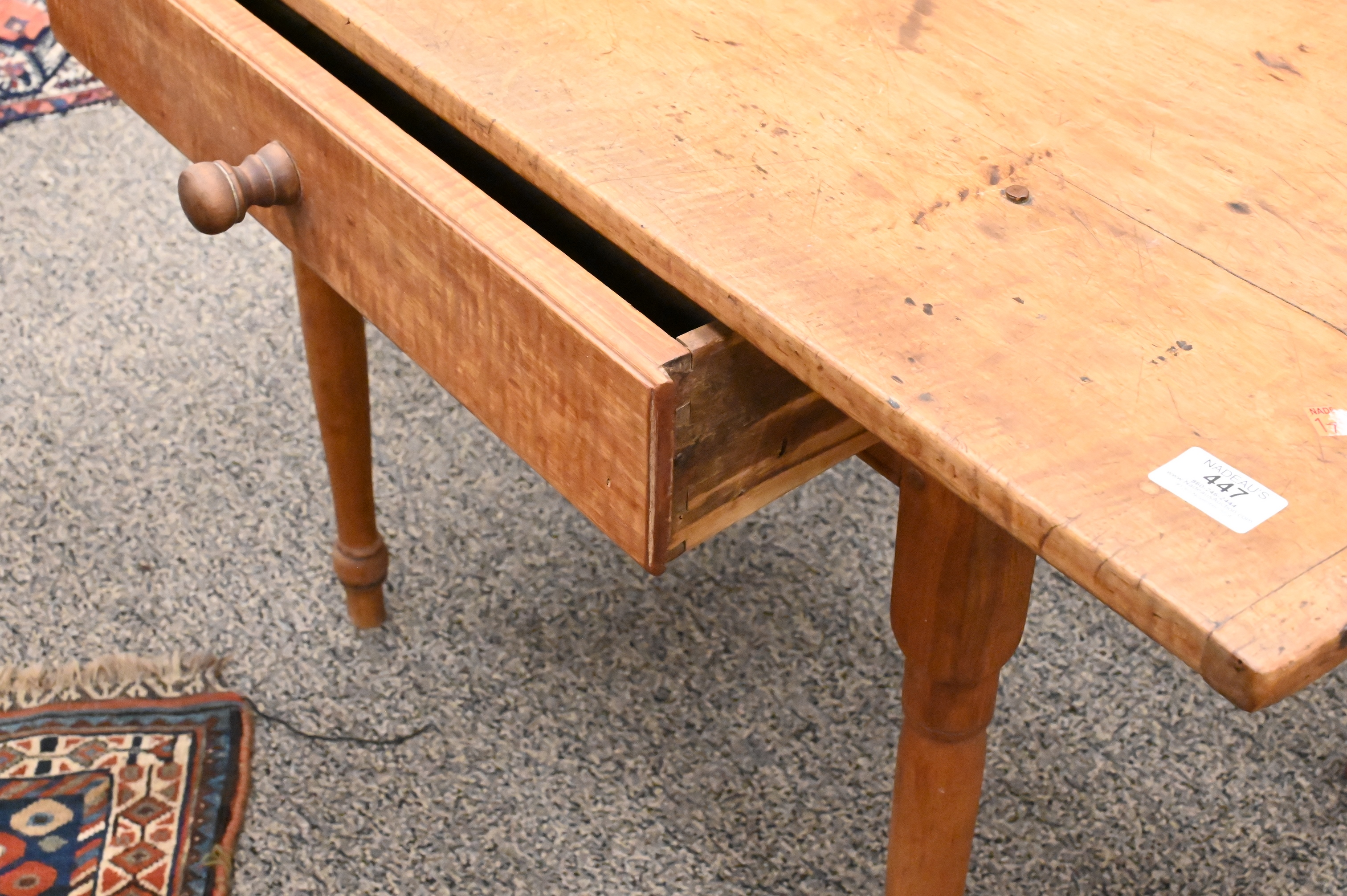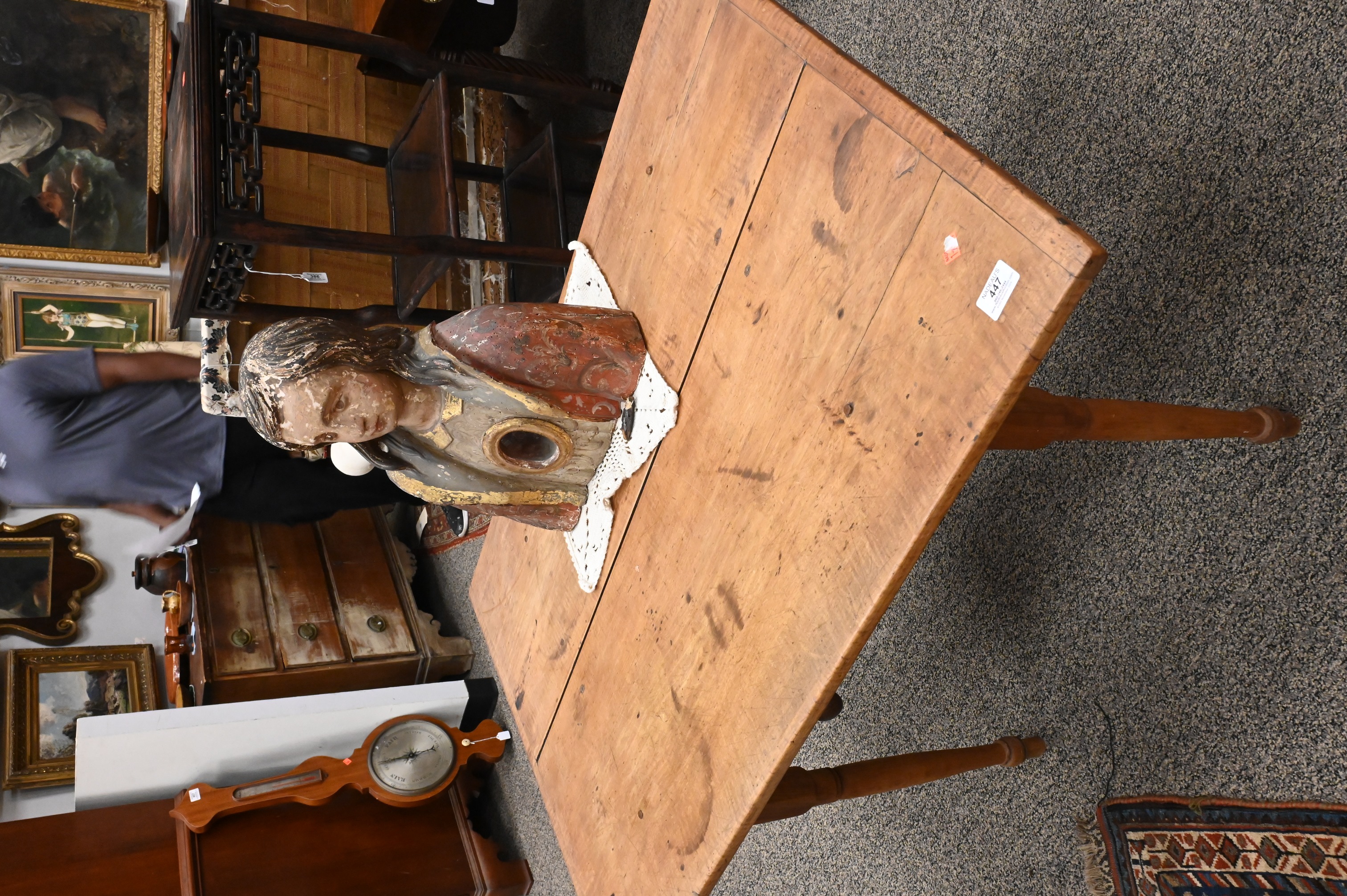 having two board top over drawer set on turned legs, 18th century, (traces of original red paint)