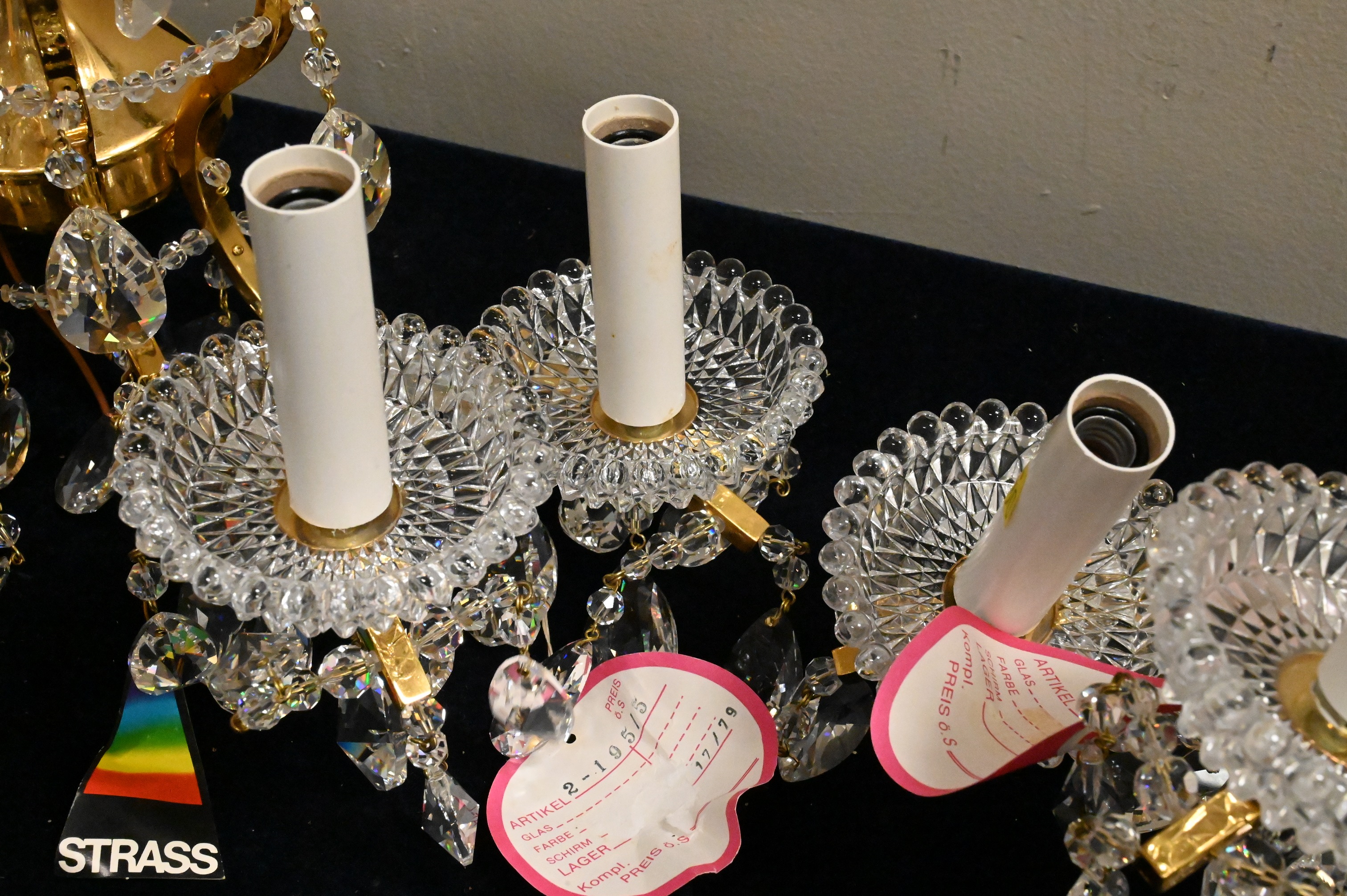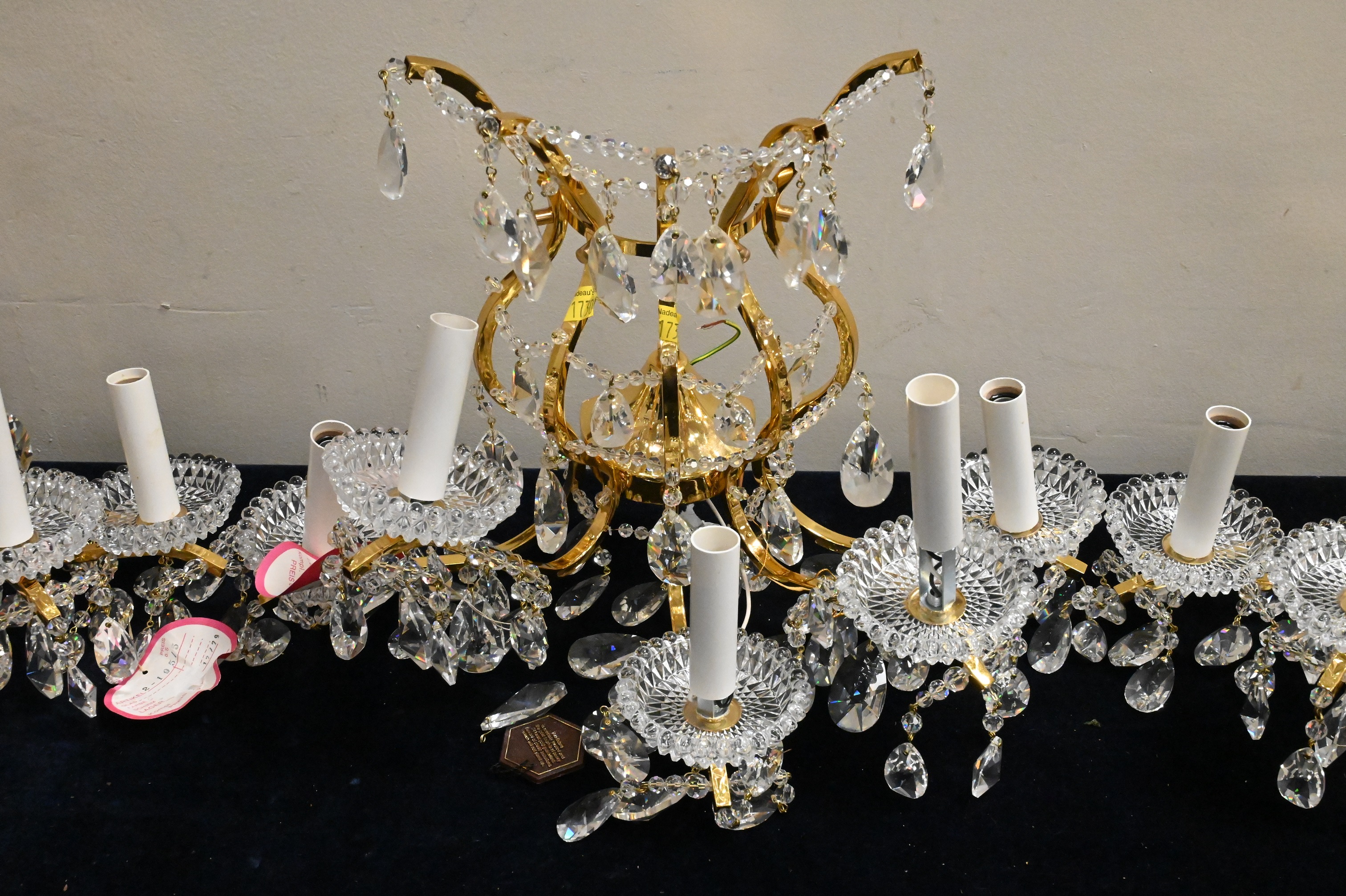 Lot 447: Set of Three Brass and Crystal Sconces