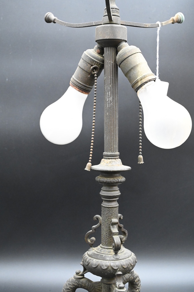 Lot 447: Triple Dolphin Base Lamp, for glass shade, height 22 inches. Provenance: Estate of Florence Yannios, Cheshire, CT.