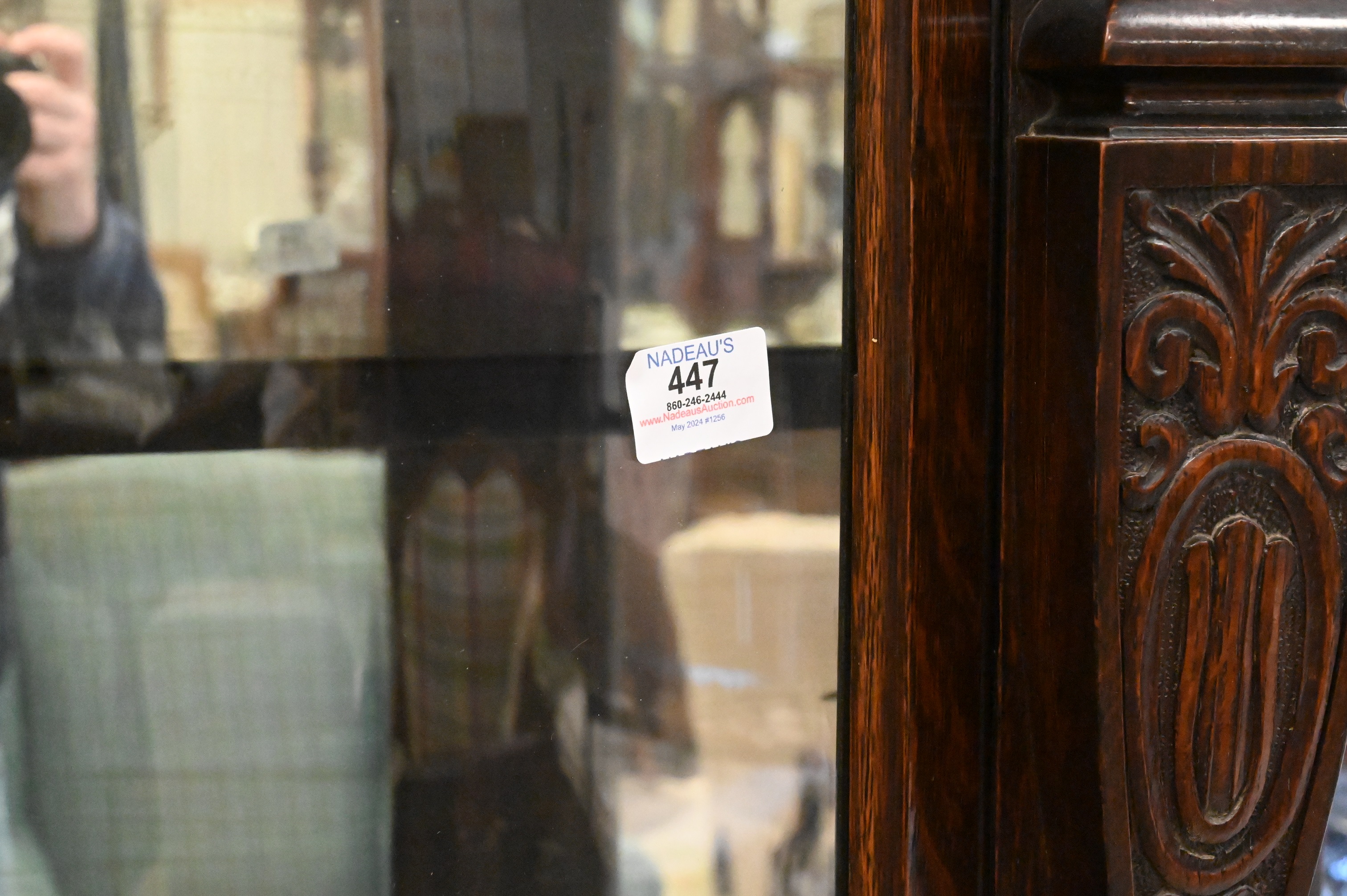 Lot 447: Victorian Oak Bowed Glass China Cabinet
