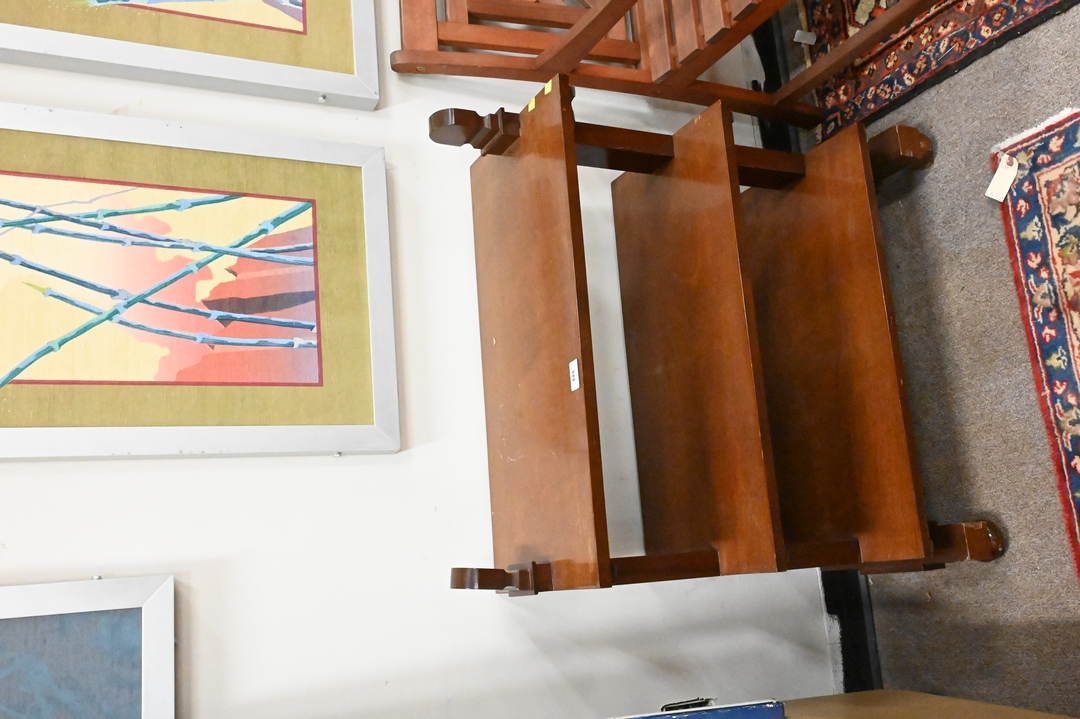 A Pair of Mahogany Three Tier Tables, height 29 inches, top 13″ x 27″.