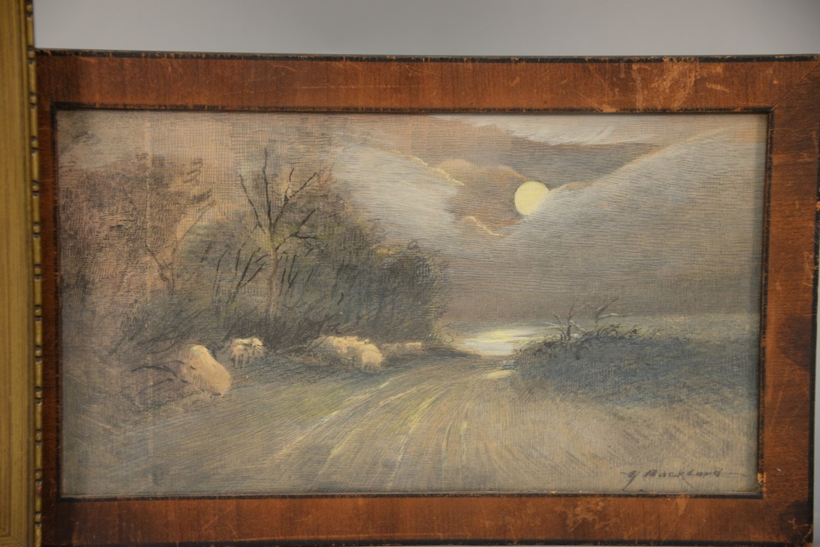 Lot 448: Arthur Herbert Buckland 1870-1927 two mixed media on paper Landscape with Moonlight Sky signed lower right: H. Buckland