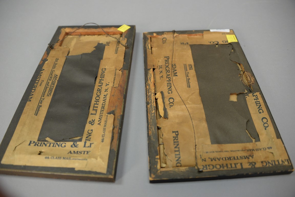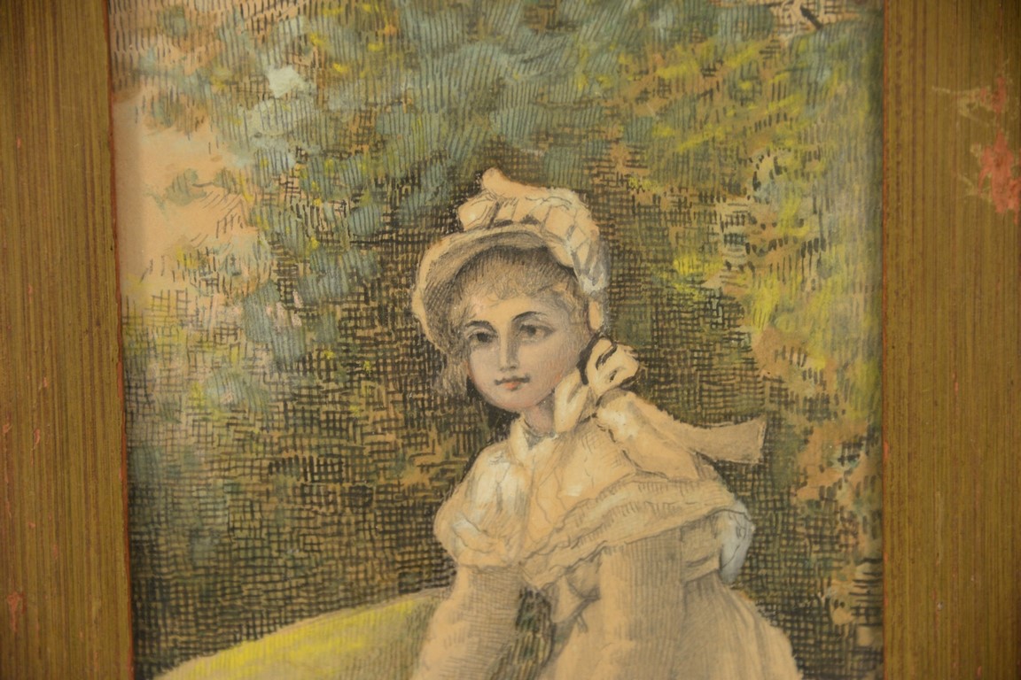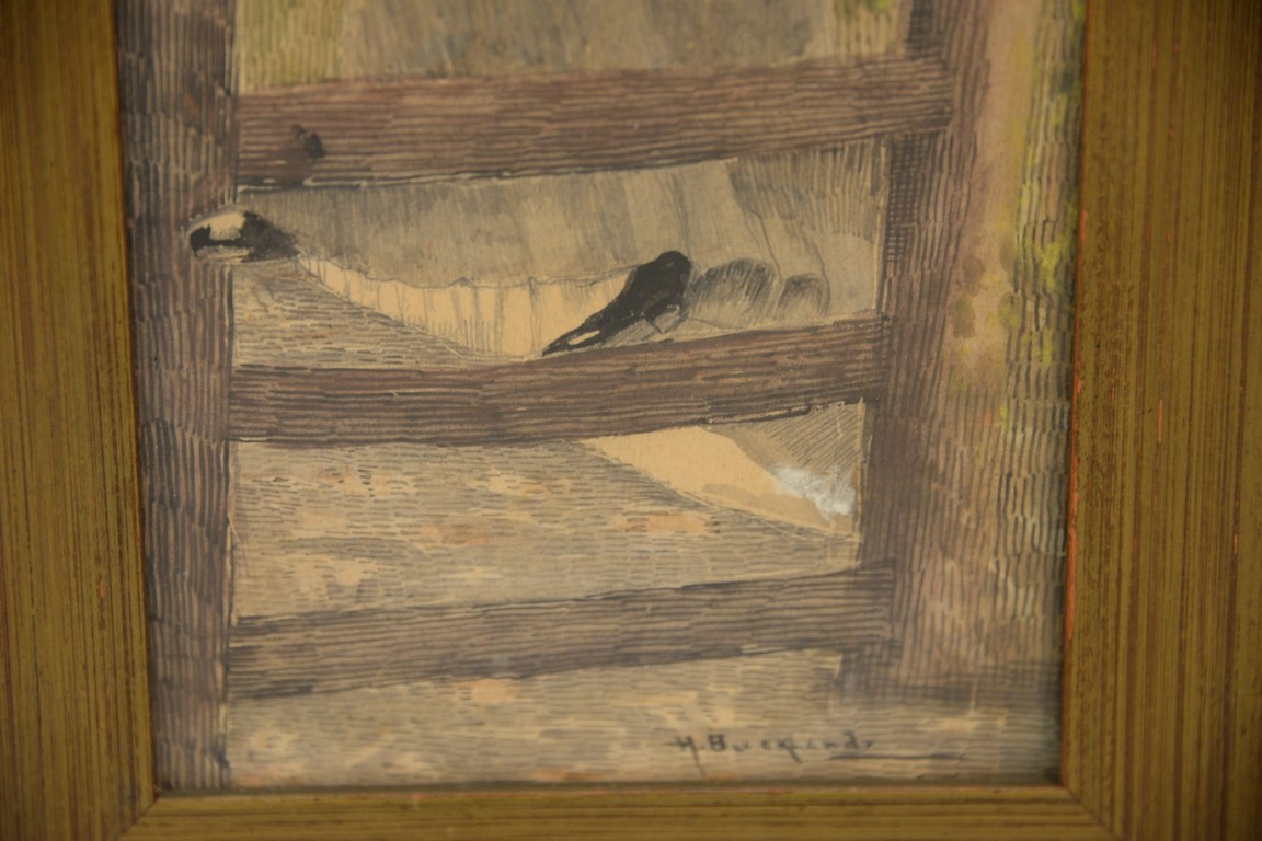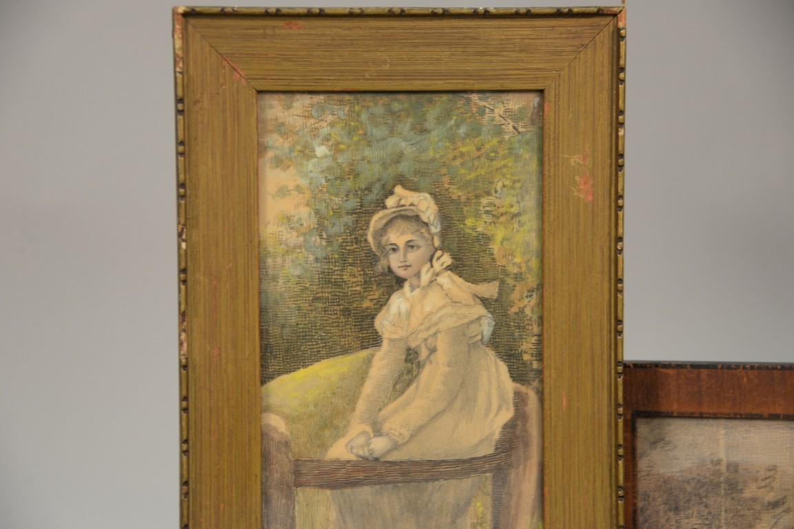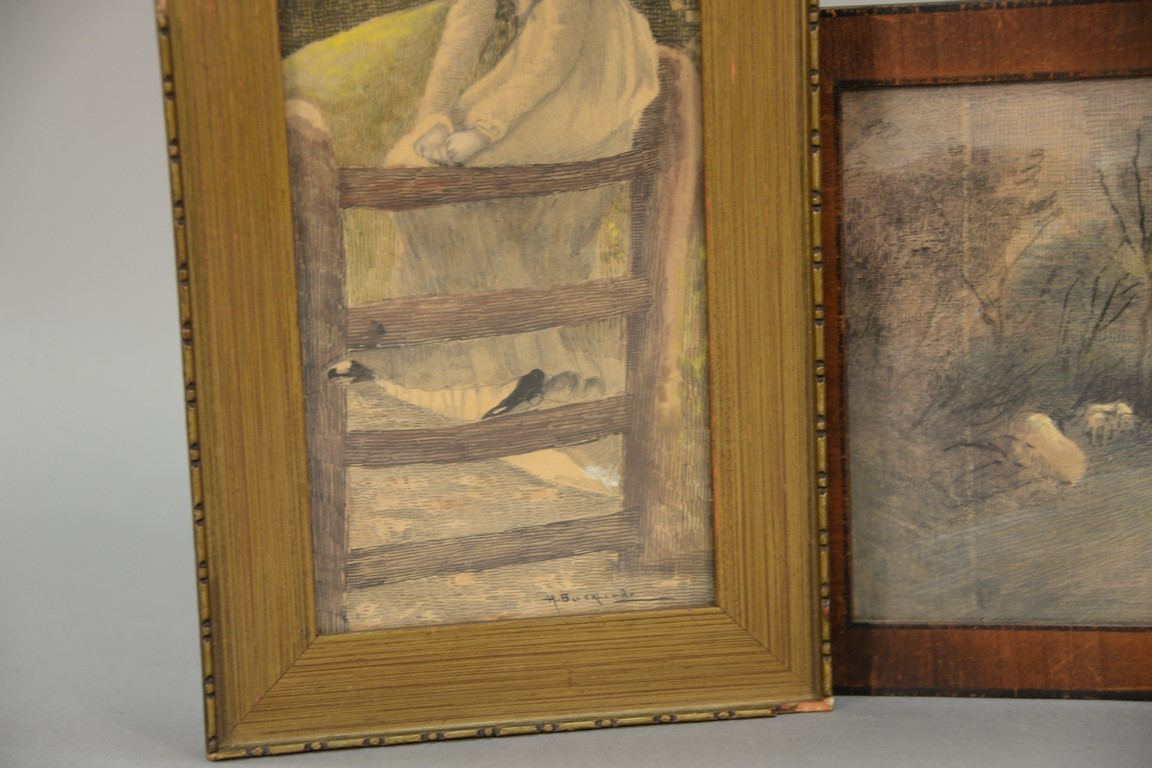 Arthur Herbert Buckland 1870-1927 two mixed media on paper Landscape with Moonlight Sky signed lower right: H. Buckland 5 3/4 x 10 Young Woman Sitting on a Fence signed lower right: H. Buckland 10 x 4 1/2 Possibly Harlan Paige Buckland