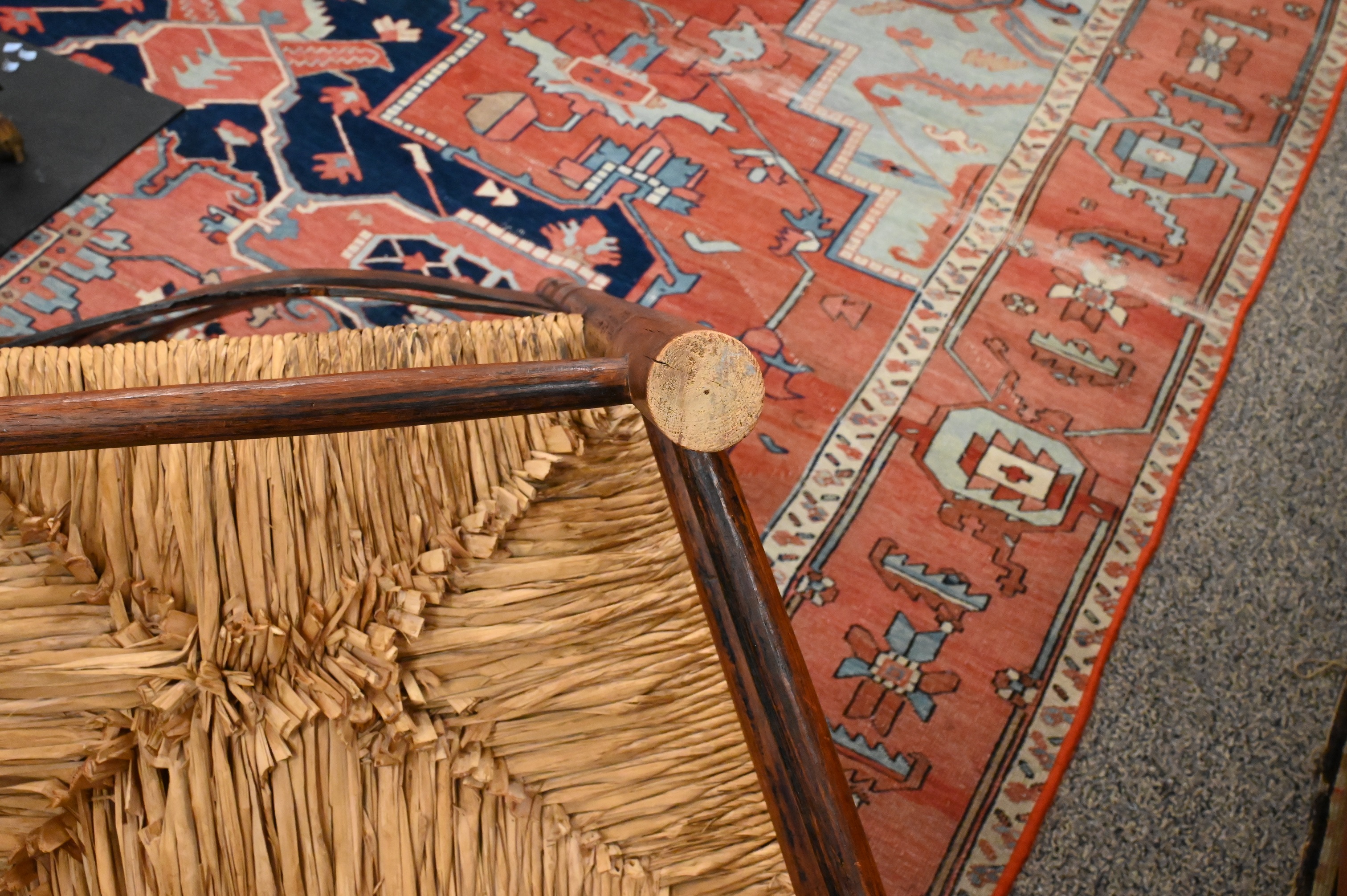 four slat with turned supports and rush seat