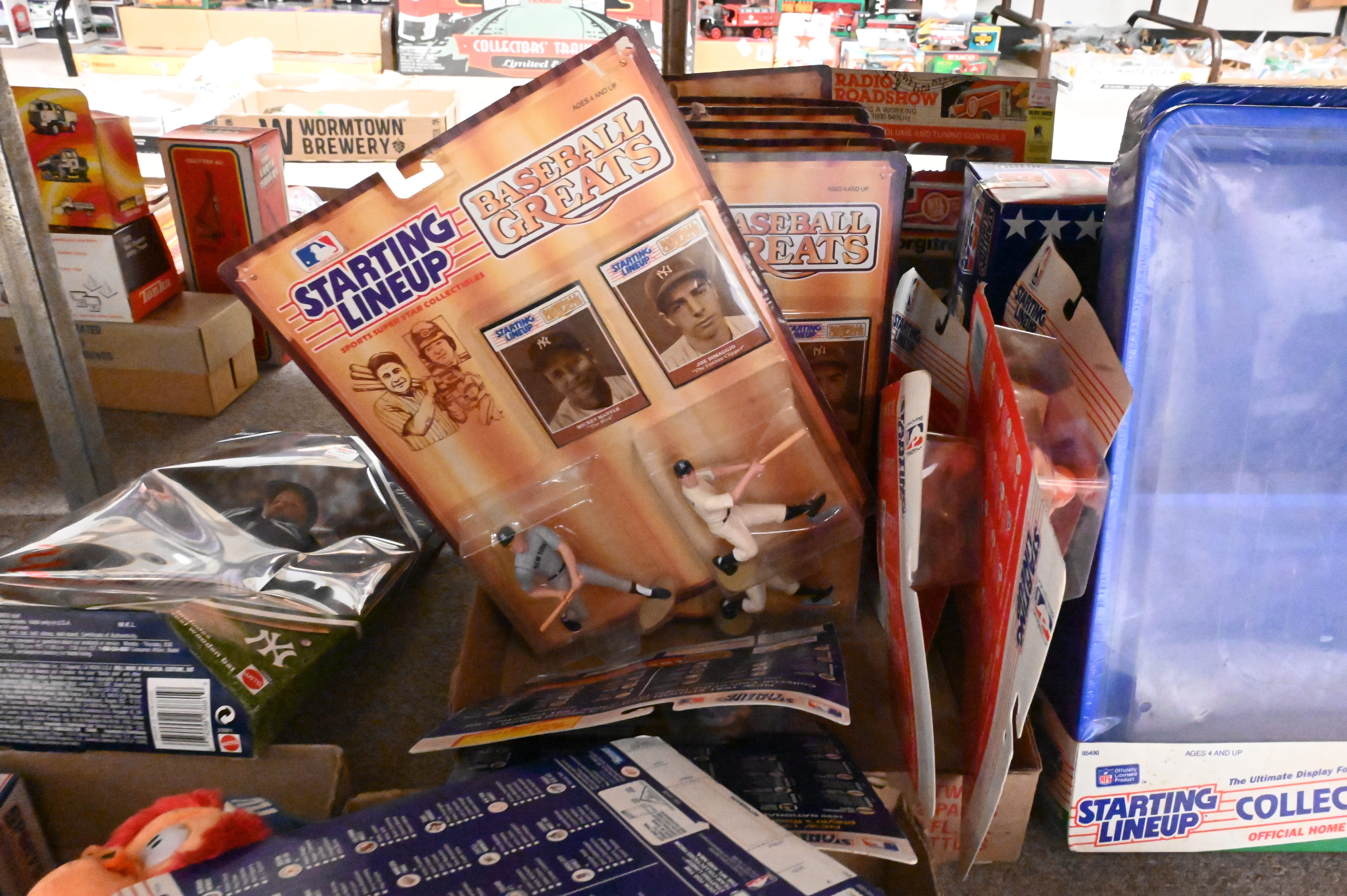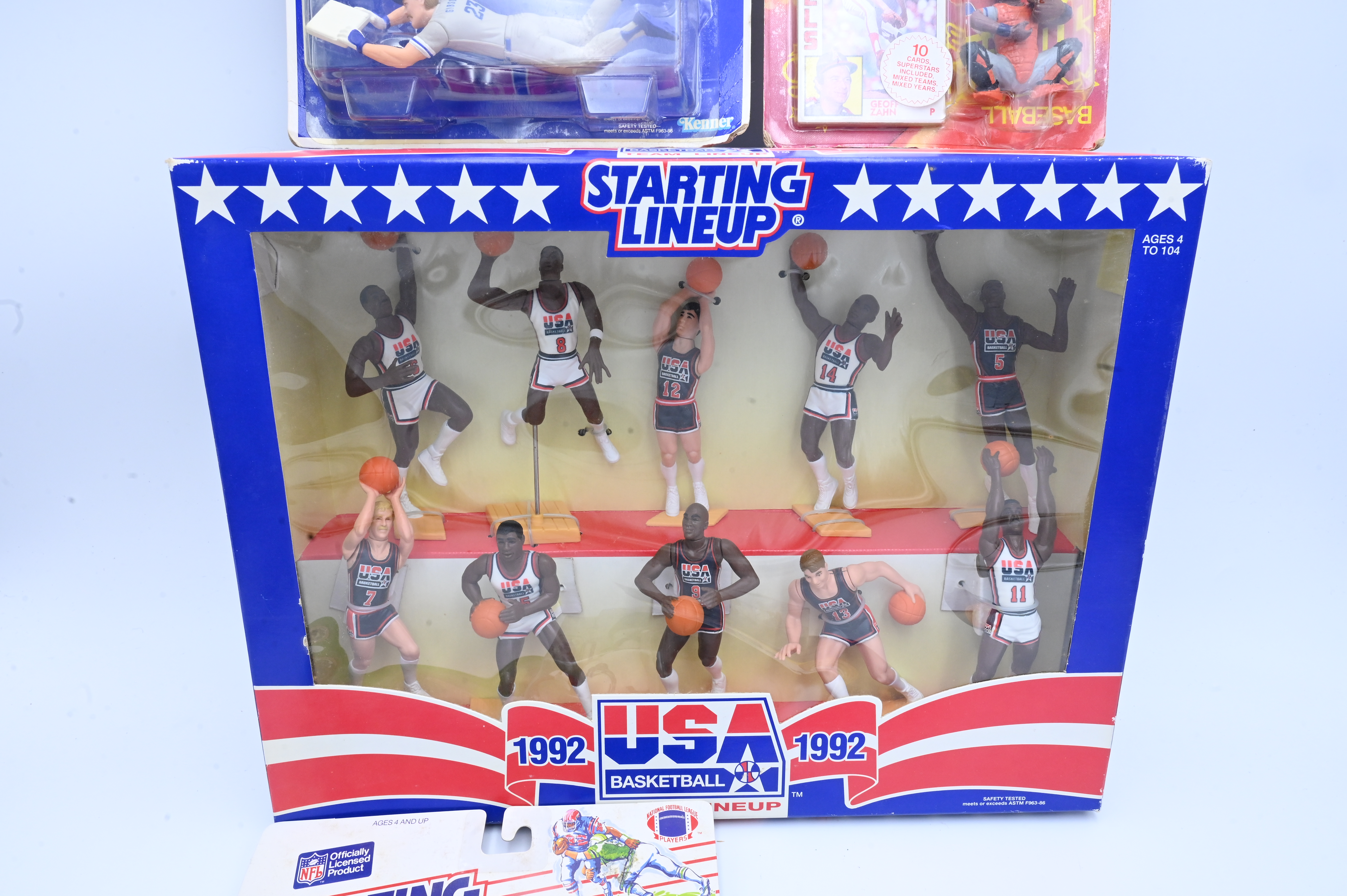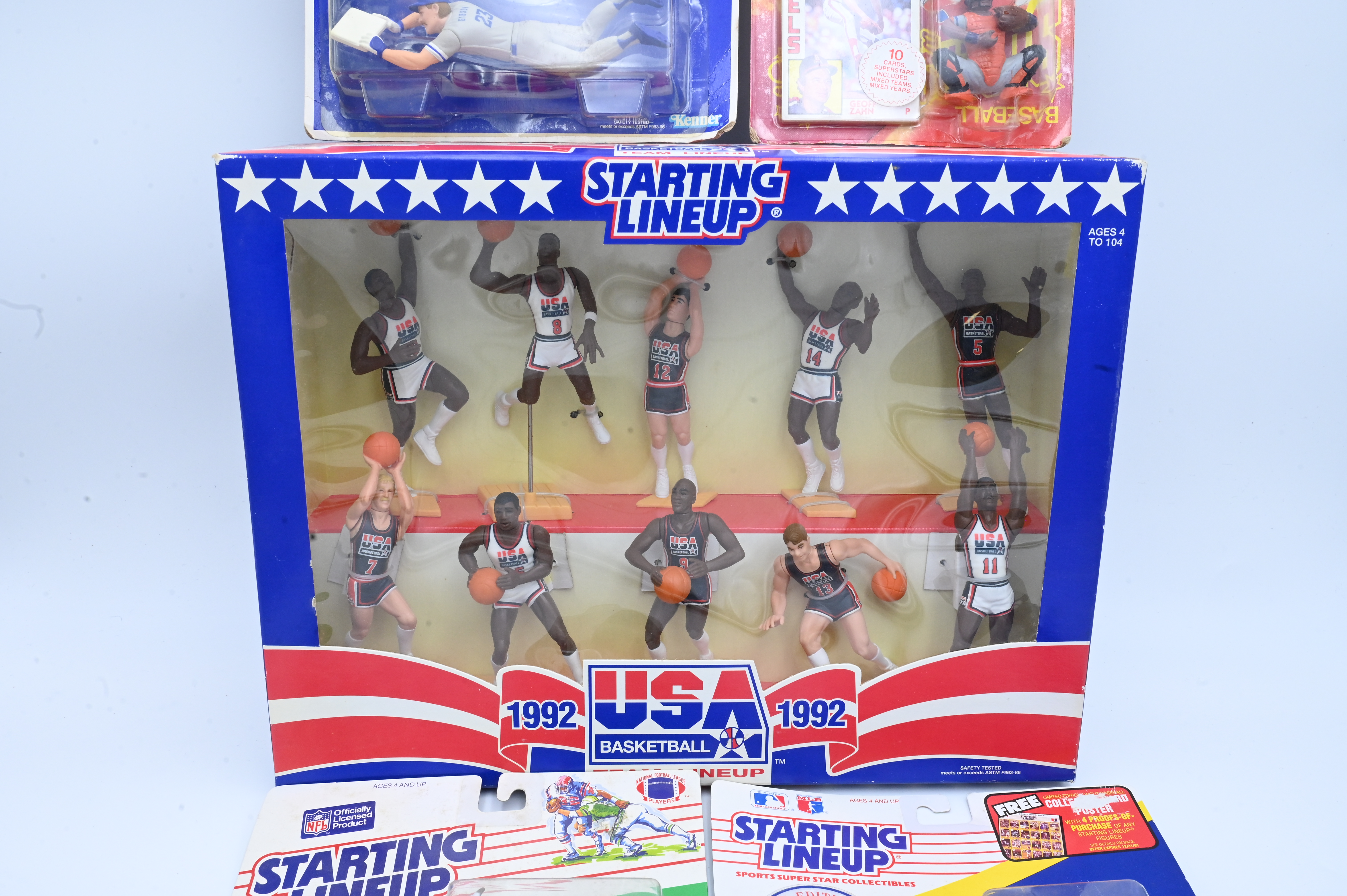 Large Sports Memorabilia Lot, to include Starting Lineup 1989 baseball and football players, 1988 and 1992 basketball players, action figures including the Dream Team etc., most in original packaging, (as is).