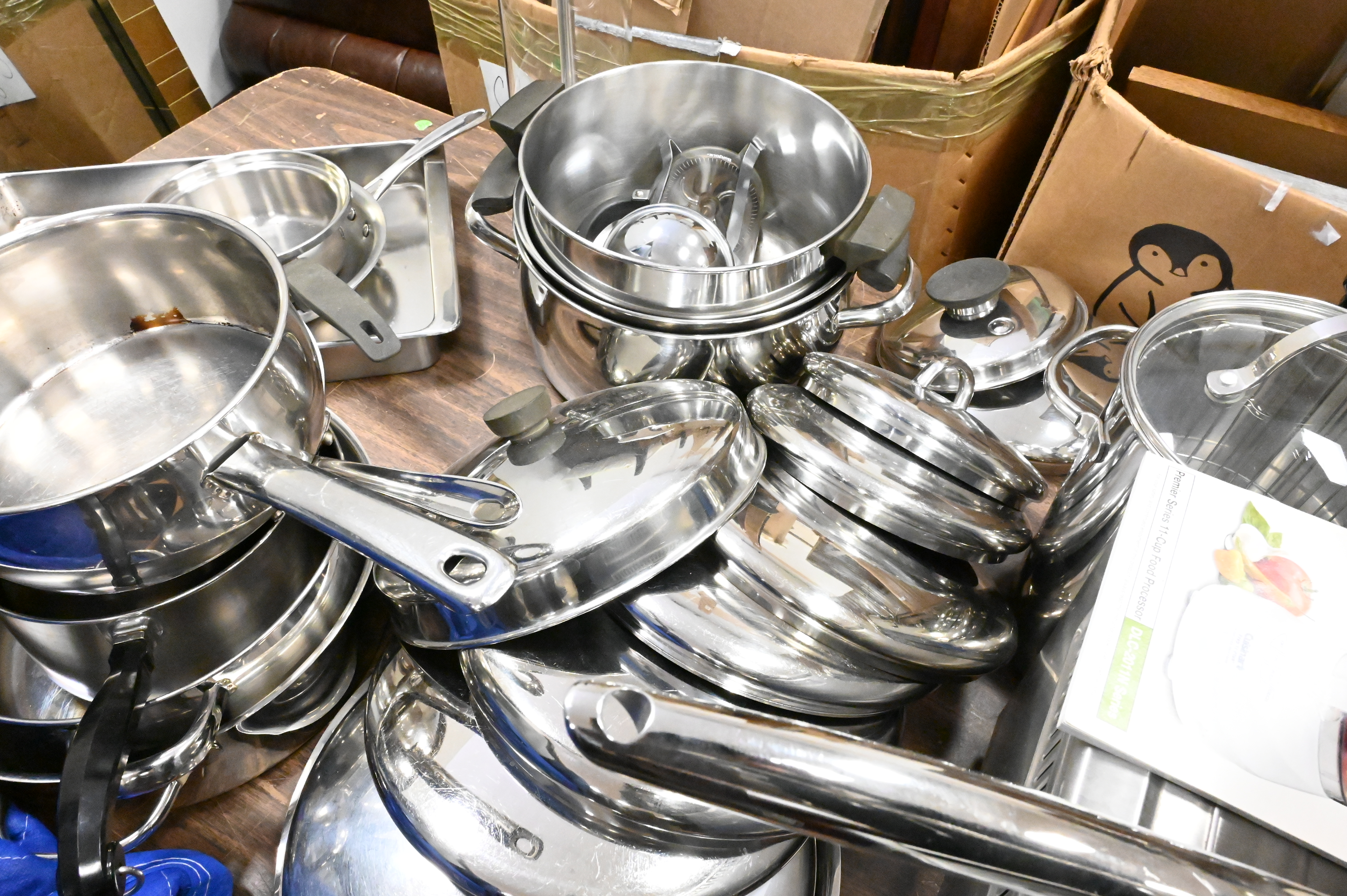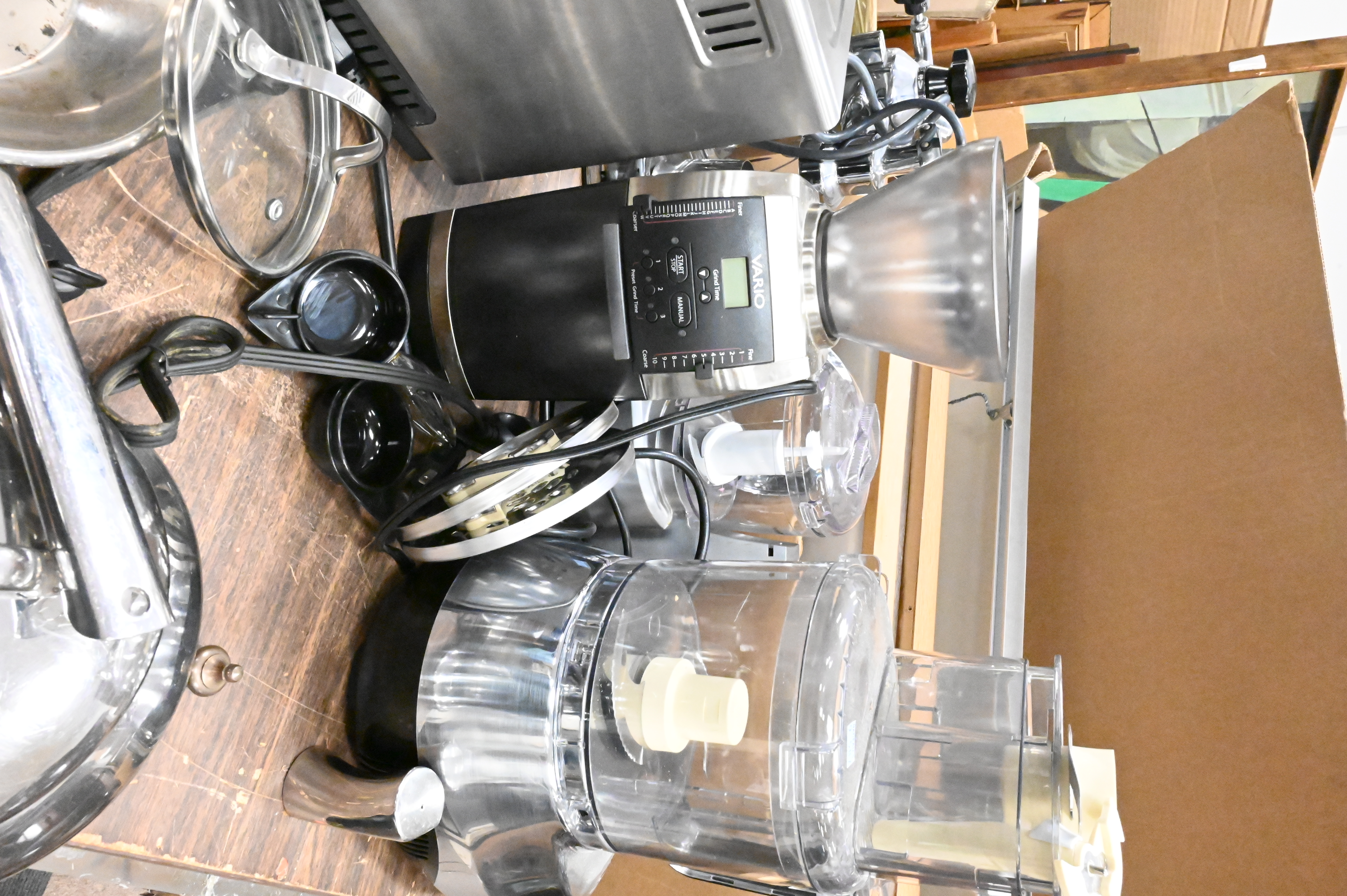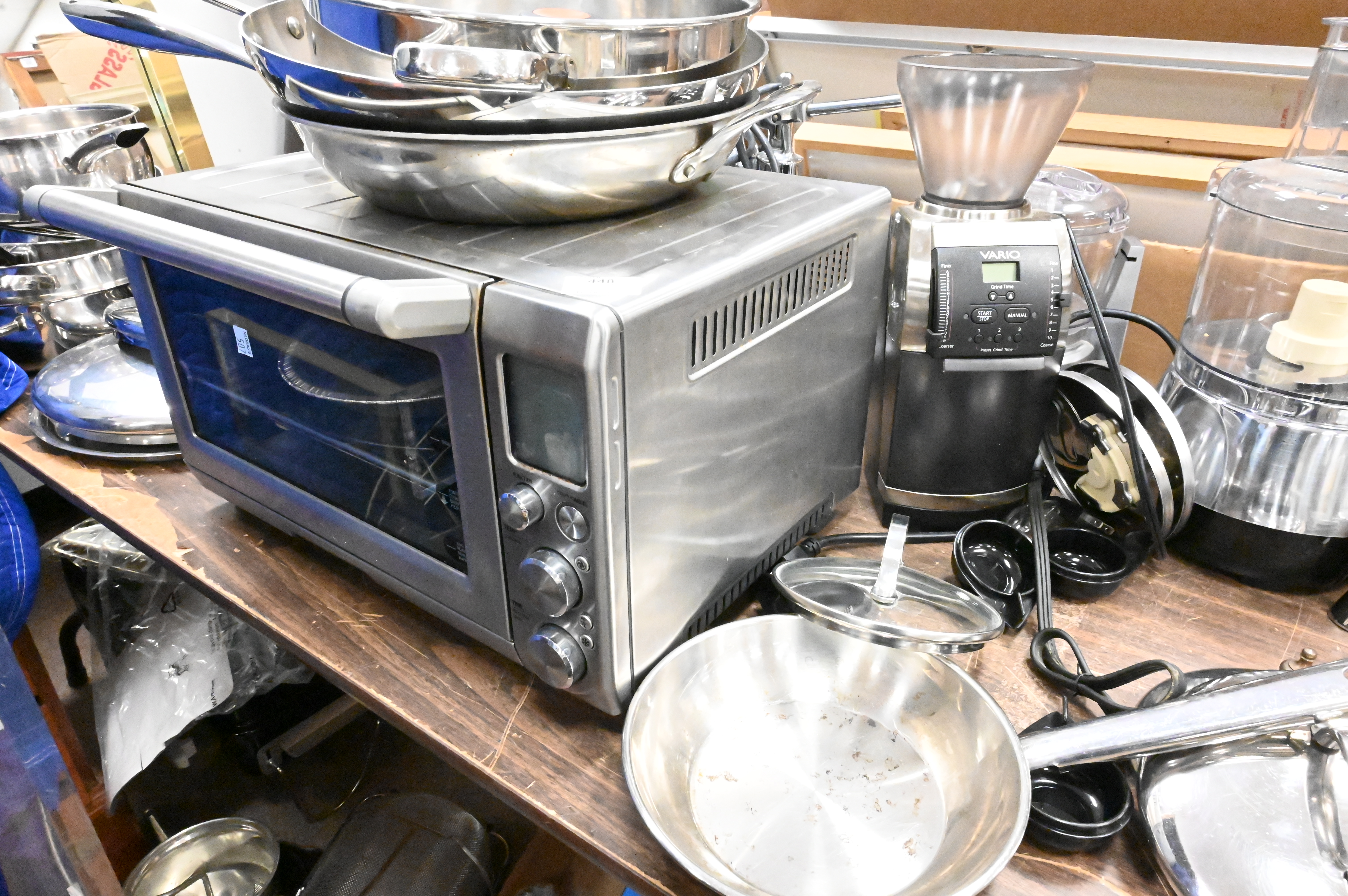 to include Breville oven, two Cuisinart food processors, La Pa’voni cappuccino Vario coffee grinder, and pots and pans with lids