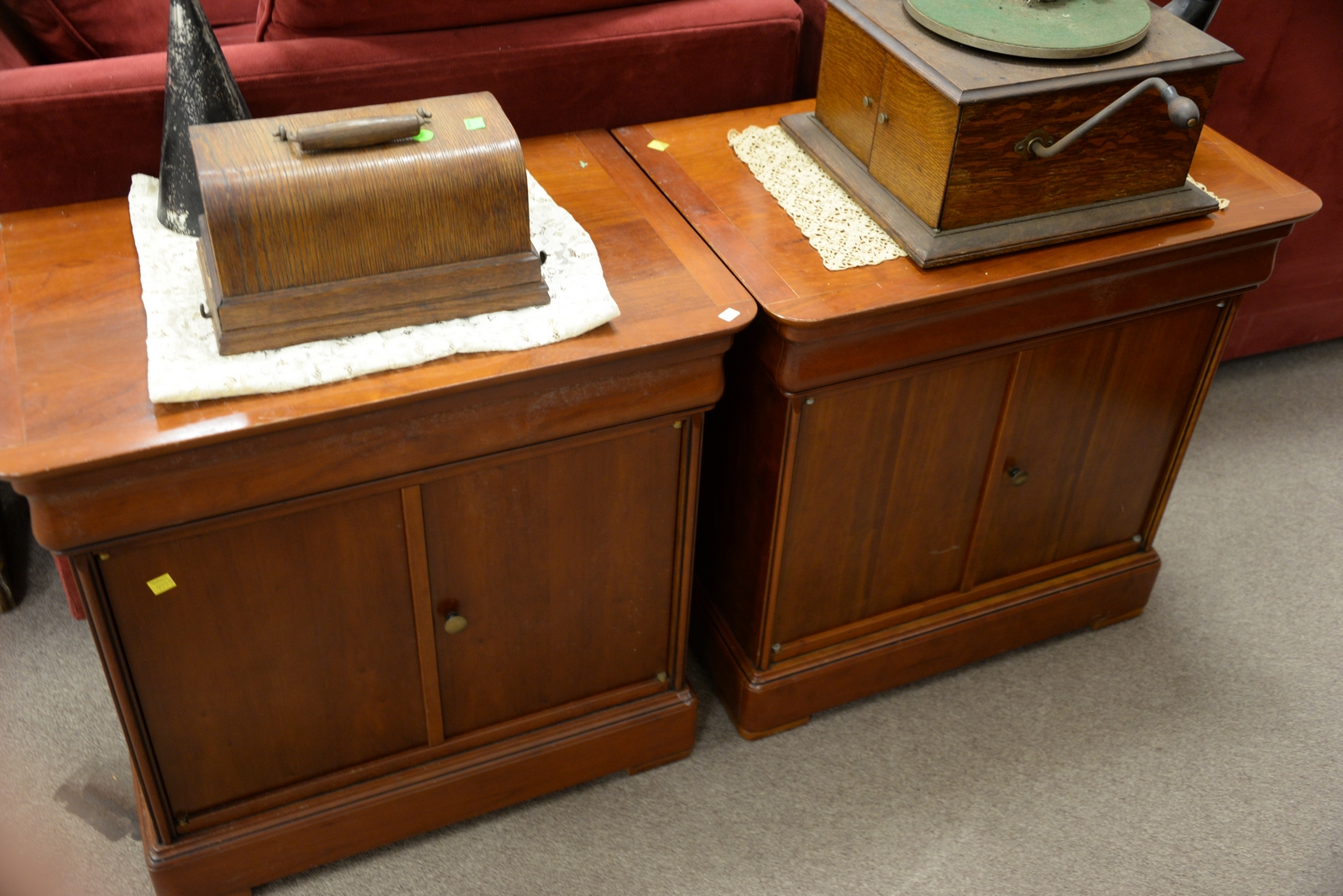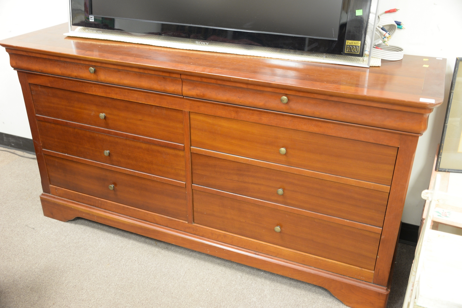 Lot 448: Three piece lot to include cherry double chest and two stands. ht. 33in., lg. 65in., dp. 19 1/2 in.