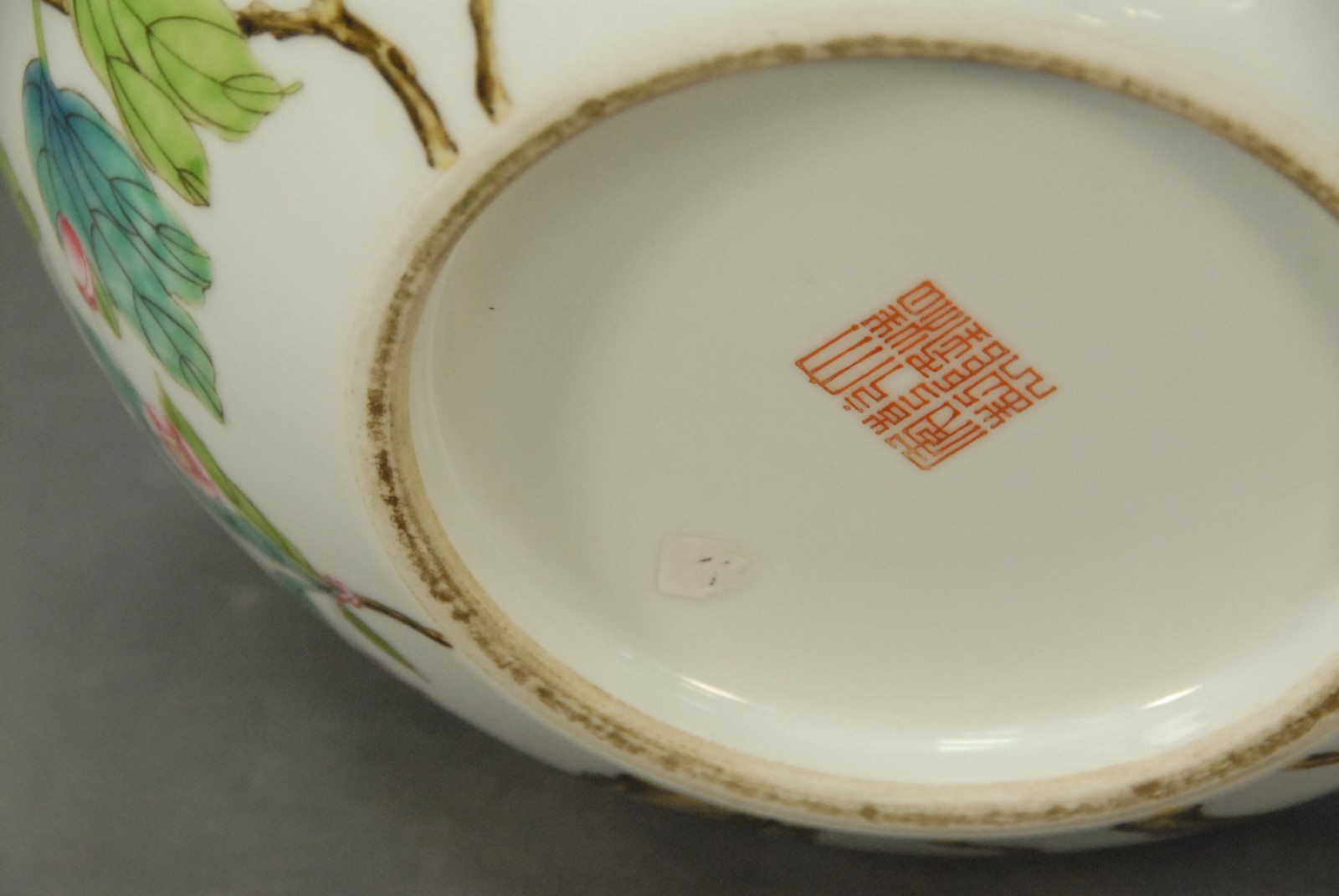 Famille Rose porcelain vase with Peony flowers design and QianLong mark, 19th-20th Century.