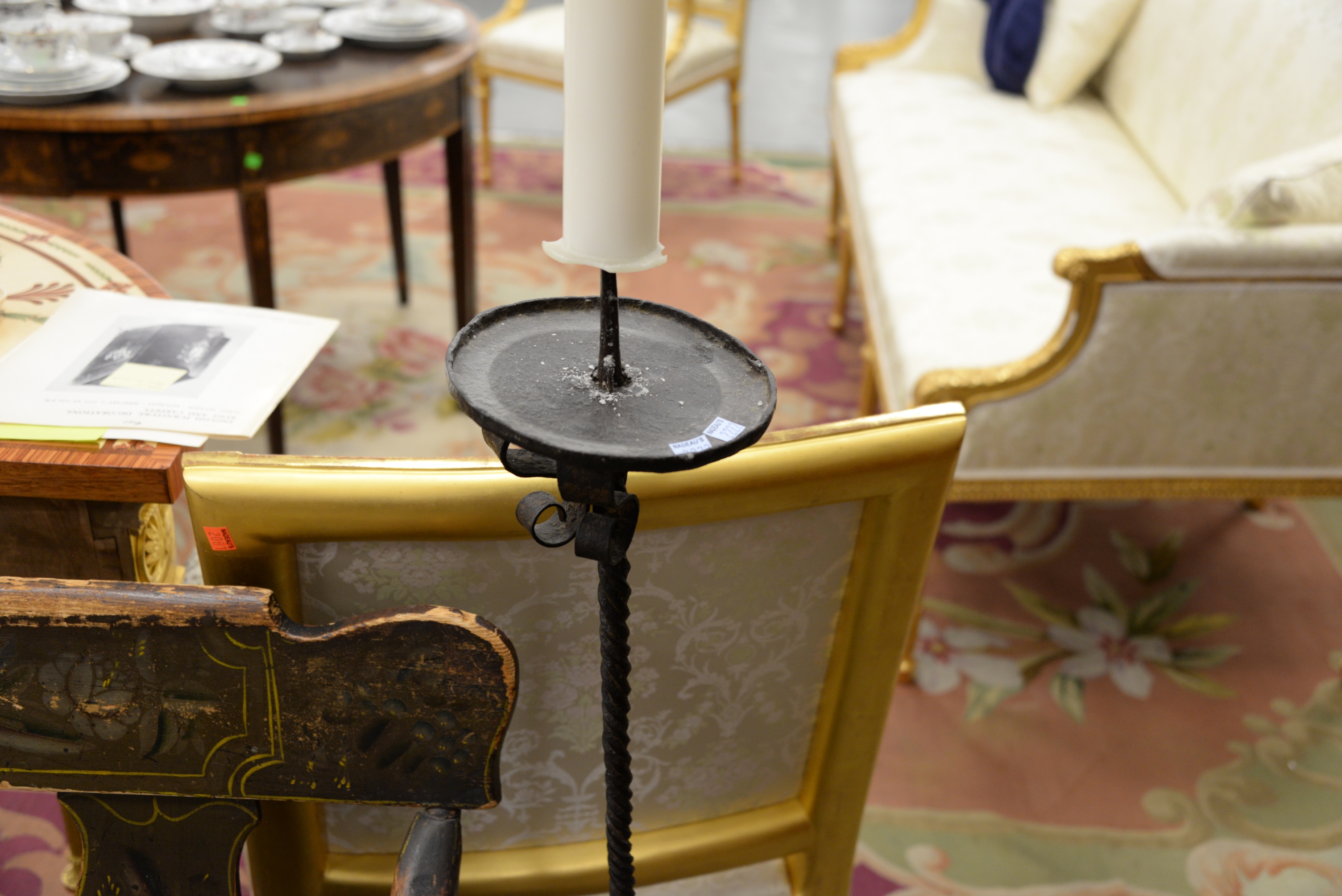 Iron Adjustable Floor Lamp, having twist stem on three feet, height 58 inches.