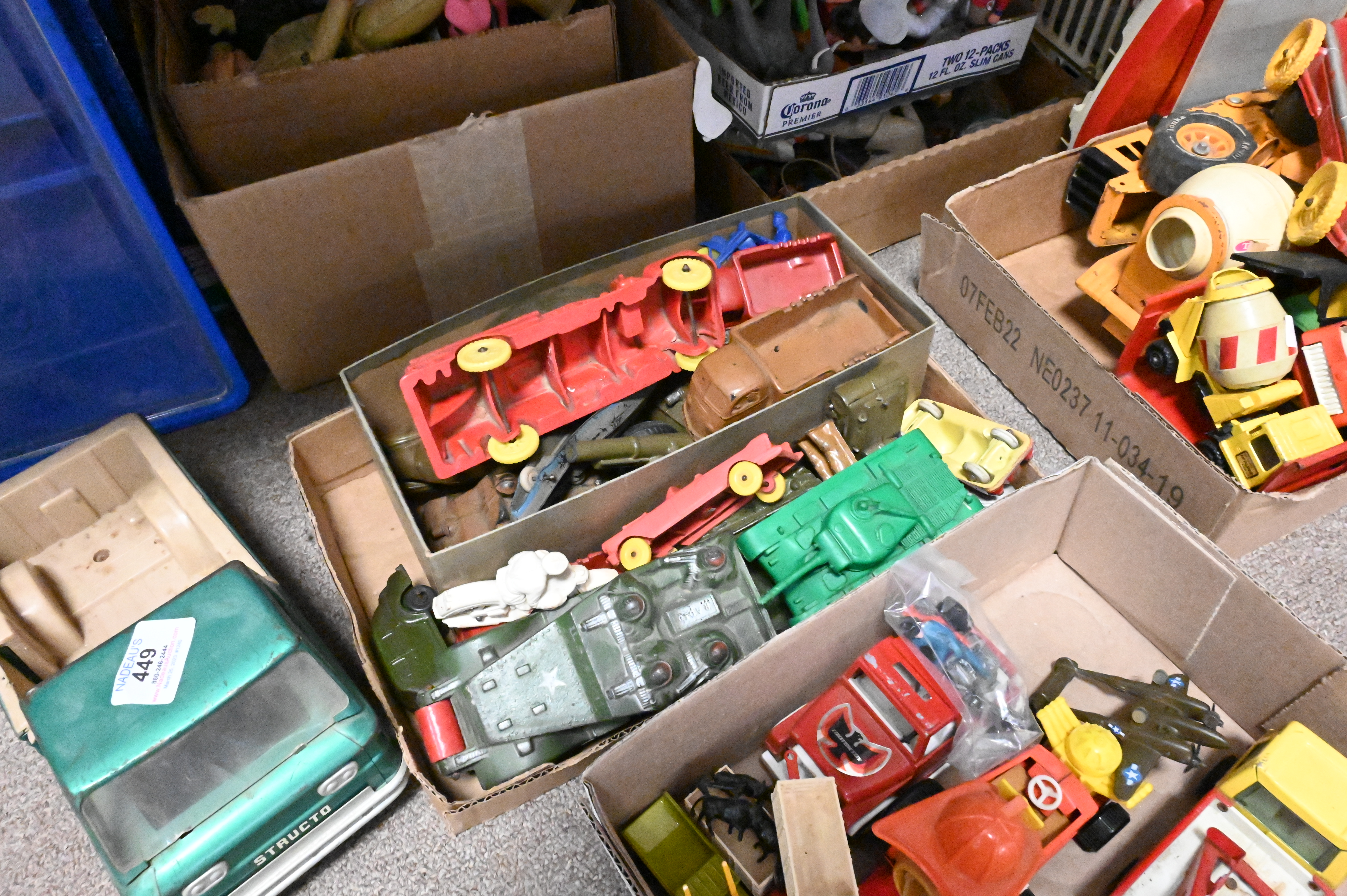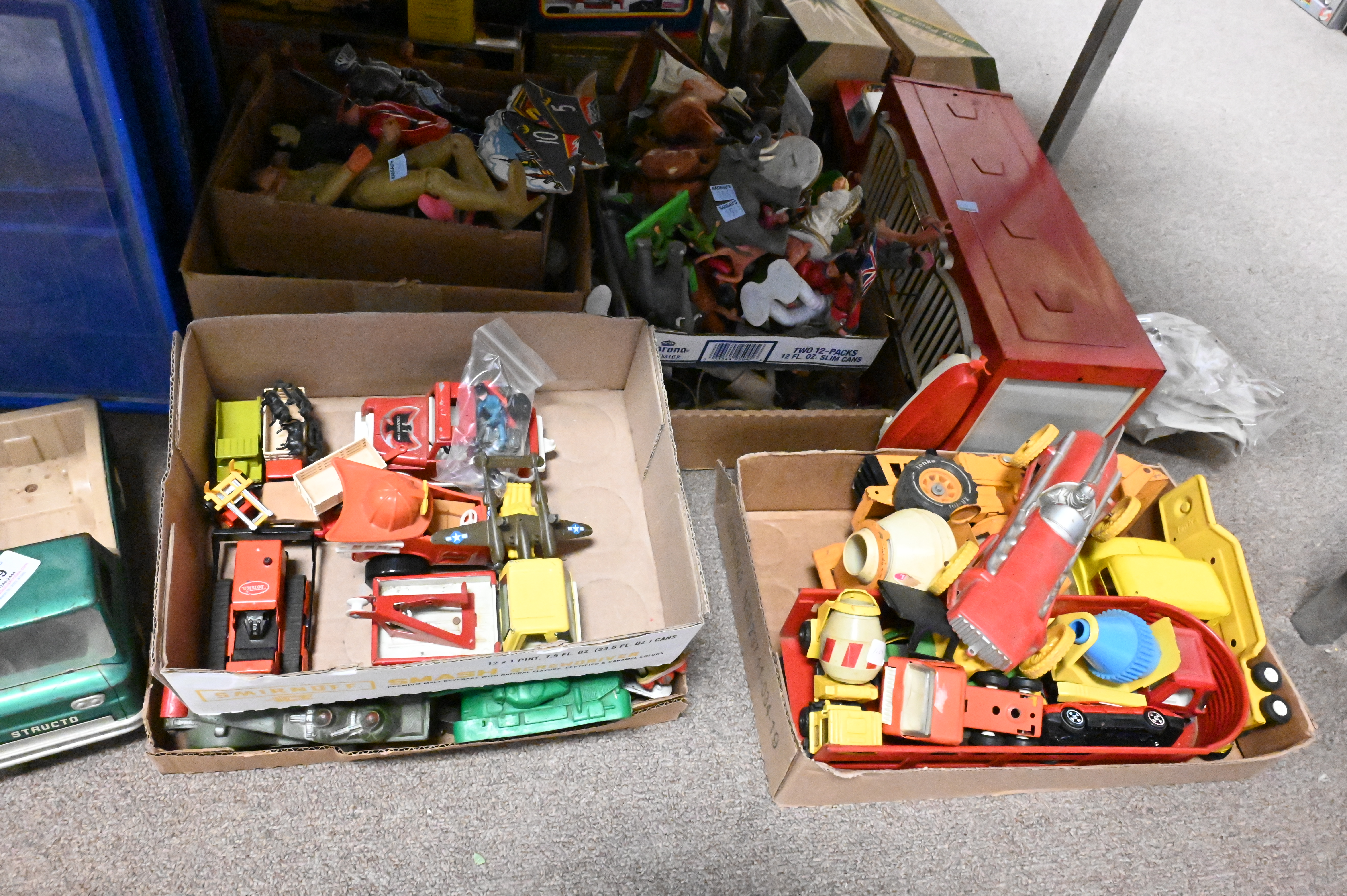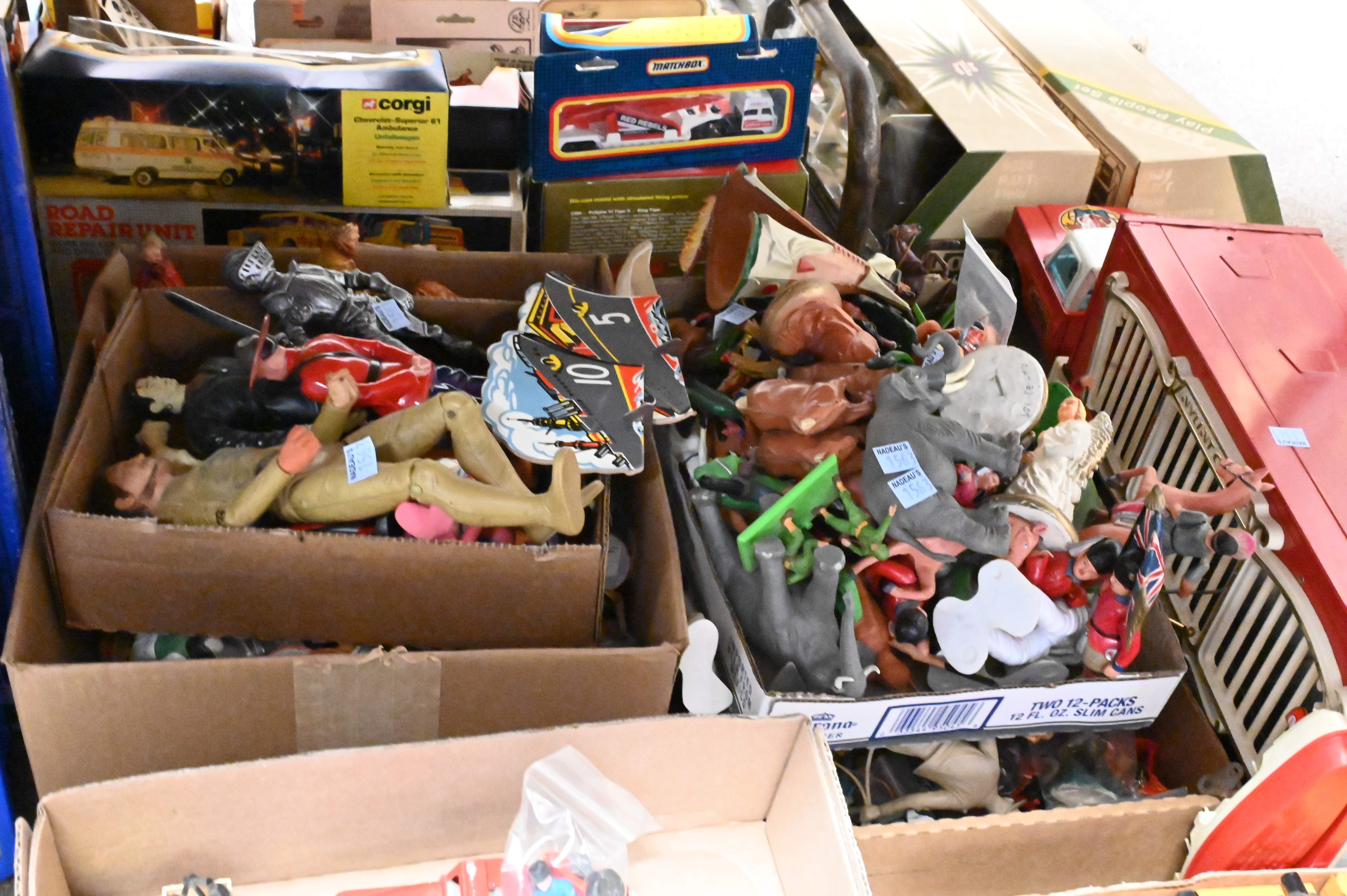 Large Grouping of Vintage Toys, to include metal and plastic automobiles, along with metal and plastic figurines.