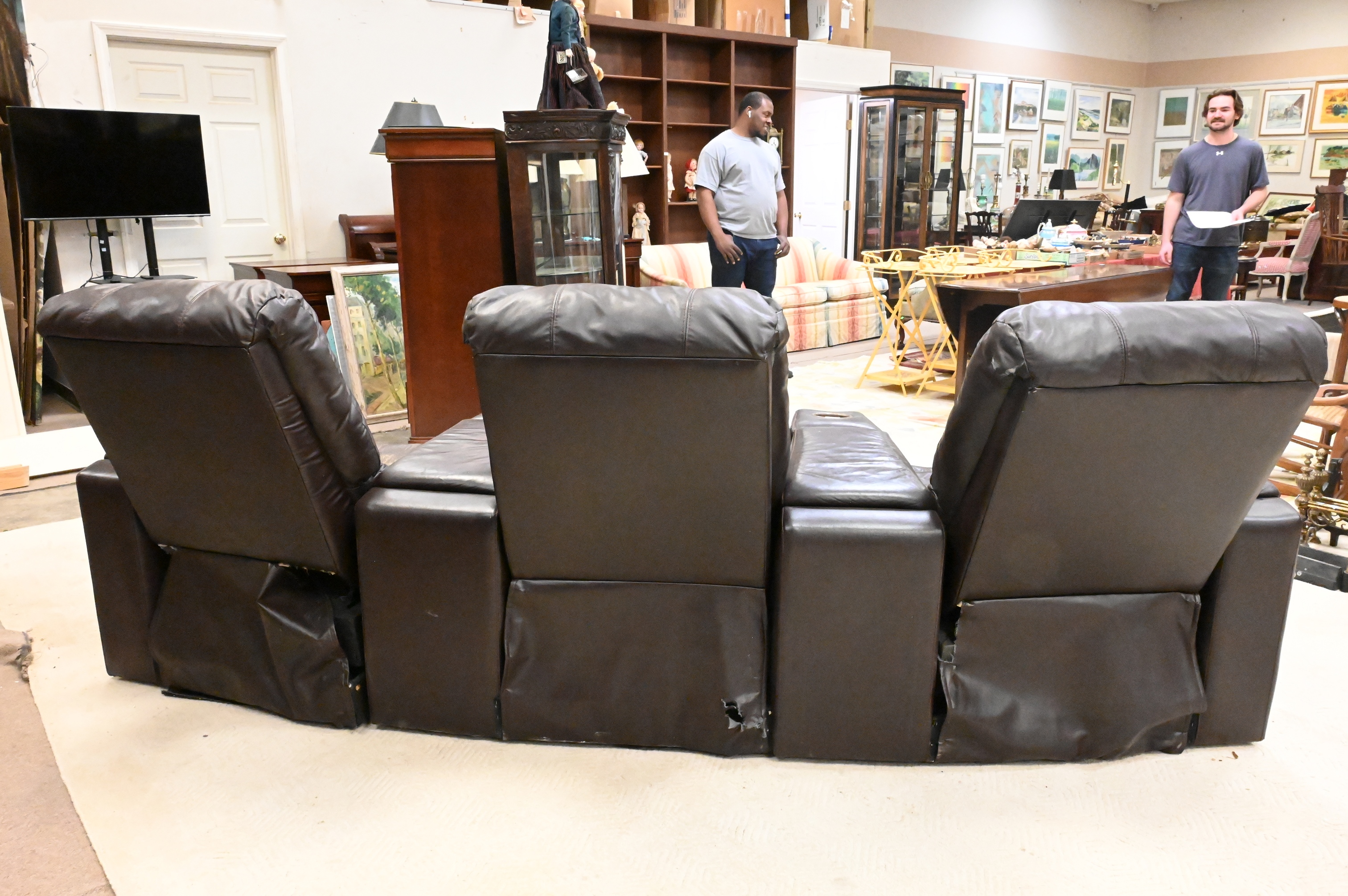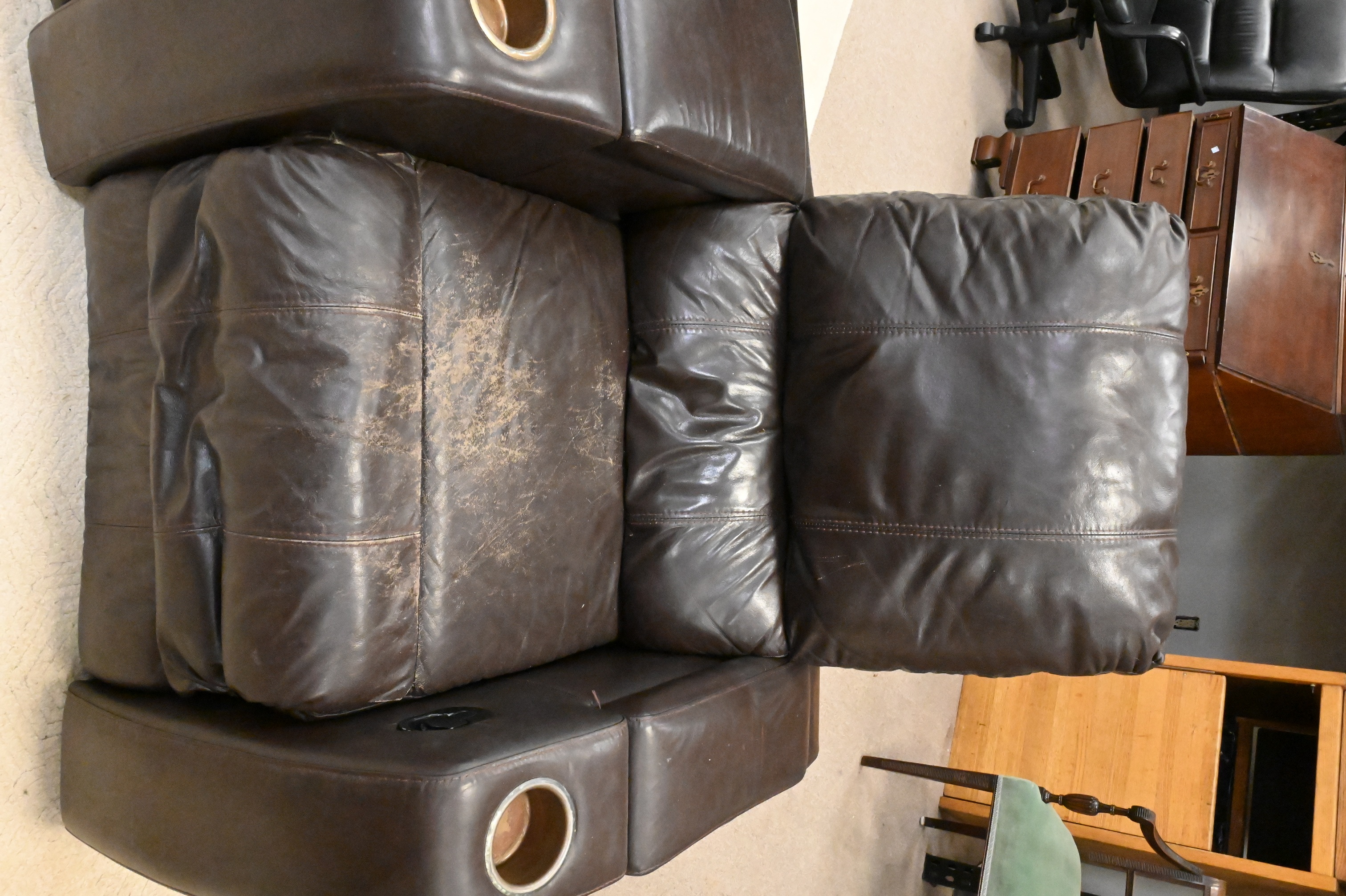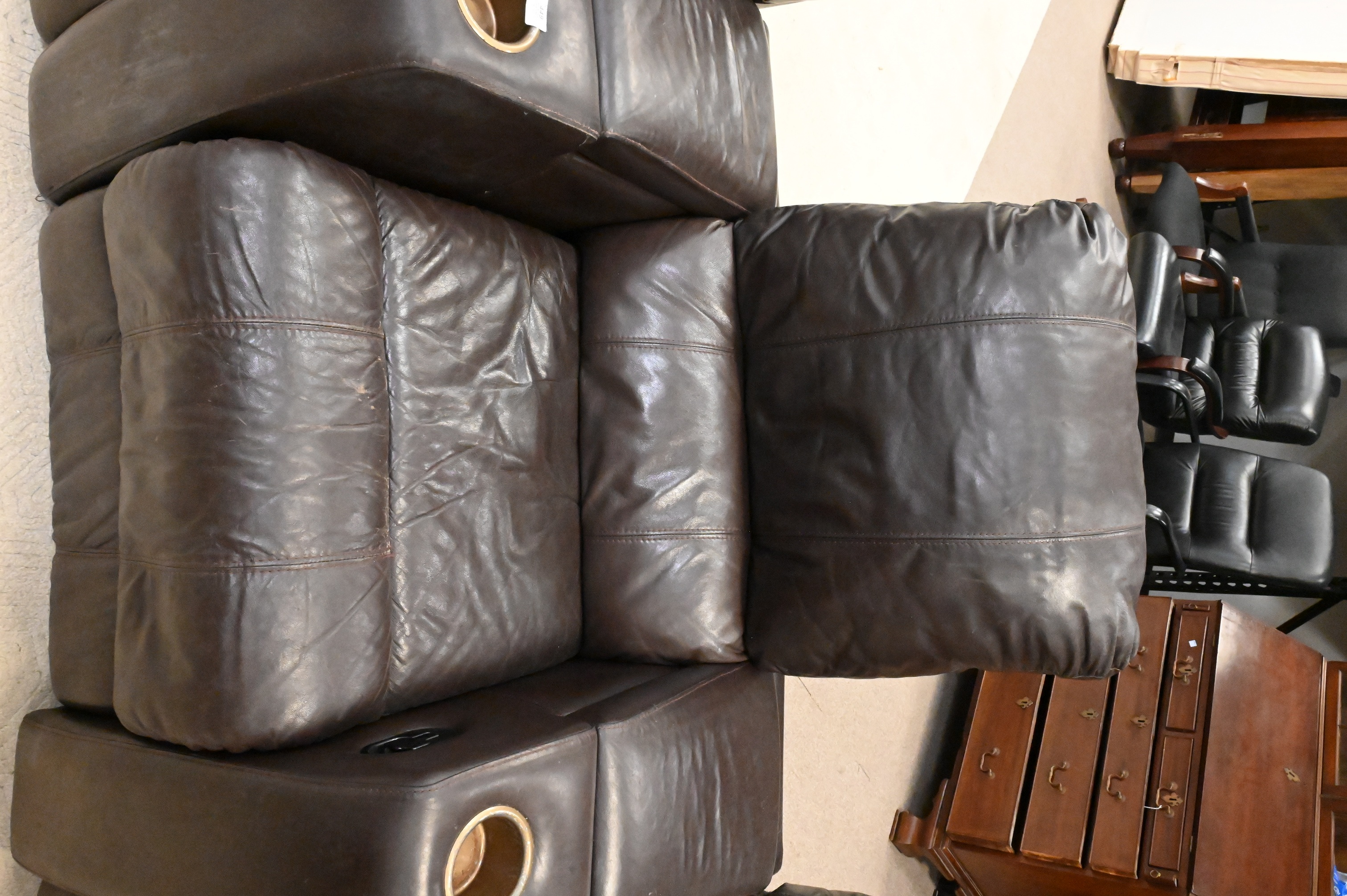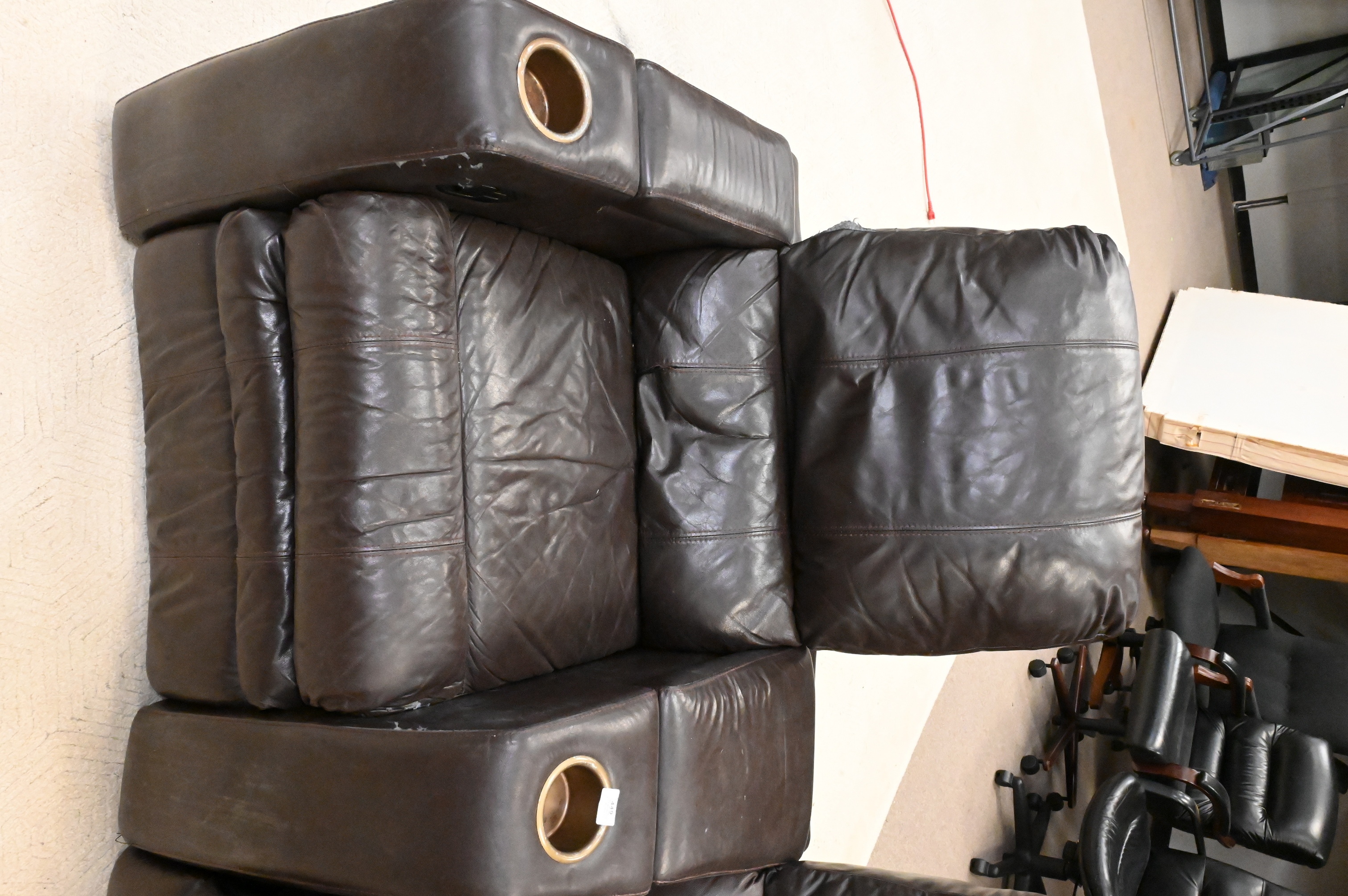 Lot 449: Set of Three Leather Reclining Theater Chairs