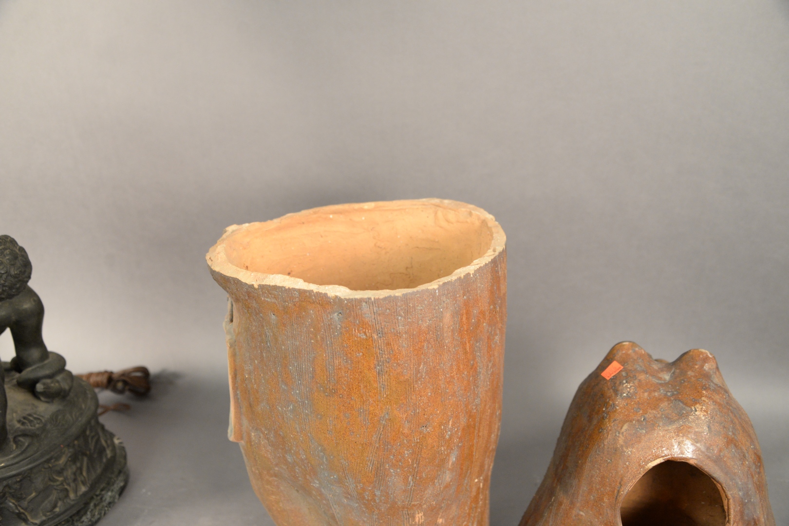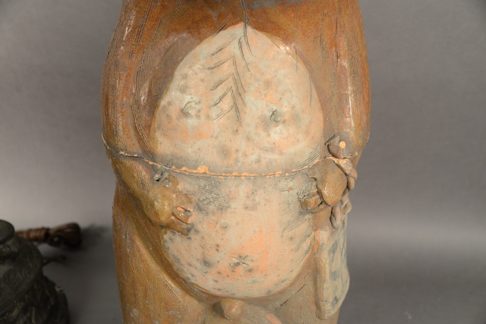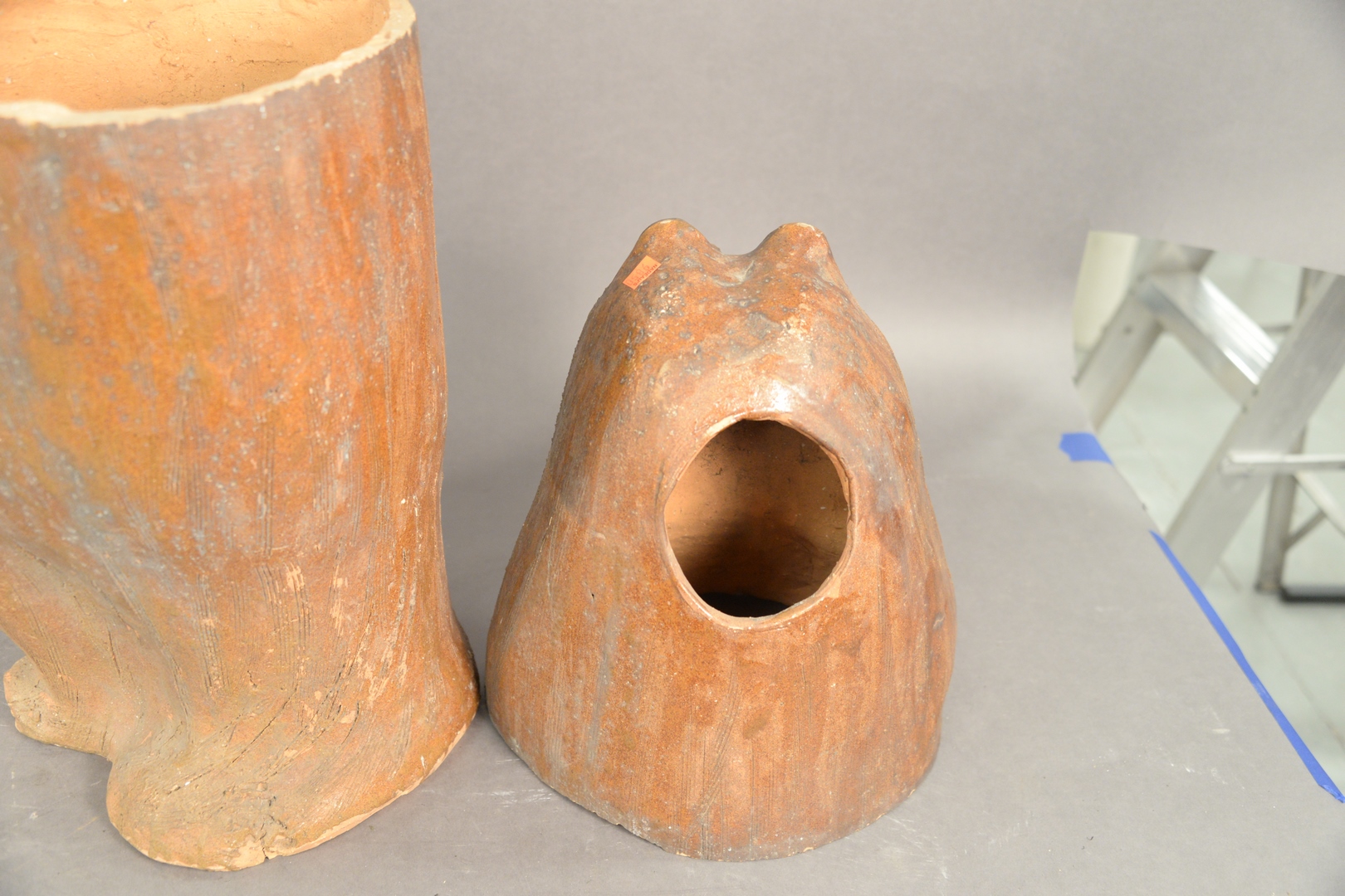 Terracotta Two Part Bear, partially glazed, height 30 inches.