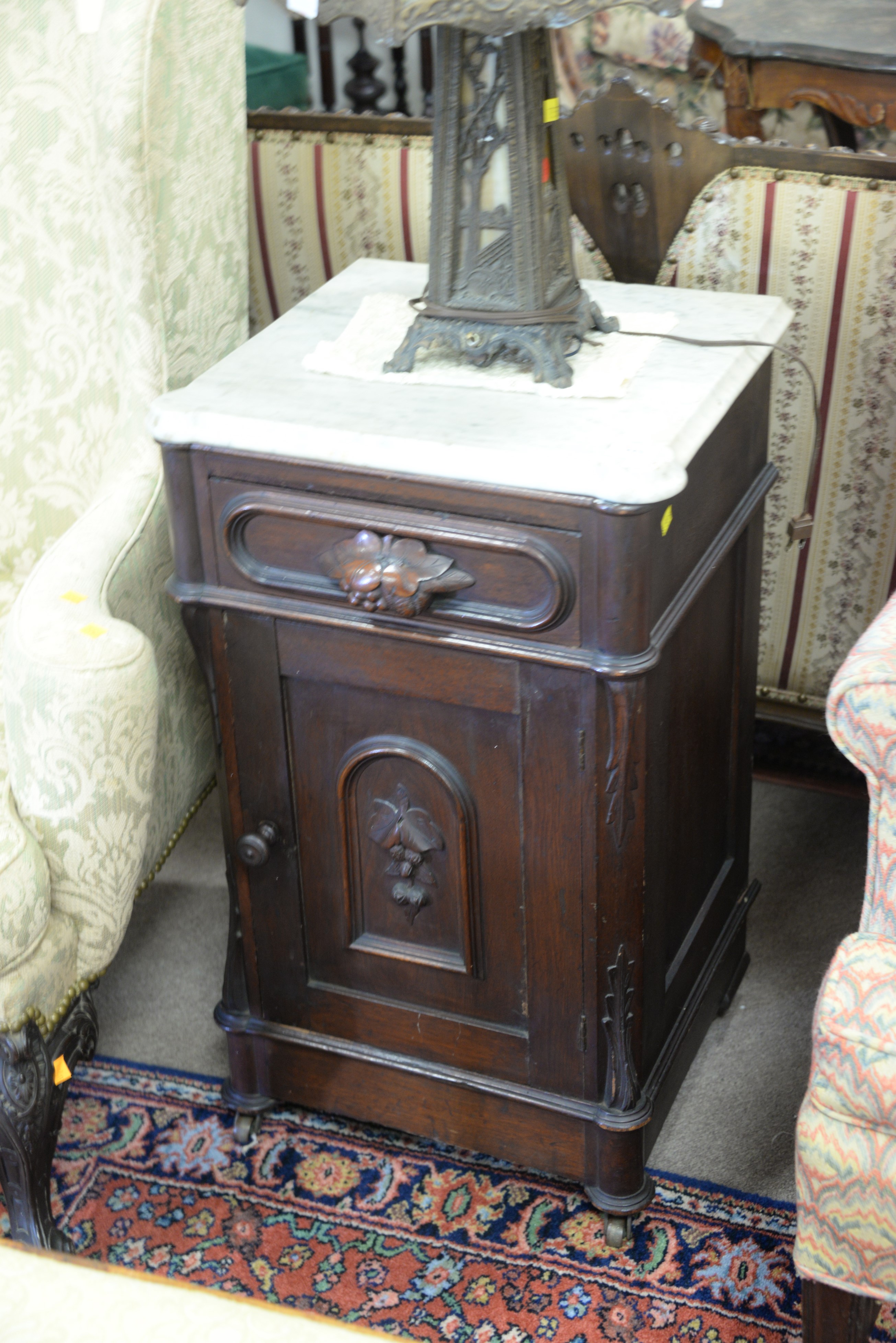 Victorian walnut marble top half commode. ht. 31 in. top: 17 x 17 1/2.