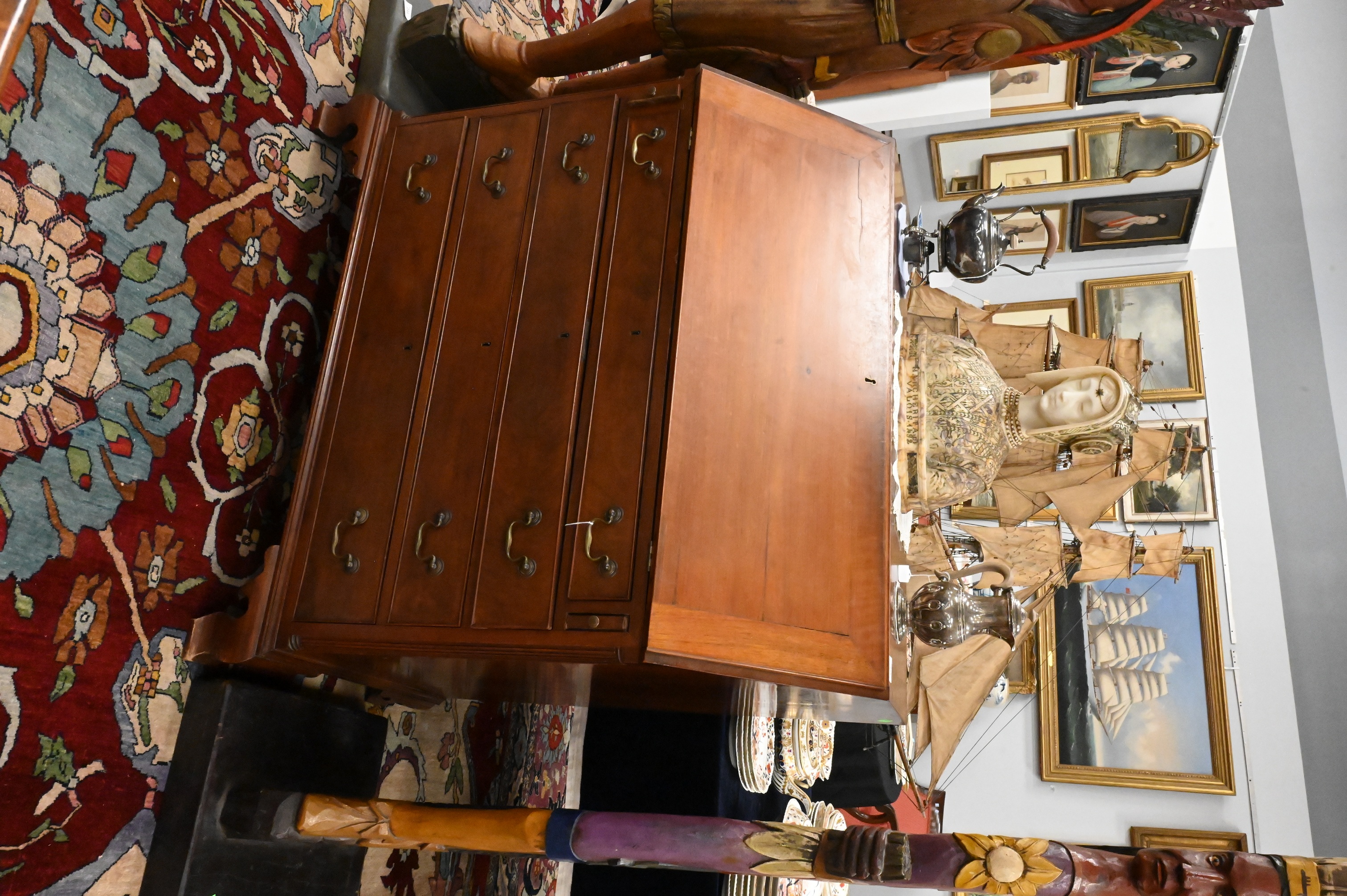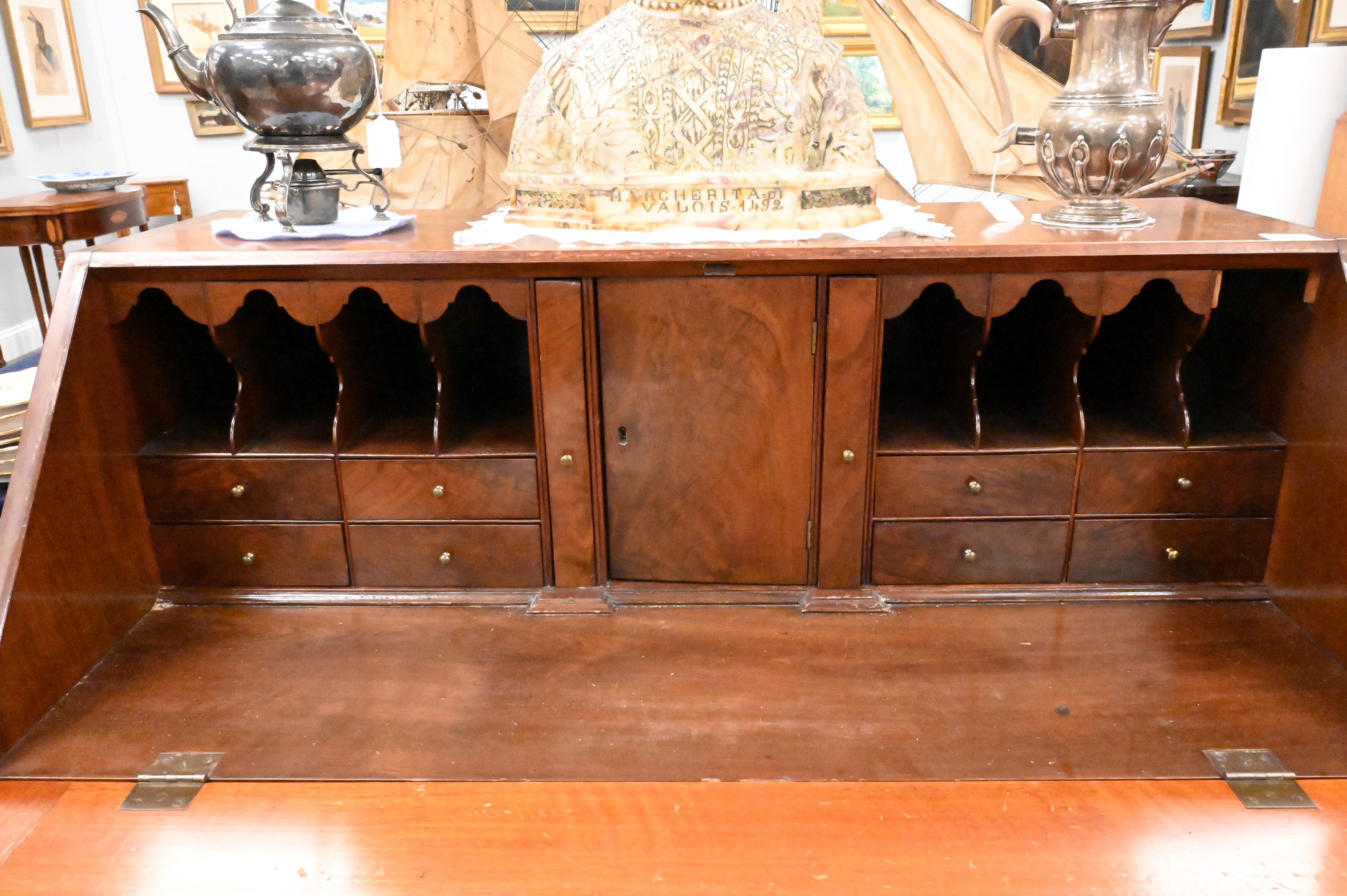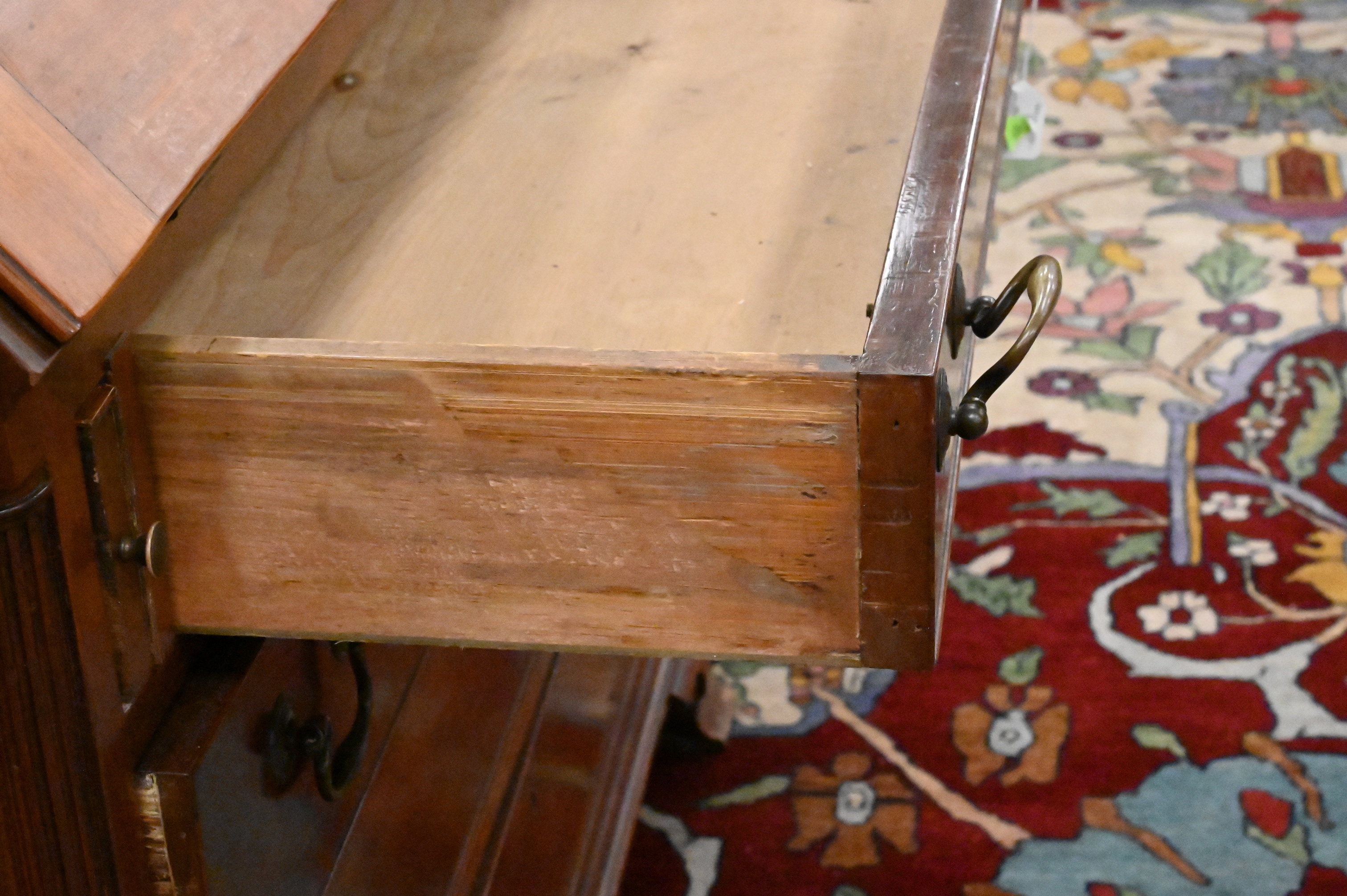 with drop front and fluted quarter columns on ogee feet
