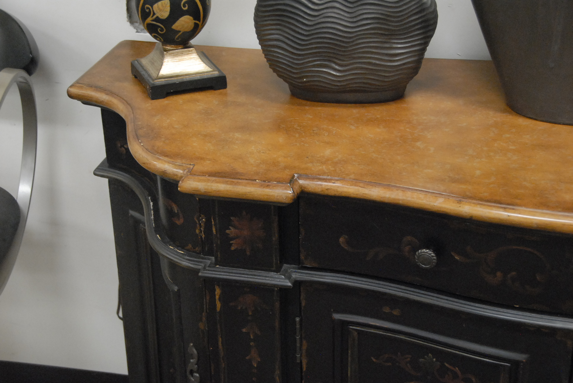 Broyhill black stenciled server, lg. 5’6, dp. 21.