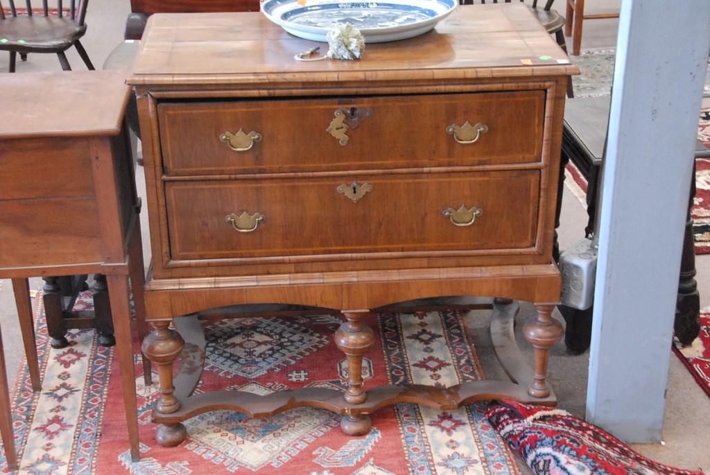 George II two drawer chest on stand, ht. 33in. top: 25 x 35.