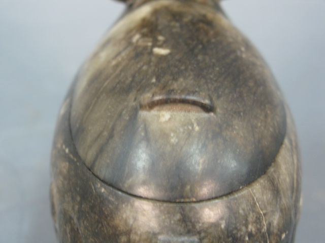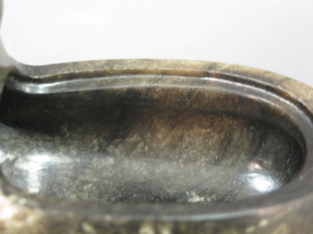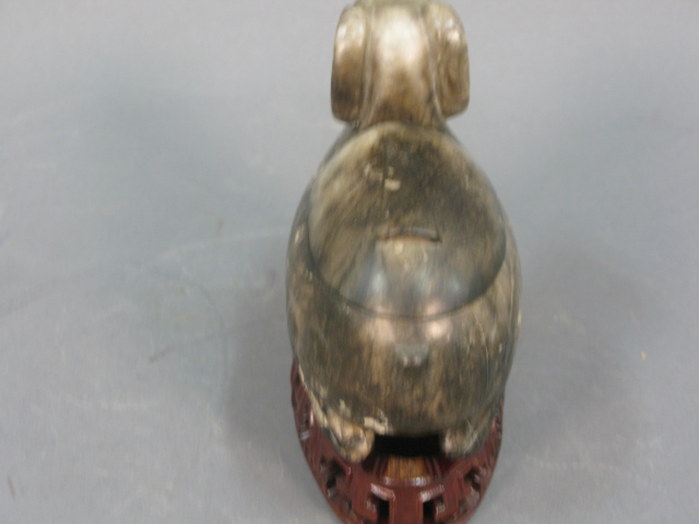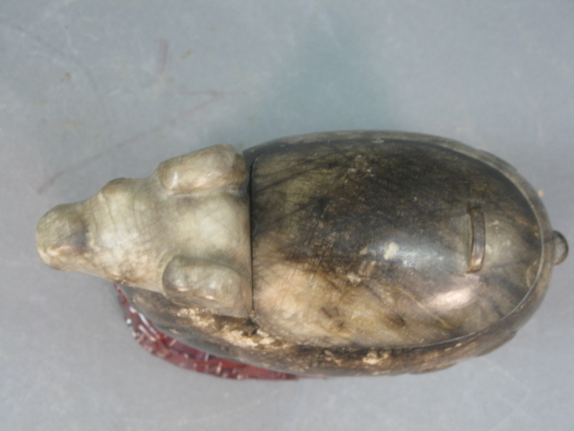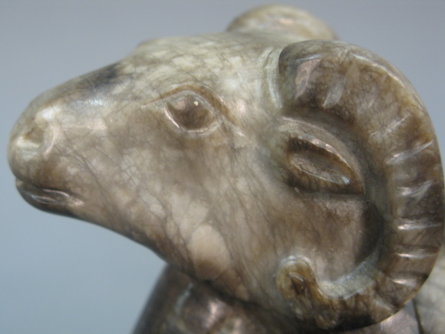 Grey to black jade goat box, in sitting position with head up, back lifts to reveal a compartment.