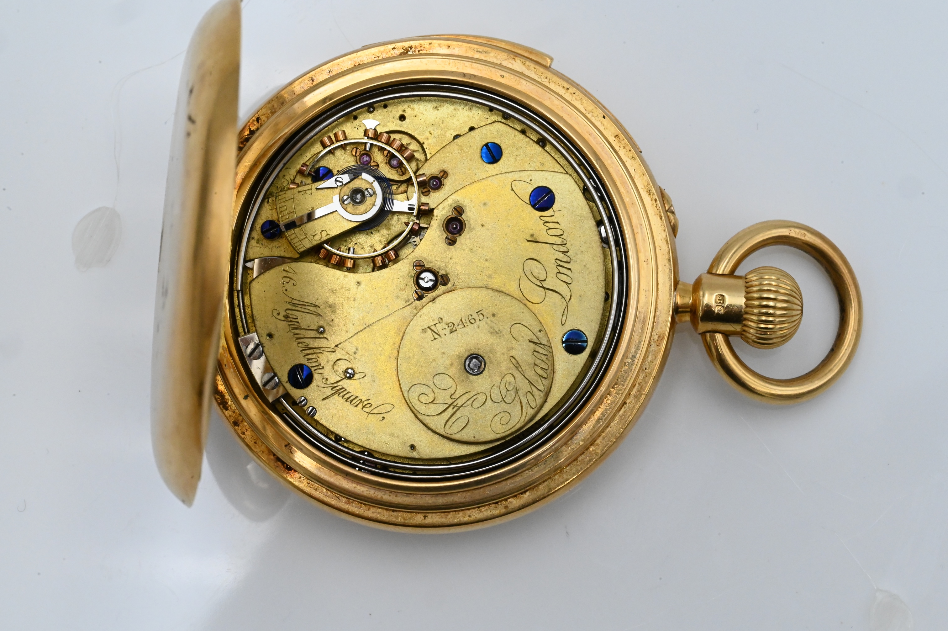 repeater non-functioning, movement number 2465, signed H Golay London, (case monogrammed)