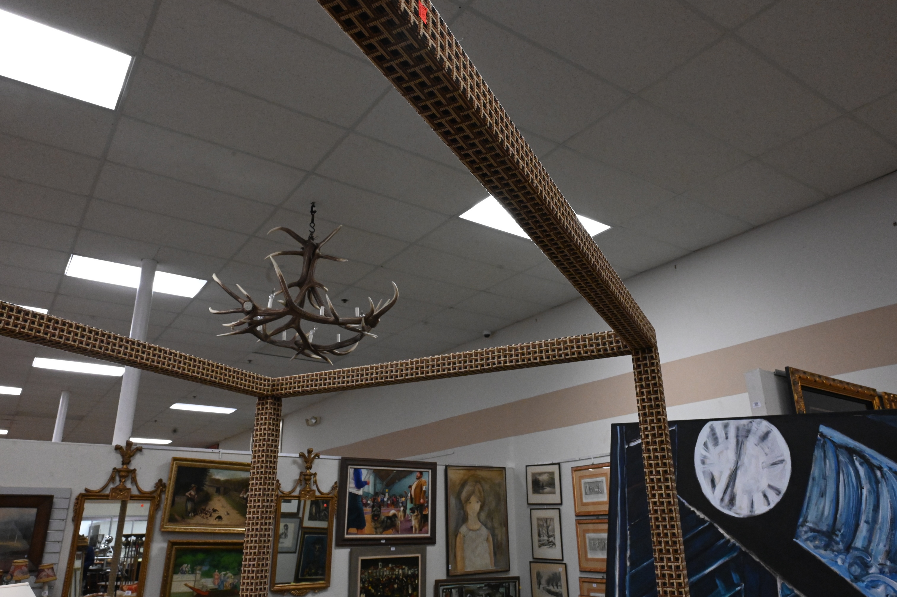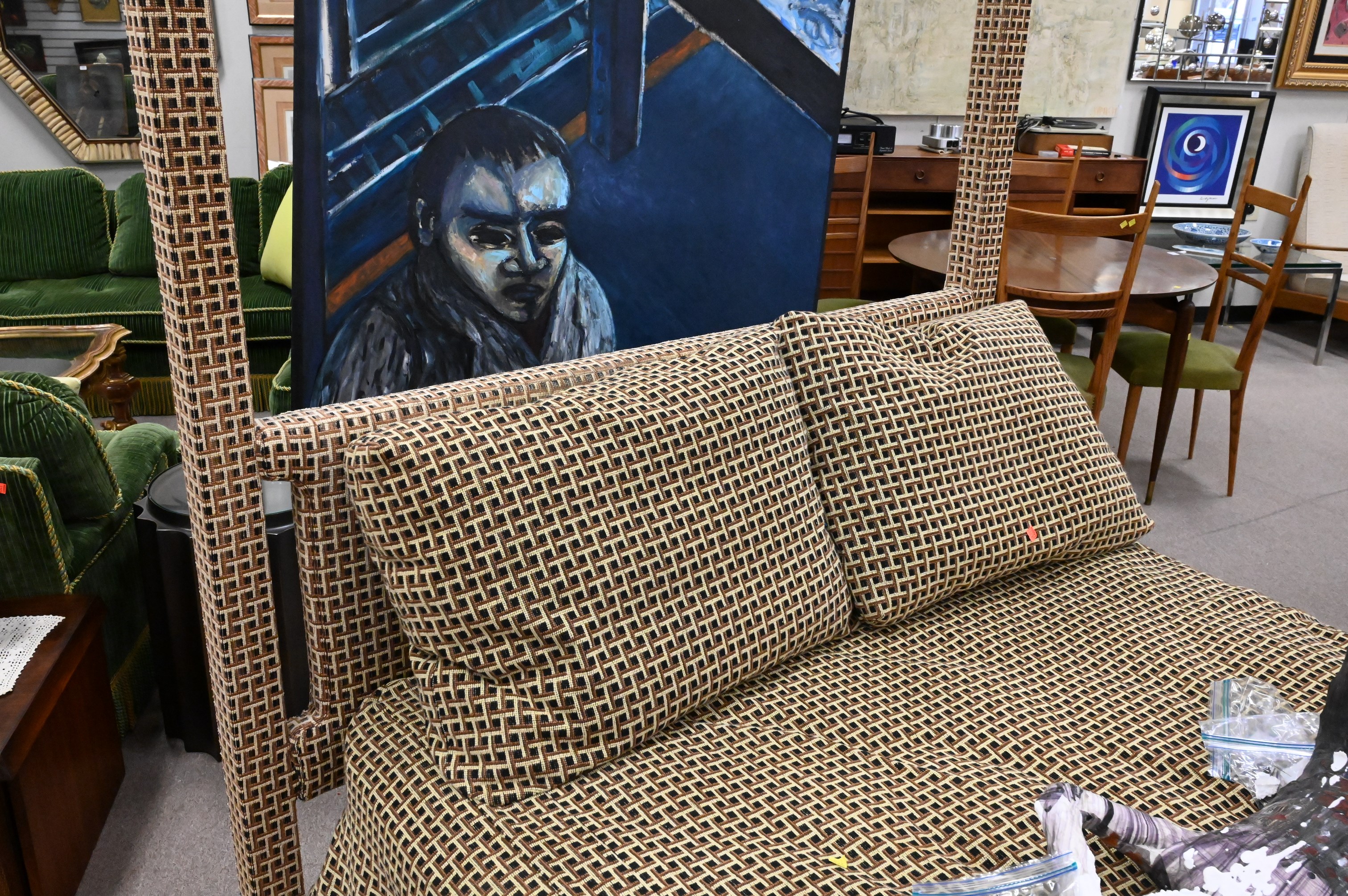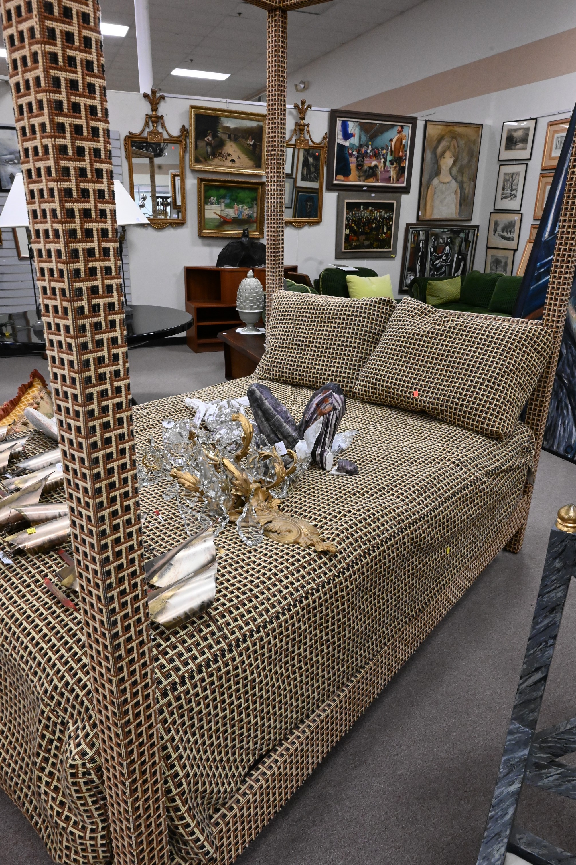 Milo Baughman Style Canopy Bed, full size, height 90 1/2 inches, width 57 1/2 inches.