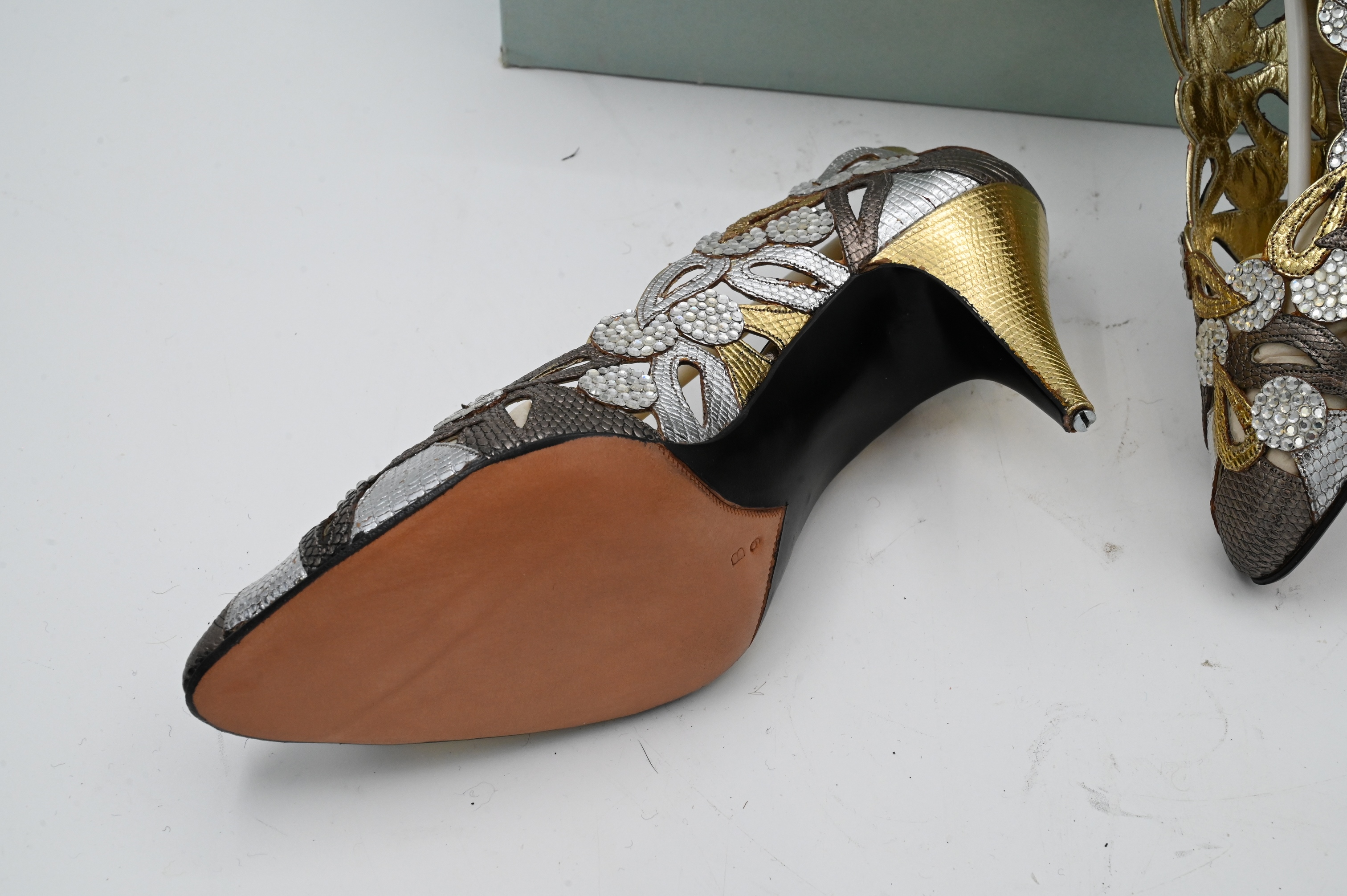 “Dazzle” in gold and silver, pimbo, lizzard, size 9