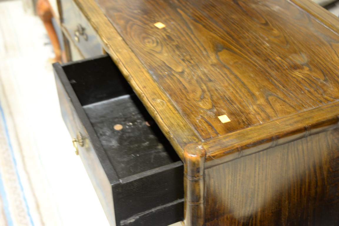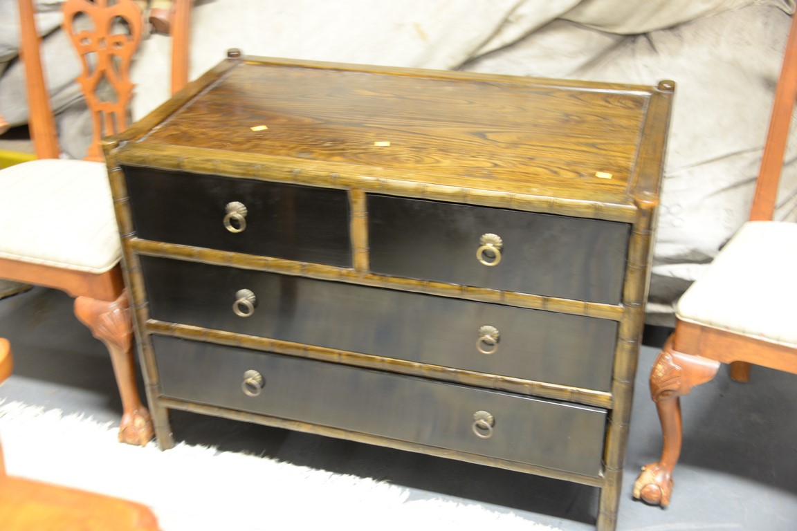 Pair of Japanese bombay style chests with hardwood tops. ht. 29 in. wd. 39 in.