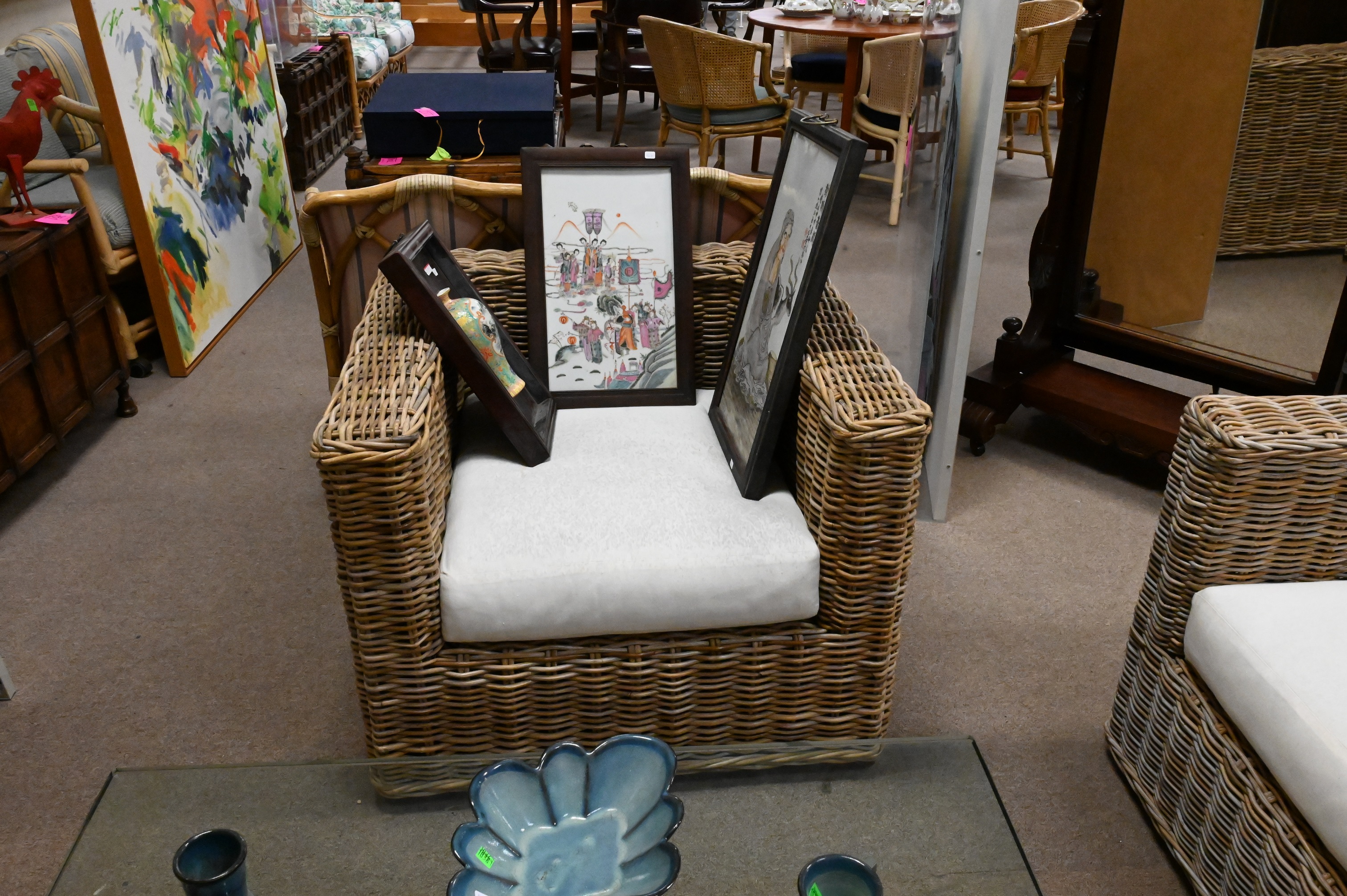 Lot 45: Set of Four Outdoor Wicker Armchairs
