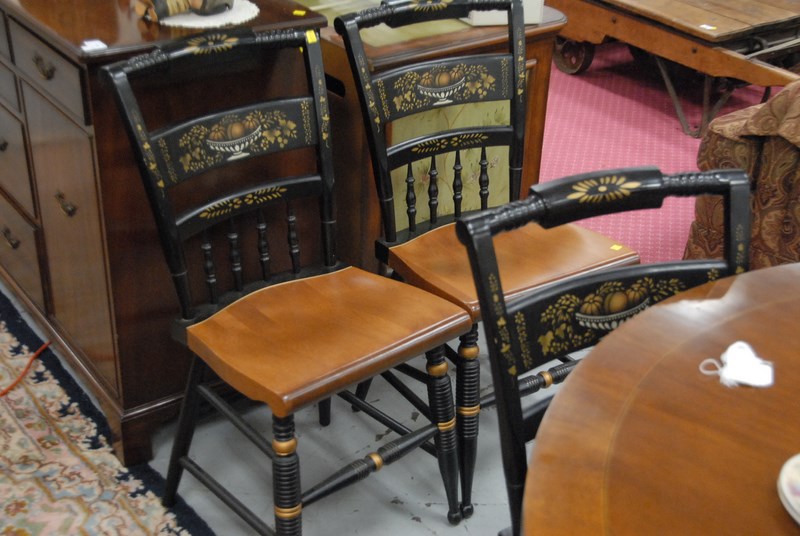 Set of six Nichols & Stone stenciled chairs, two arm and four side.
