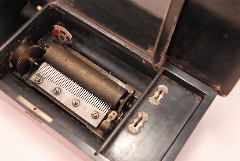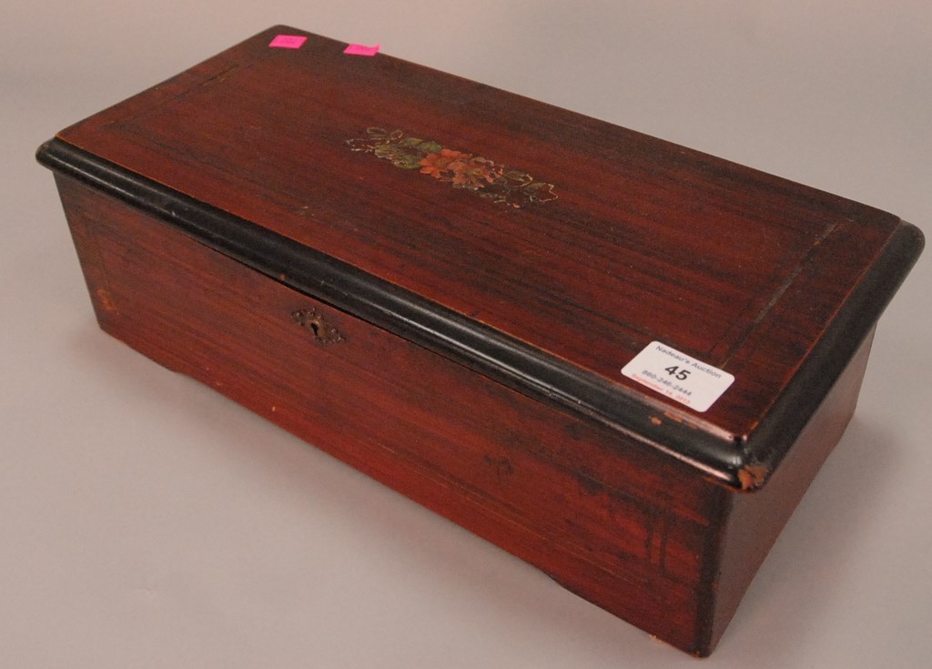 Swiss cylinder music box, lg. 18in. ht. 5 1/2in.