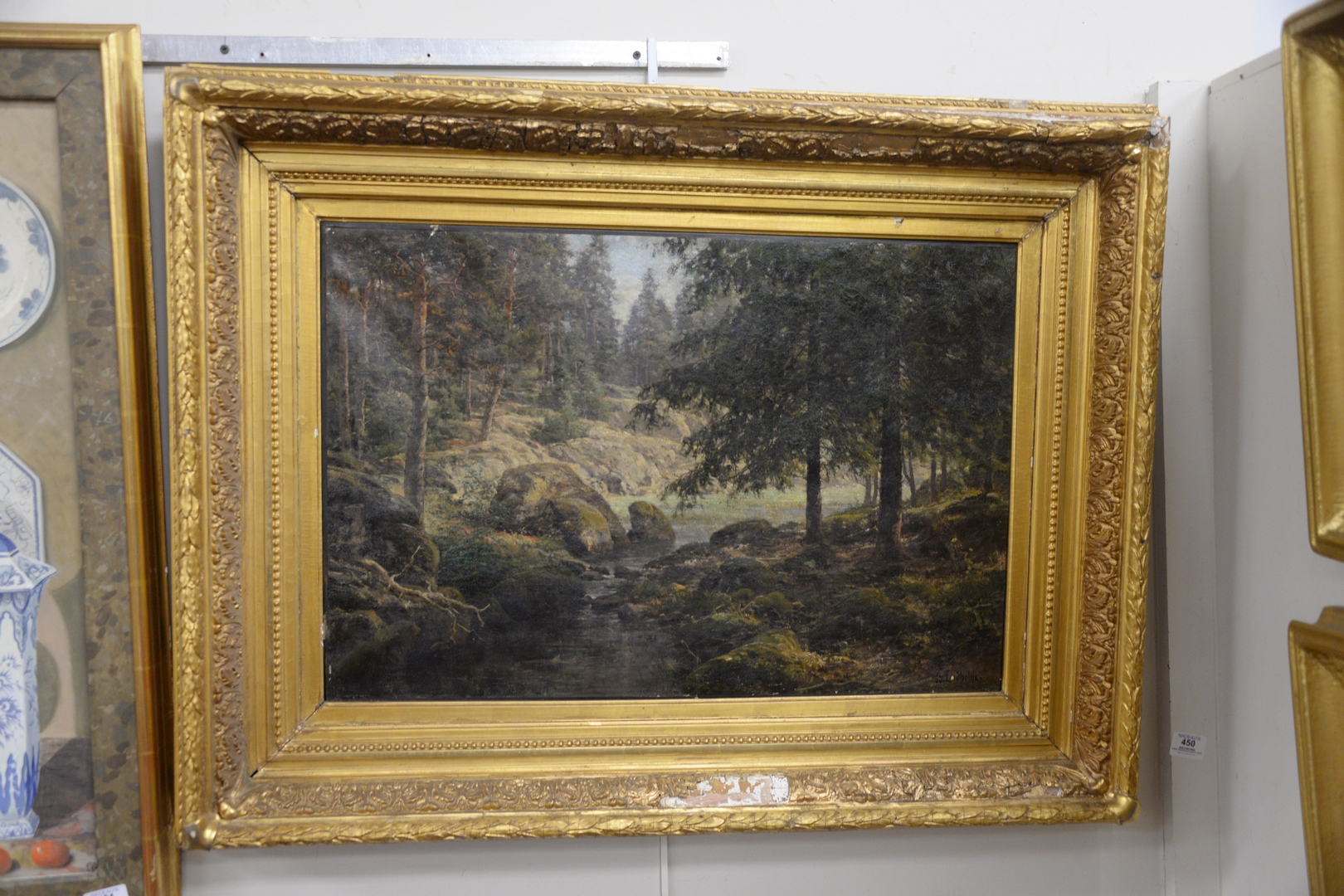 Lot 450: Berndt Adolf Lindholm French/Swedish 1841 – 1914, River running through a rocky landscape, oil on canvas, signed lower right B.Lindholm 18 1/4 x 27.
