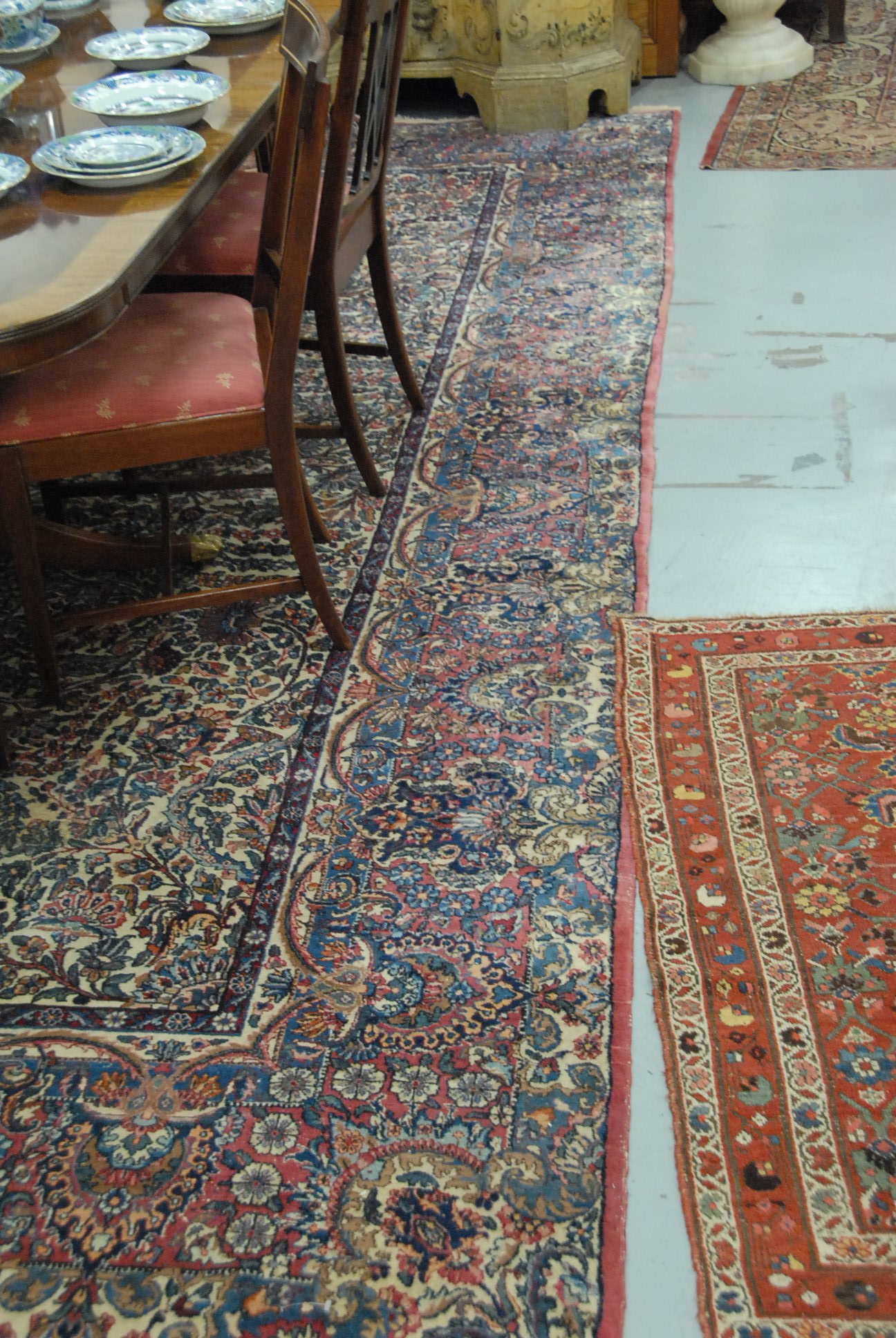 Kirman Oriental carpet wear. 9’9 x 14’8