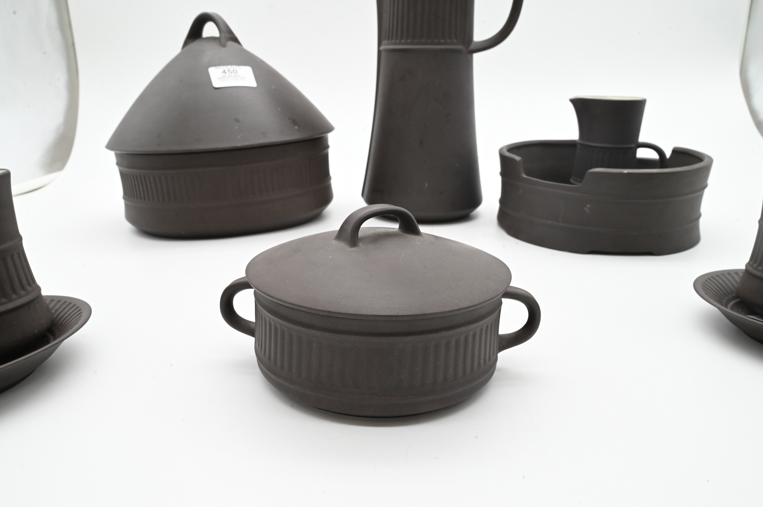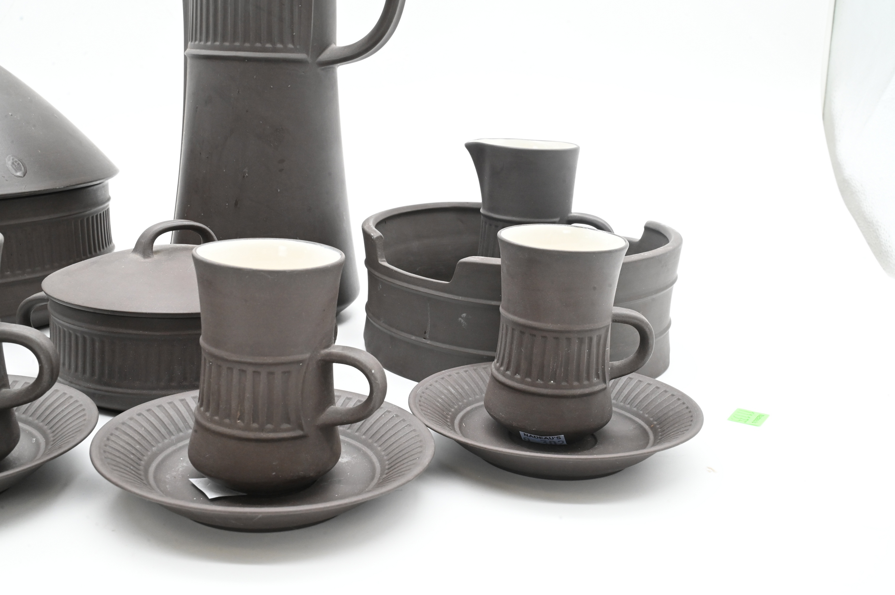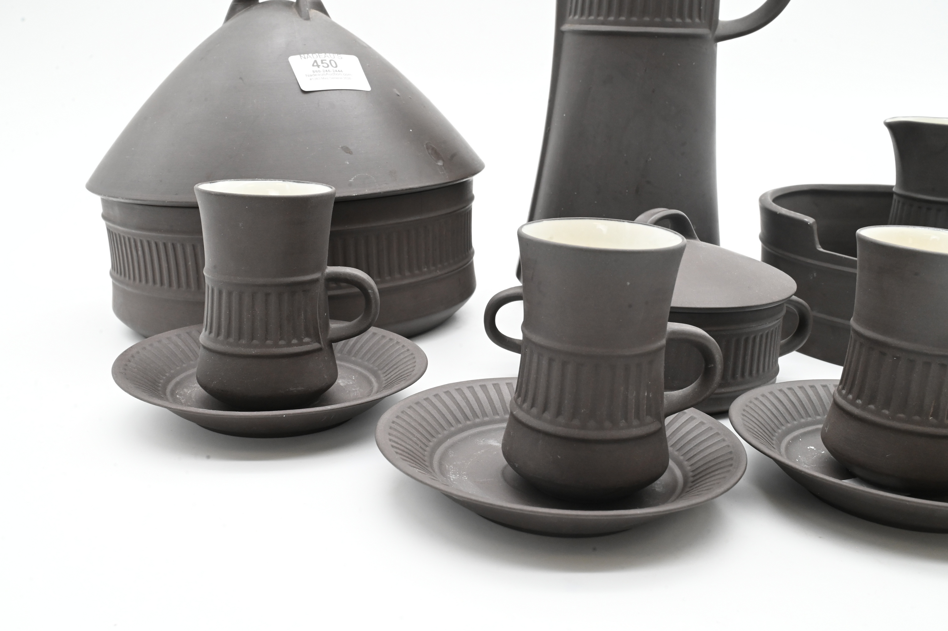 Lot 450: Twelve Piece Jens Quistgaard (Danish 1919-2008) “Flamestone” Coffee Service and Serving Dish for Dansk