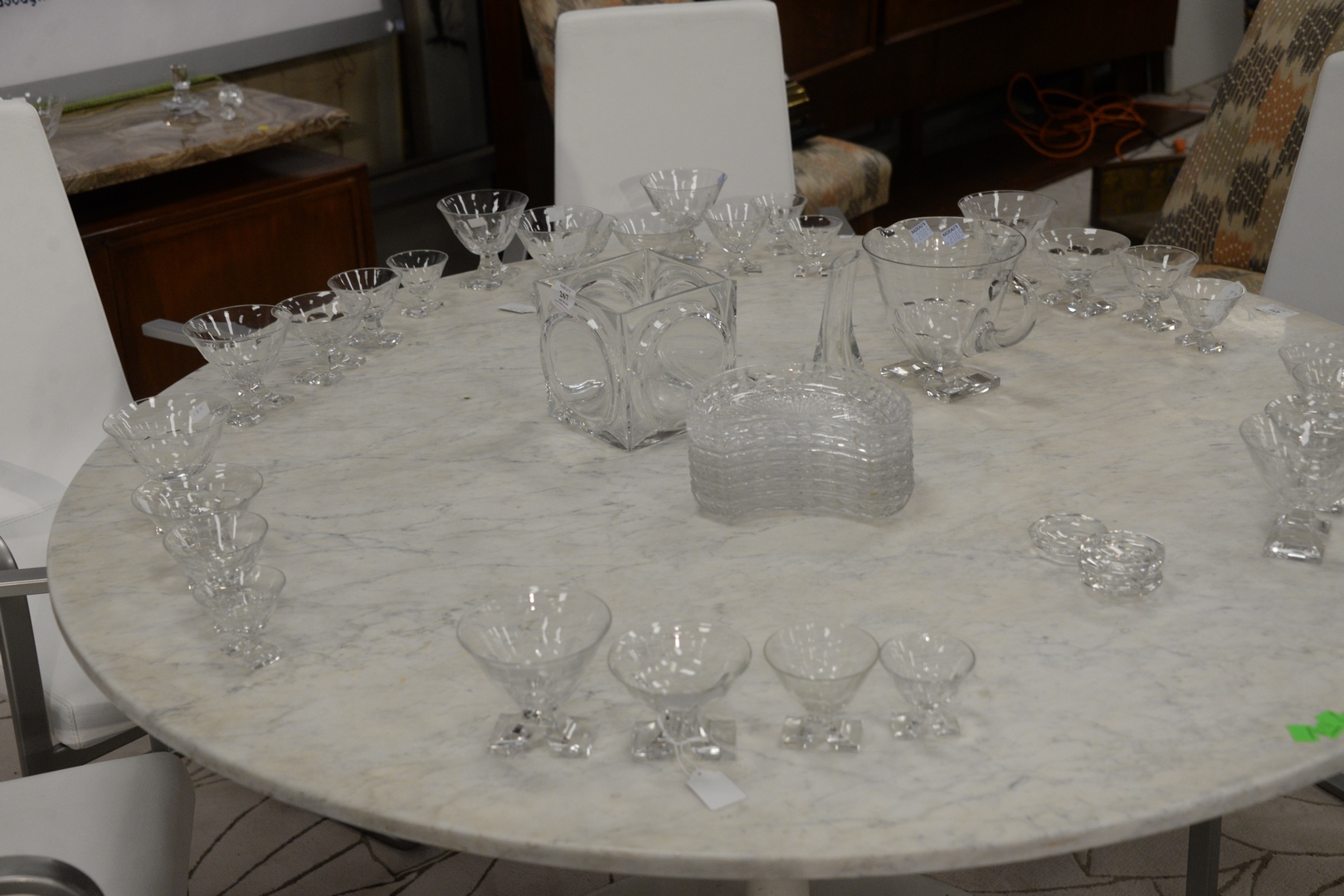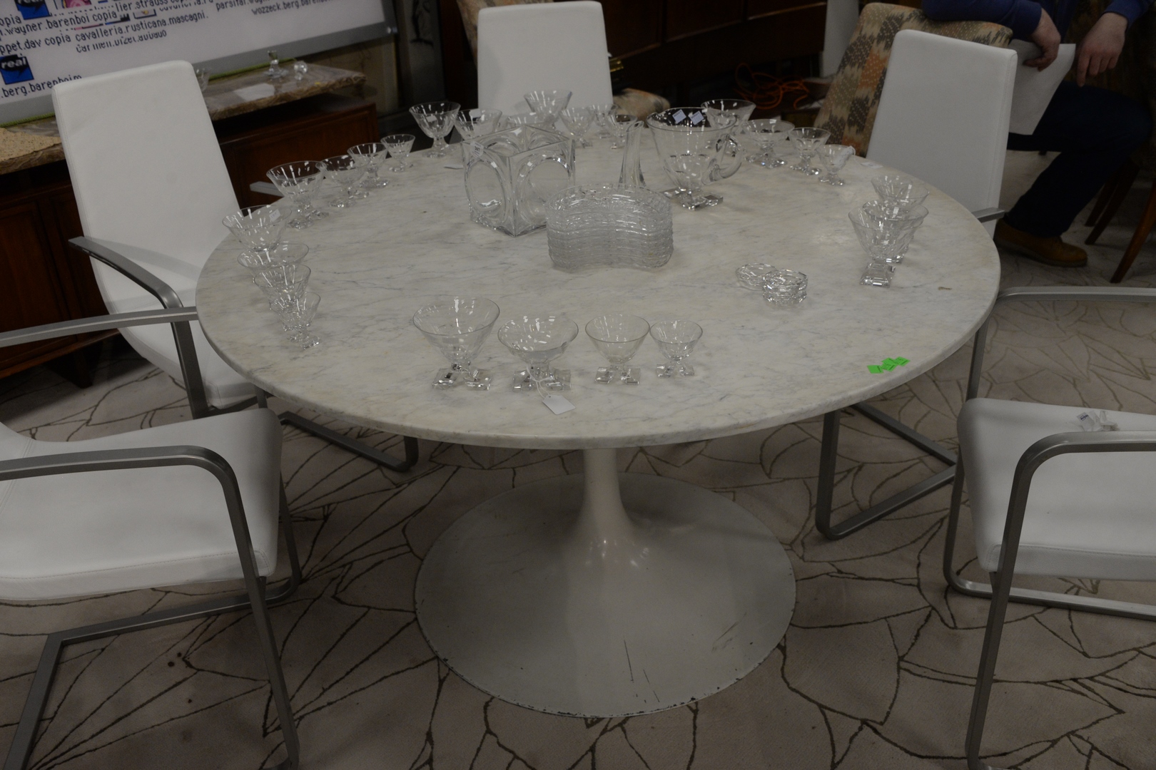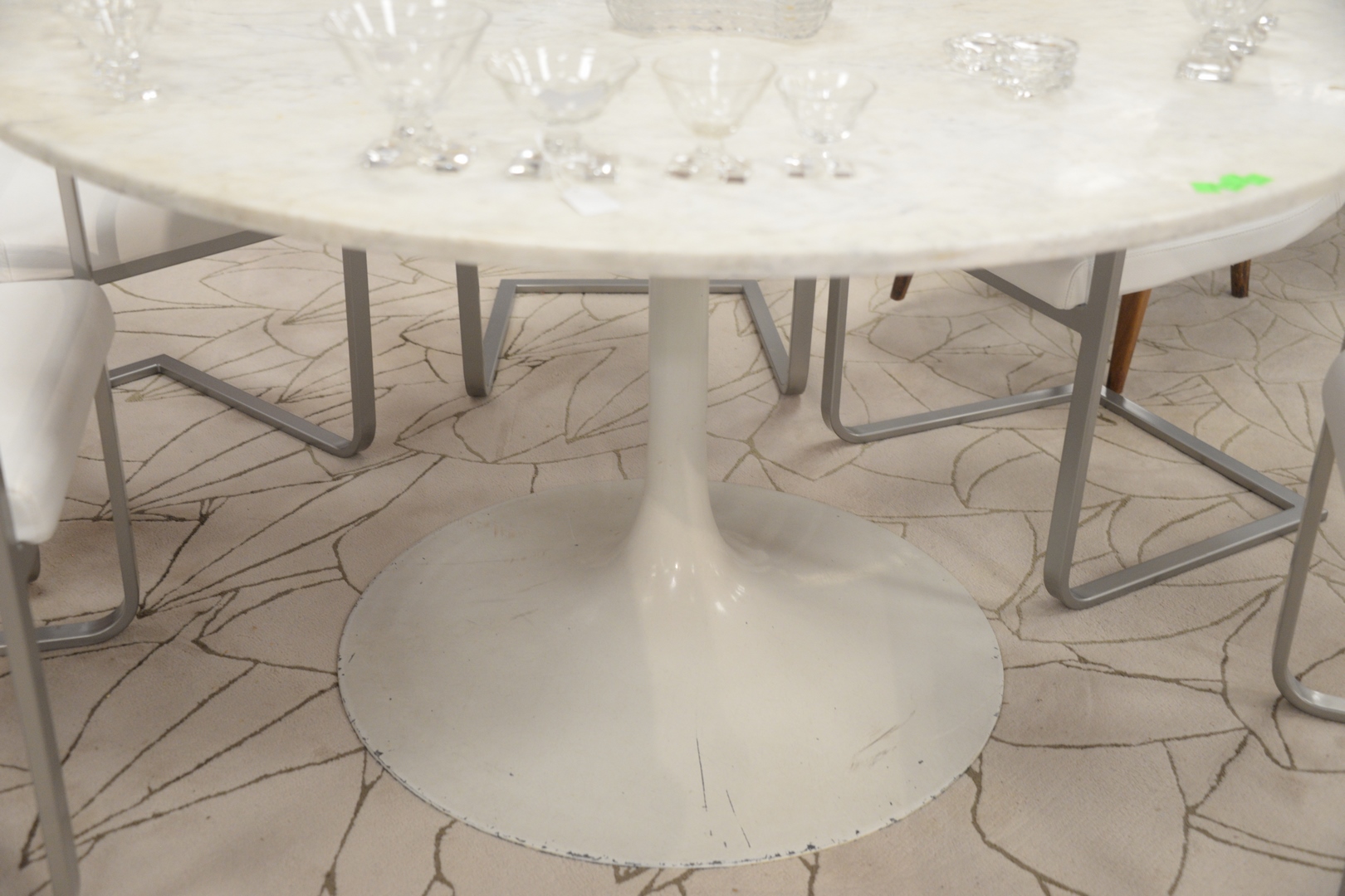 Knoll Style Tulip Table, with round marble top, height 29 inches, diameter 52 inches.