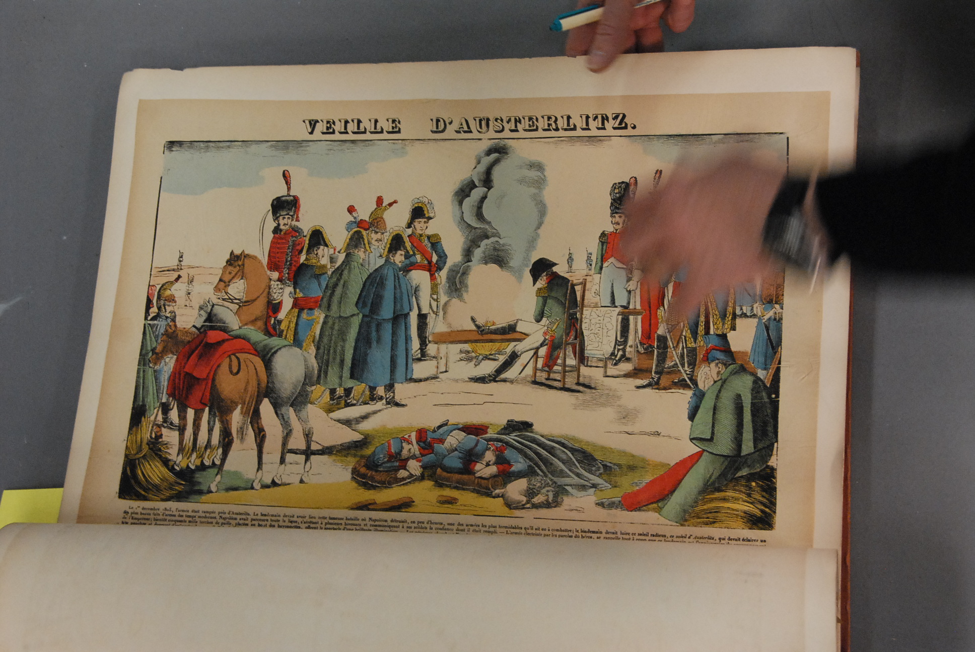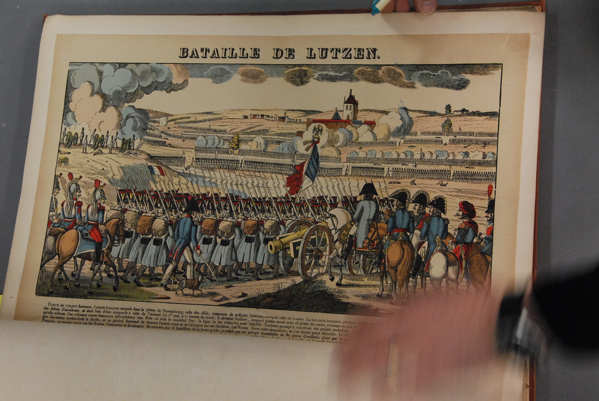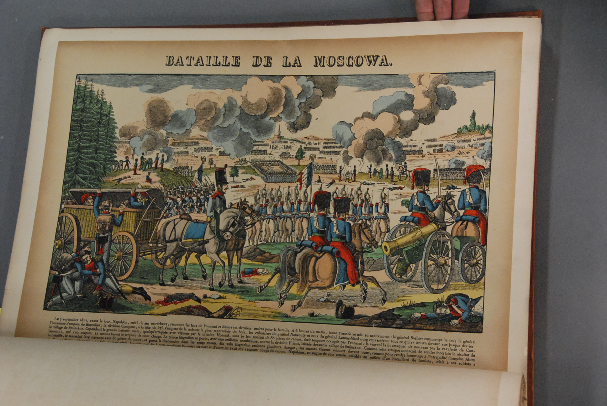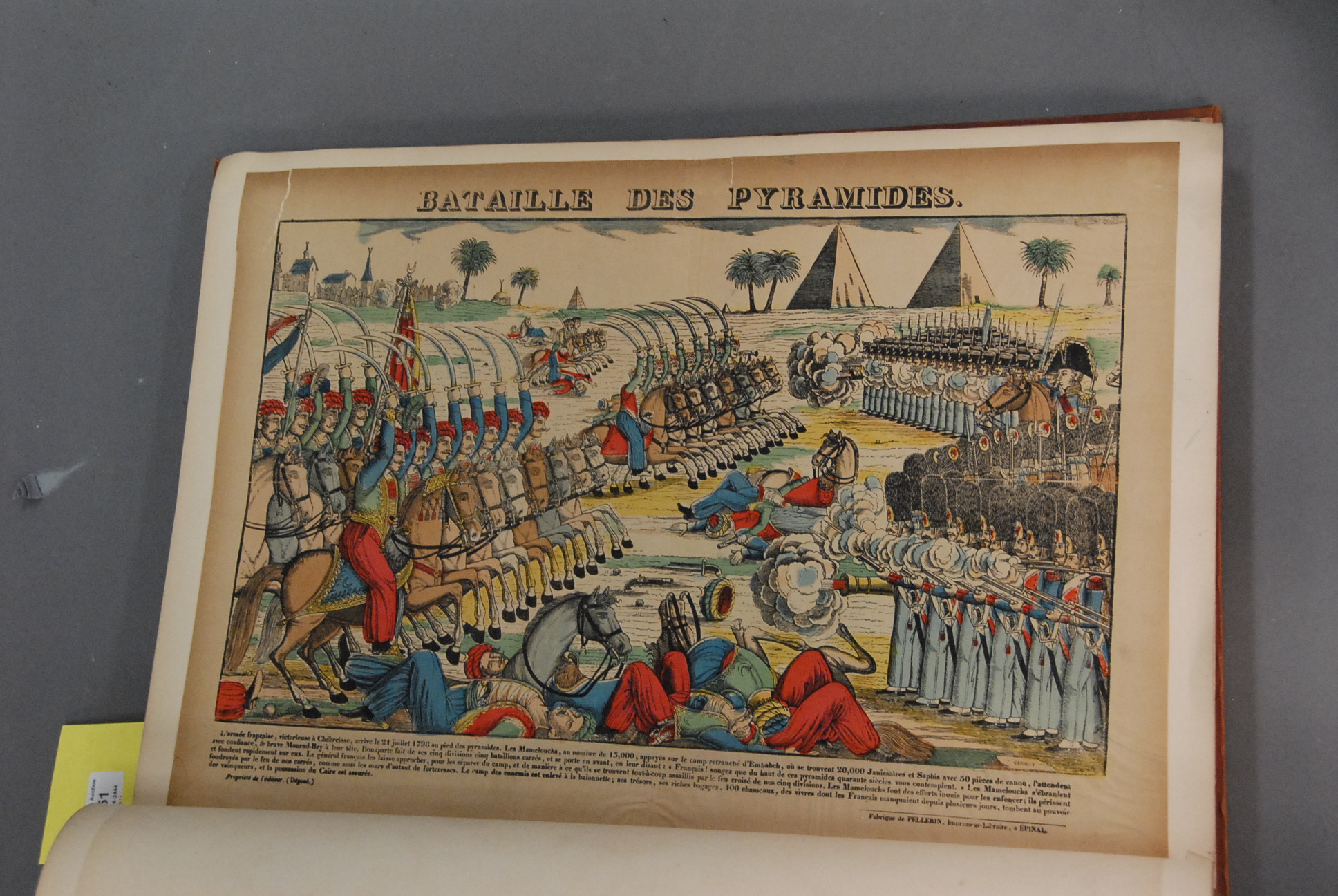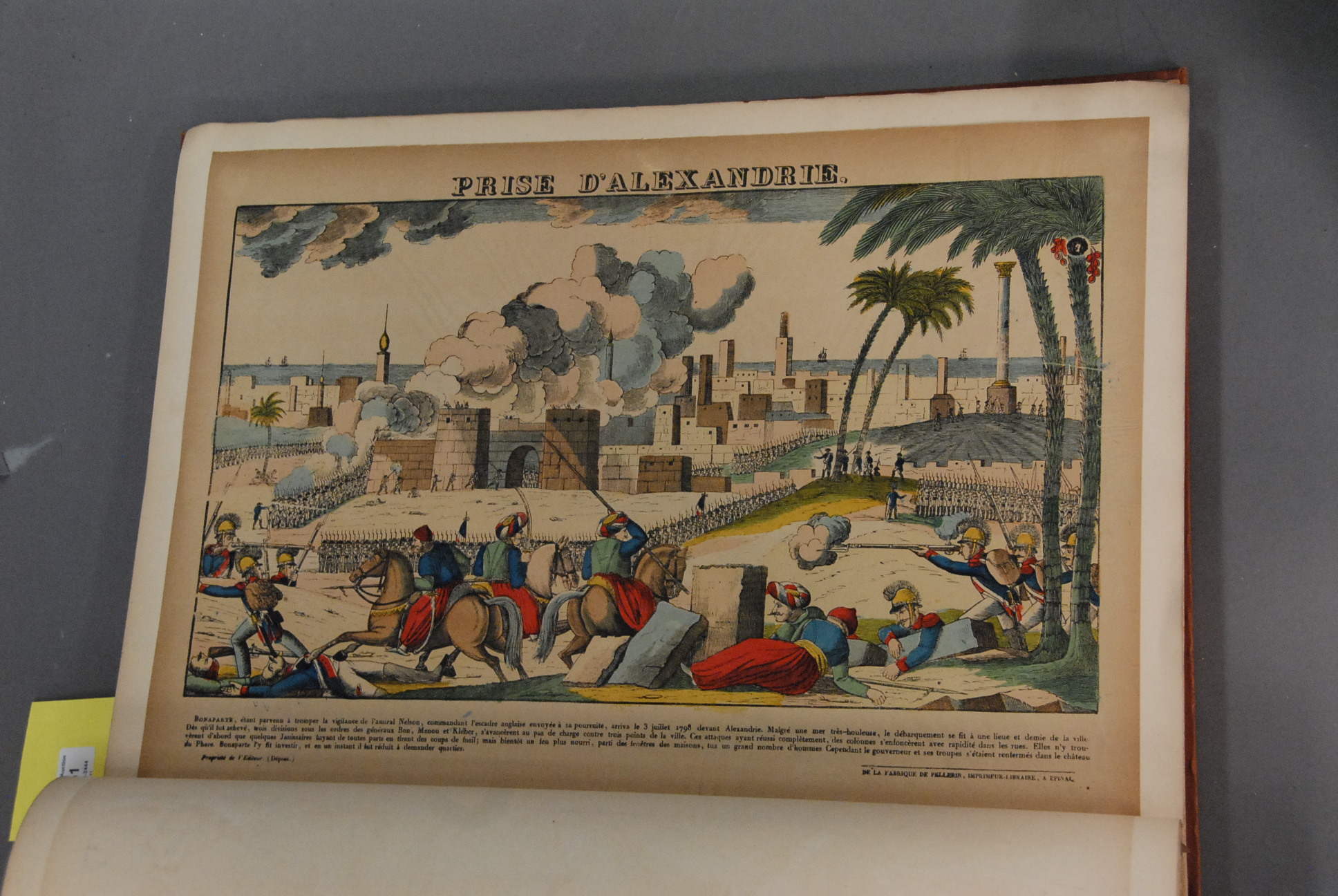 Large 95 page scrapbook of Napolean & French battles from the Middle east to France, all hand colored prints.