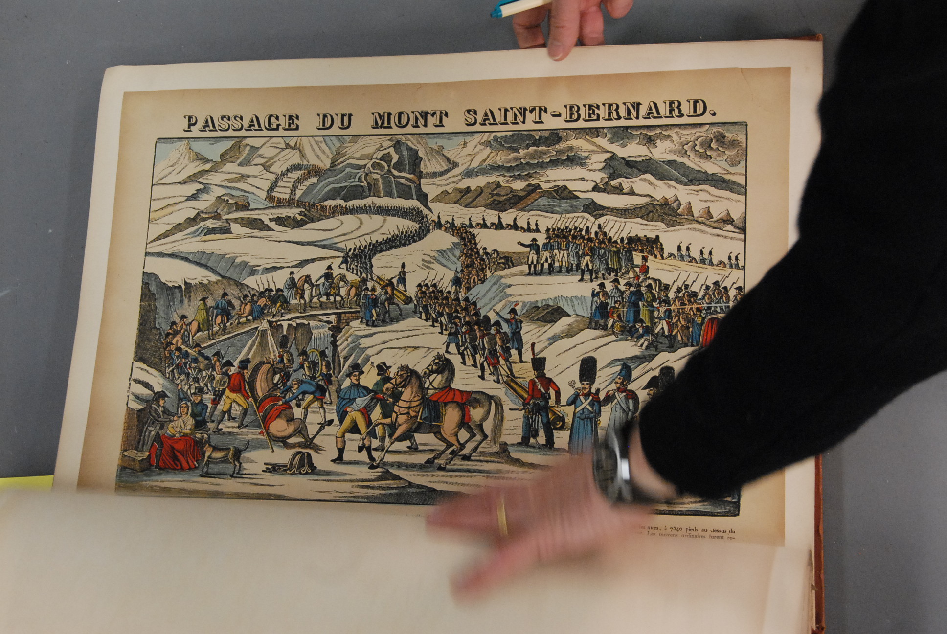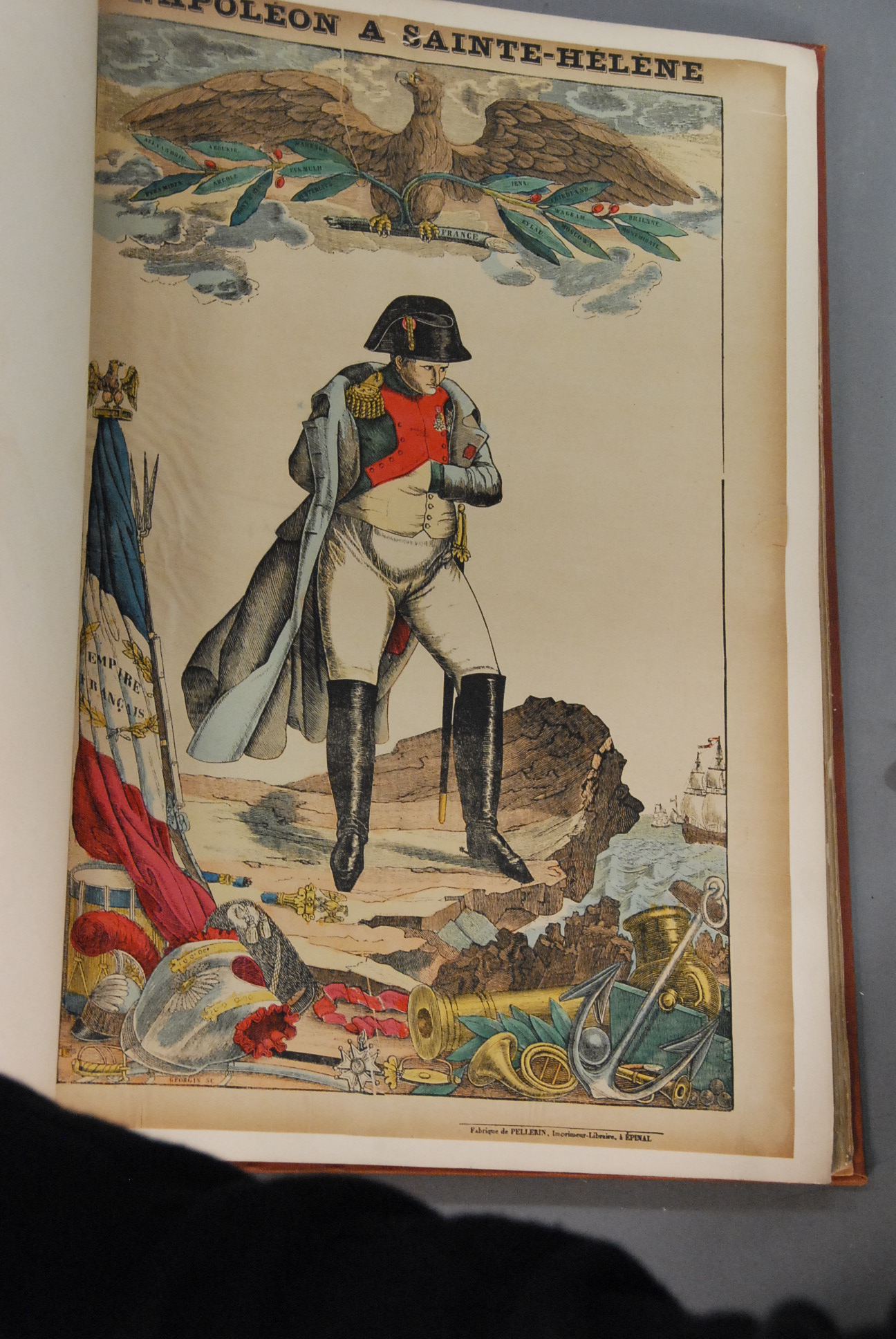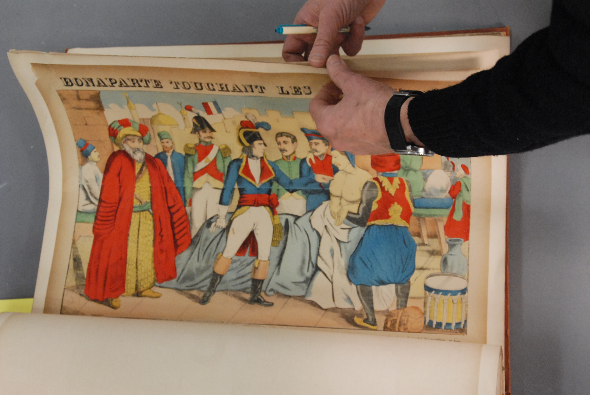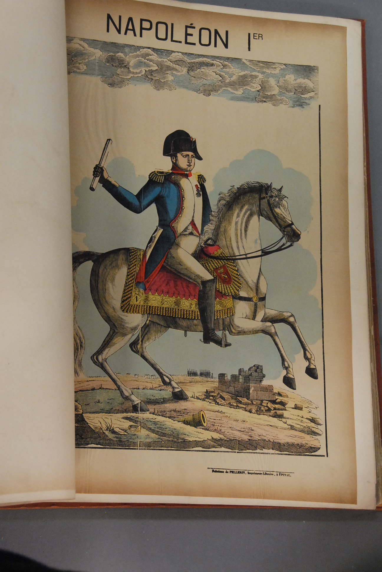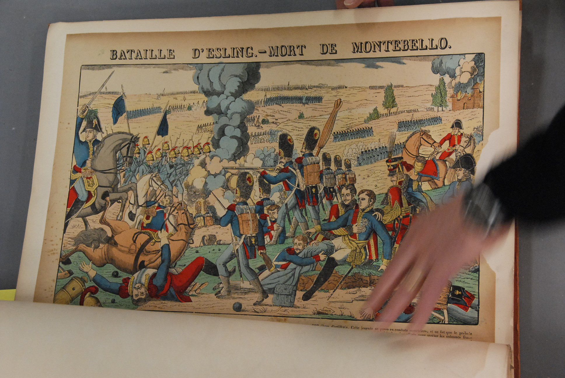 Large 95 page scrapbook of Napolean & French battles from the Middle east to France, all hand colored prints.