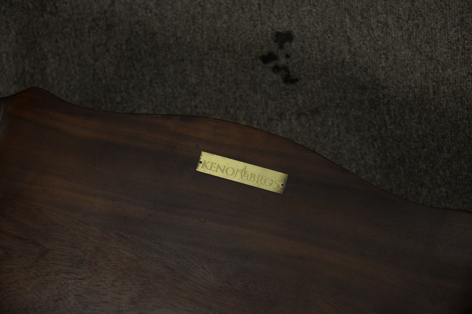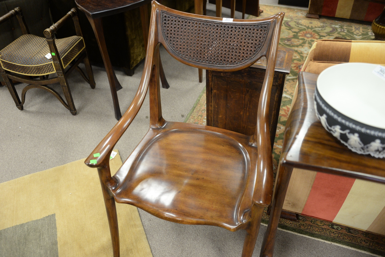 Lot 451: Pair of Keno Brothers for Stickley Slope Armchairs, having rush backs and brass tags to the underside, height 38 inches, seat height 17 1/2 inches.