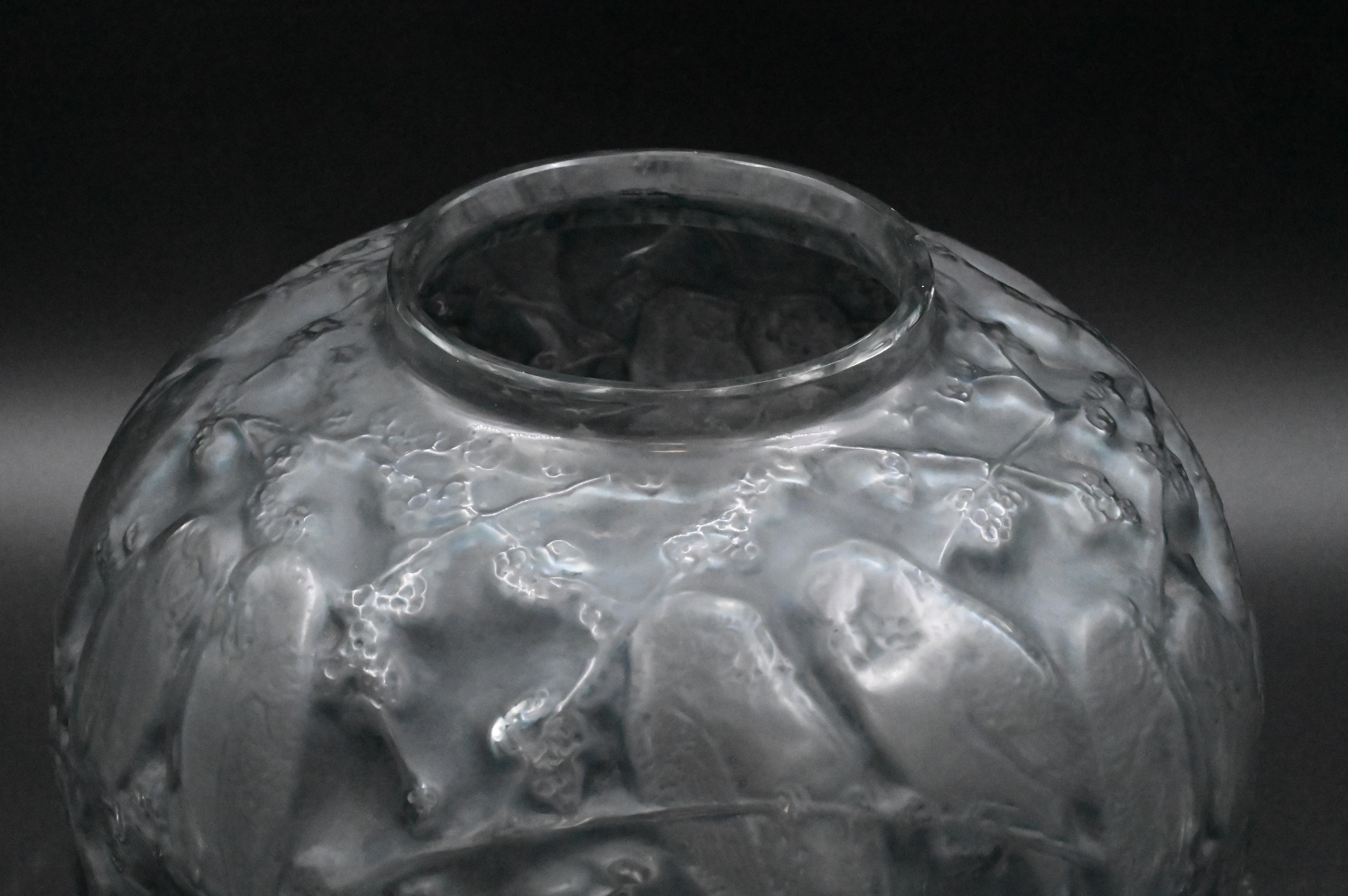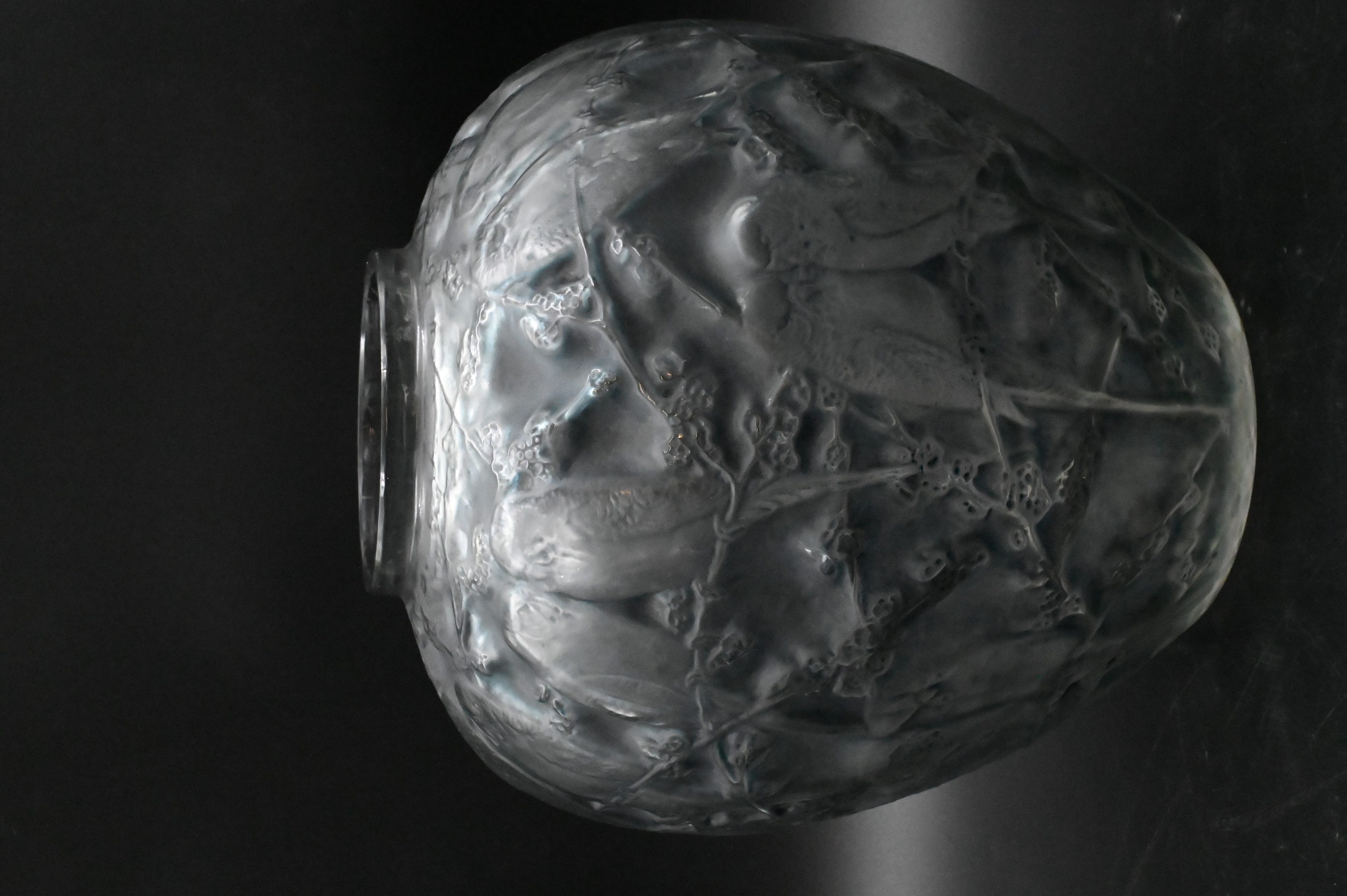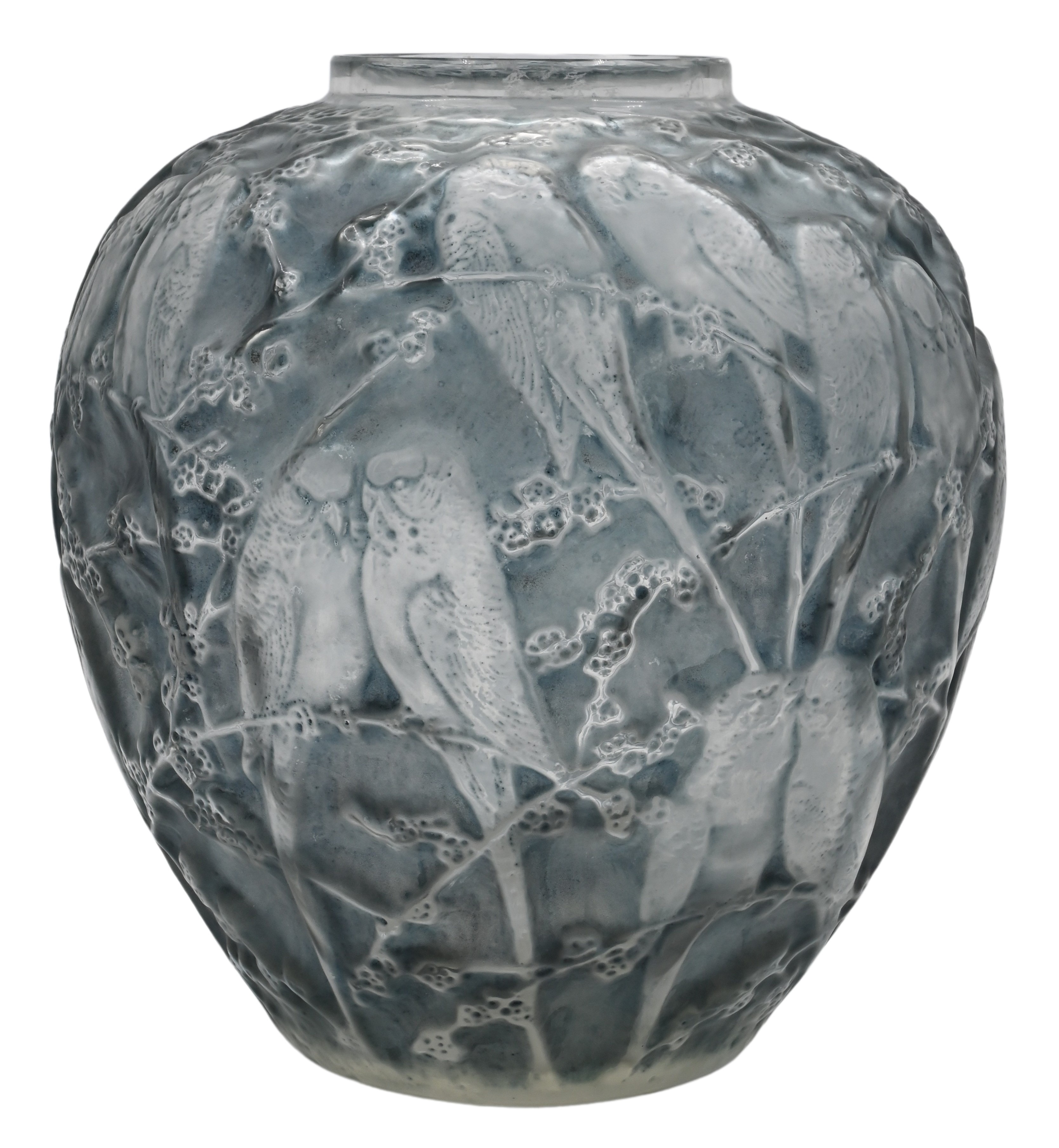 Lot 451: Rene Lalique “Perruches” Glass Vase Stained Blue
