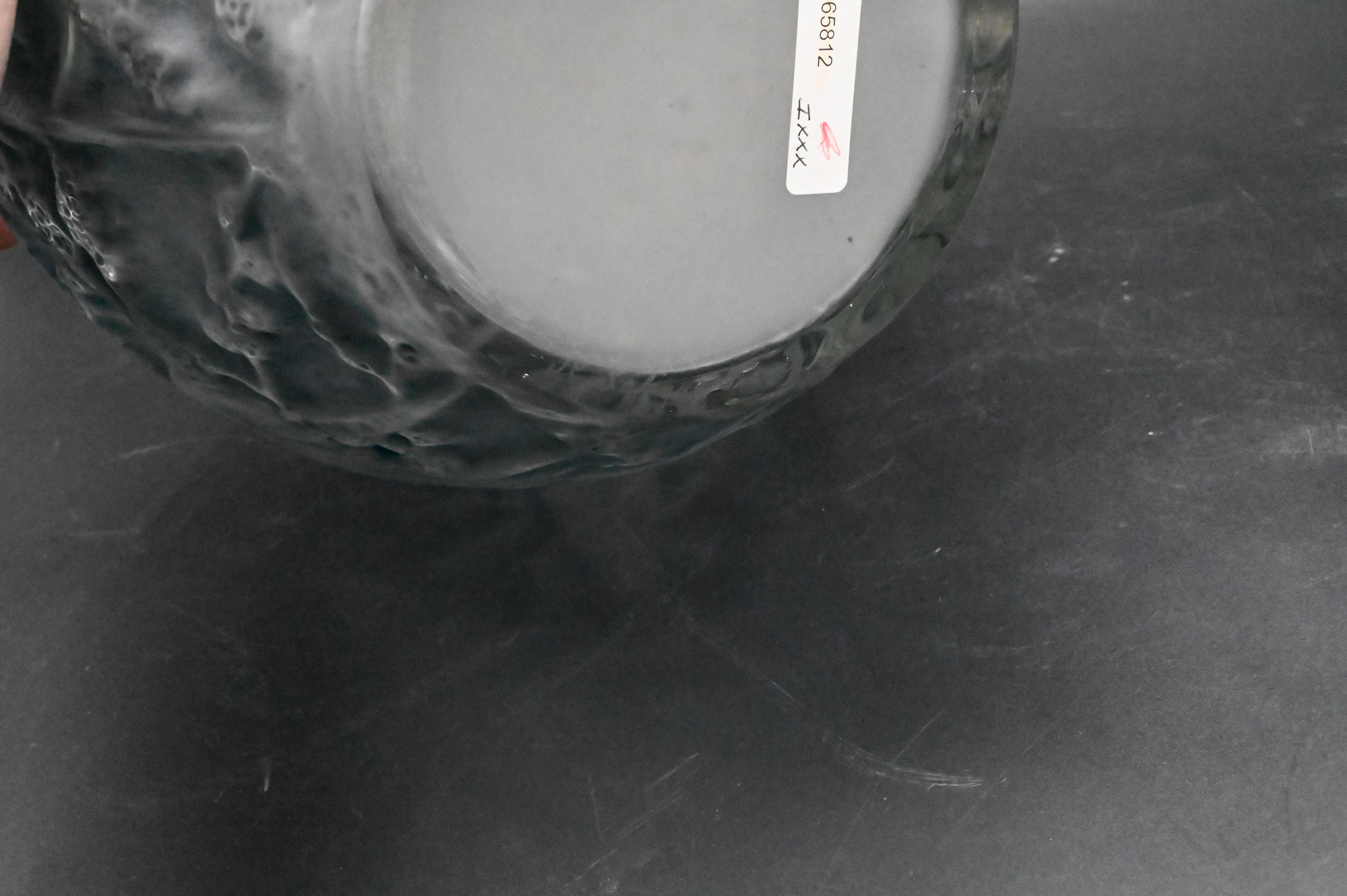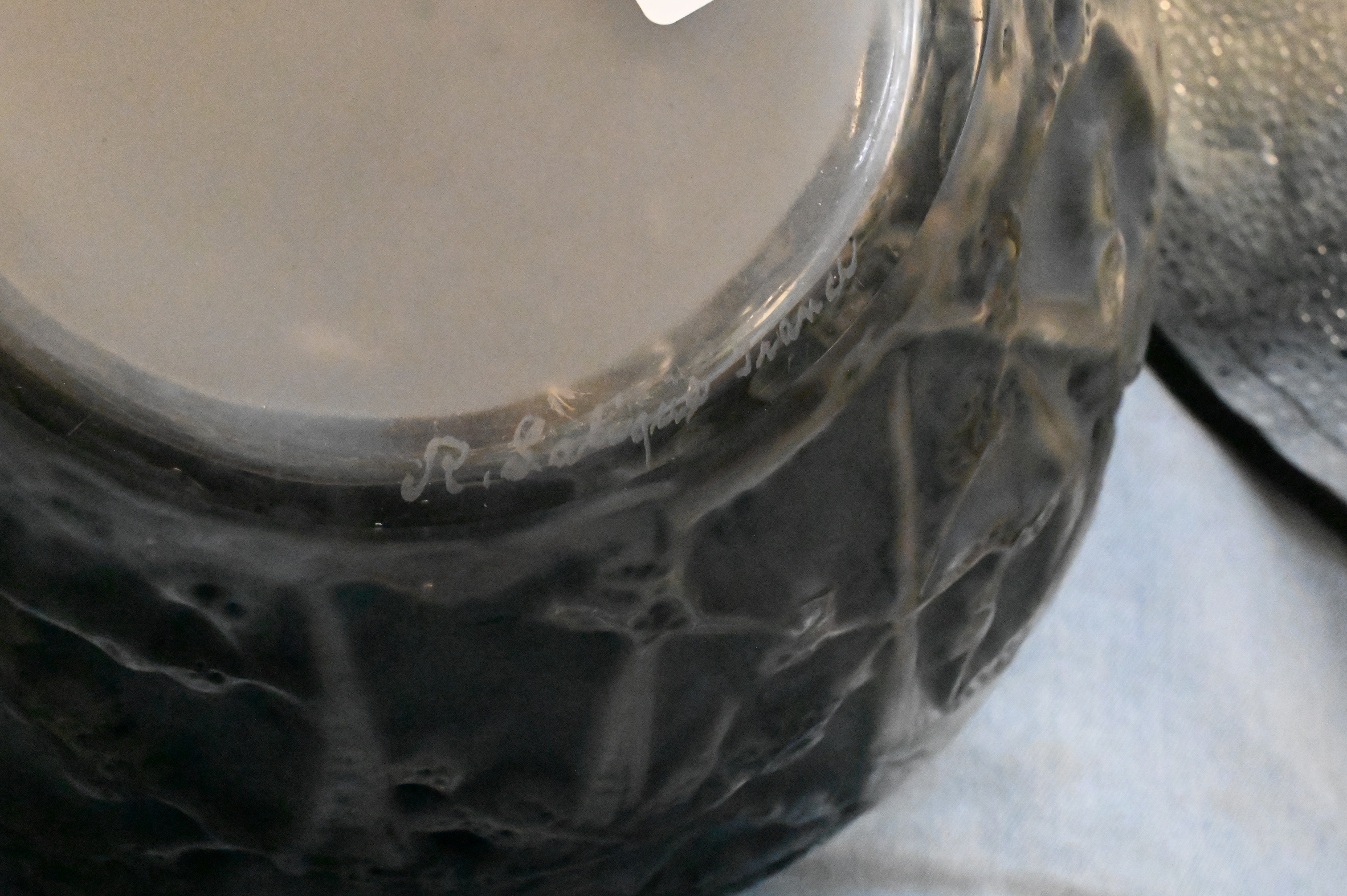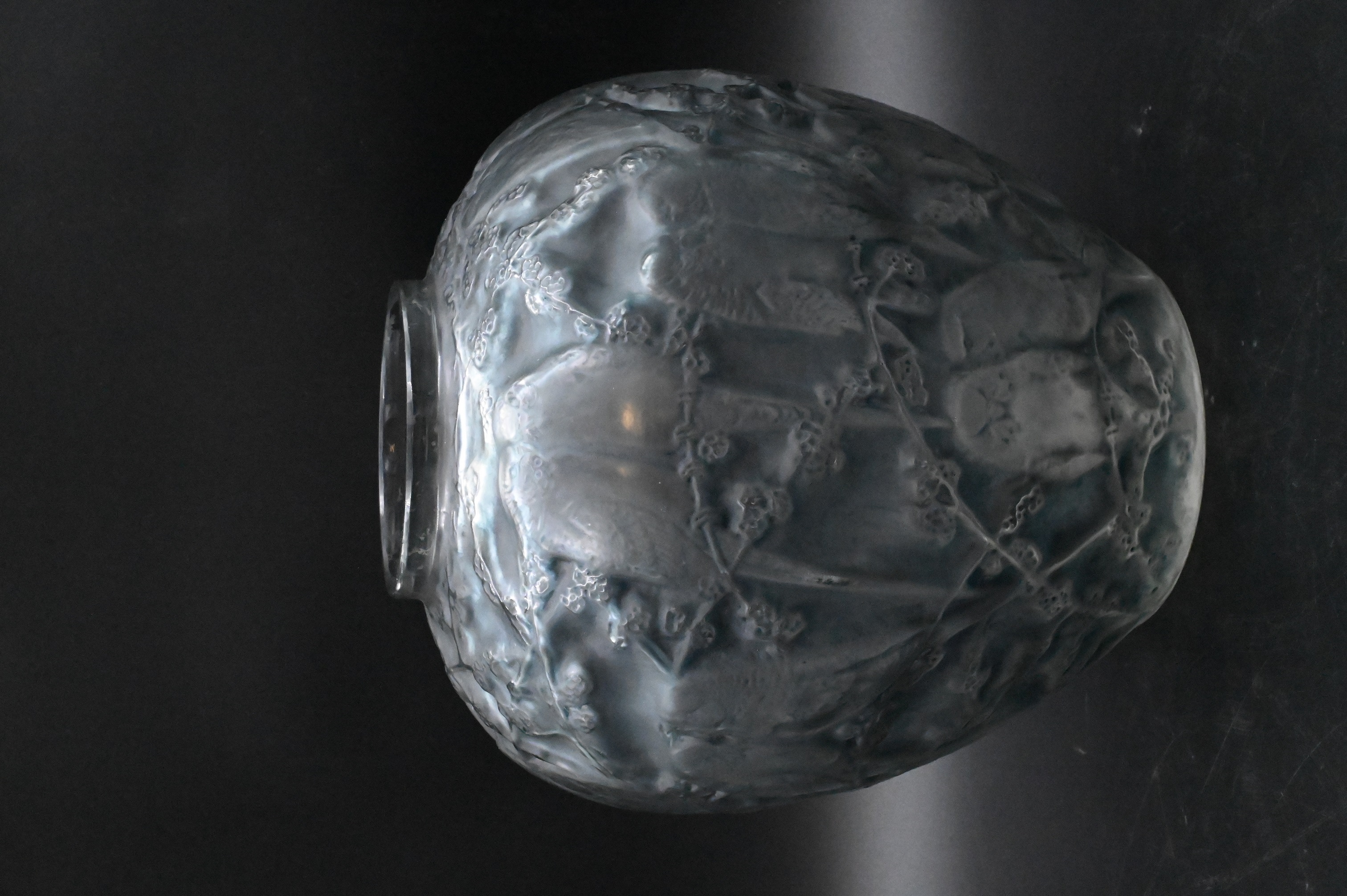 Lot 451: Rene Lalique “Perruches” Glass Vase Stained Blue