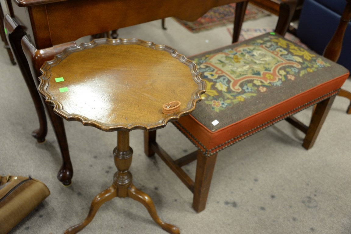 Three piece lot including two small stands and a bench.