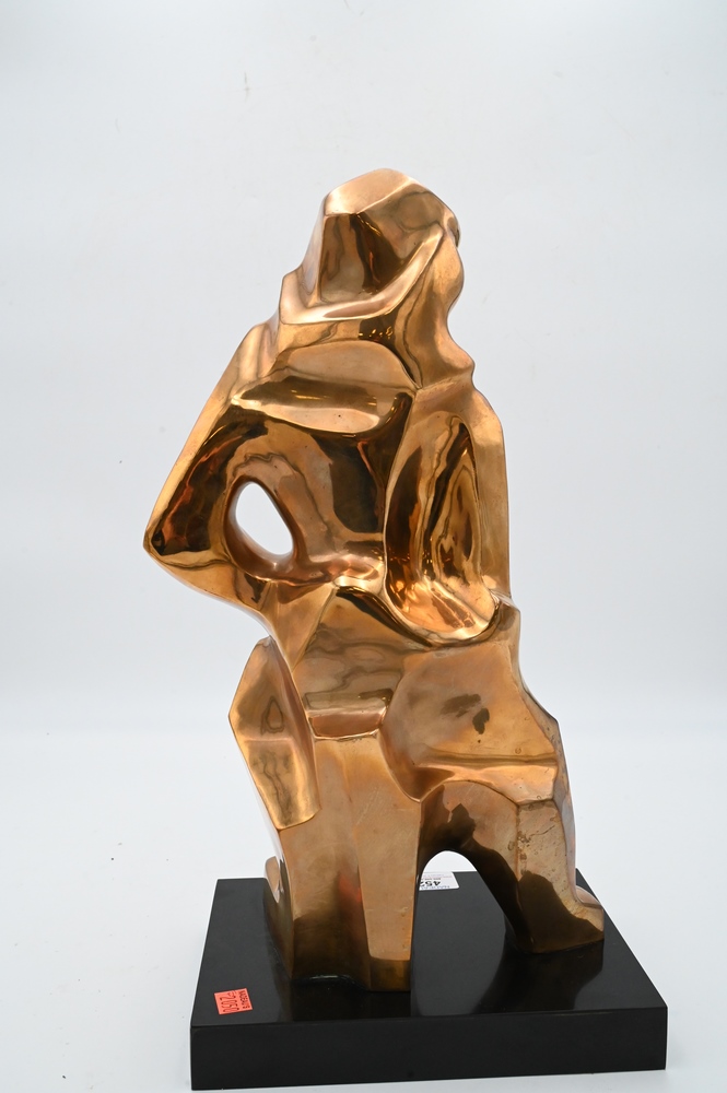 Lot 452: Caroline Newhouse (American, 1910-2003), bronze sculpture of woman signed and dated at bottom C. Newhouse 72, on swivel stand height of sculpture 16.75 inches, height with stand 19.75 inches.